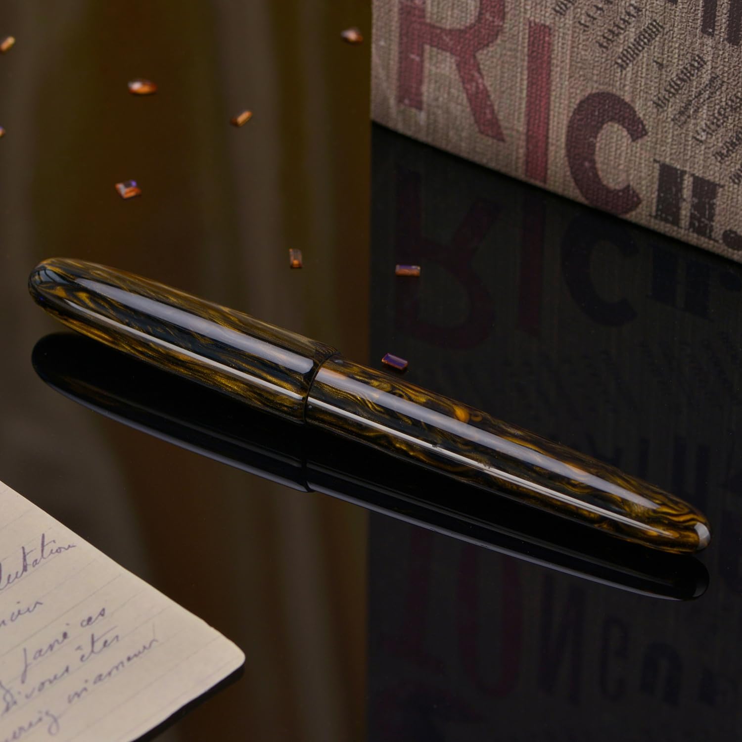 Marrone senza tempo con accenti dorati: questa finitura oro marrone emana fascino vintage con un corpo in resina fumé sottilmente evidenziato da toni dorati marmorizzati, perfetto per gli amanti dello stile classico. Scegli il tuo pennino, definisci il tuo stile: che tu sia un meticoloso prenditore di appunti o uno sketcher audace, le opzioni del pennino #8 EF, F, M e Stub consentono di personalizzare il flusso e il peso della linea. Design distintivo e durevole: ogni penna è realizzata a mano utilizzando resina di alta qualità e riempimento di pigmenti organici, creando texture casuali e bellezza di lunga durata. Progettata per comfort e controllo: la penna stilografica Asvine C80 è ponderata e perfettamente bilanciata per lunghe sessioni di scrittura. Potrai godere di ogni colpo senza affaticamento della mano. Regalo pronto con accessori inclusi: viene fornito con un convertitore di inchiostro preinstallato ed elegante confezione regalo, che lo rende un regalo ideale per chiunque. Le cartucce d'inchiostro non sono incluse per la sicurezza del trasporto. È possibile acquistare le cartucce di inchiostro da 3,4 mm o l'inchiostro in bottiglia cercando "Hongdian Ink" su Amazon.
