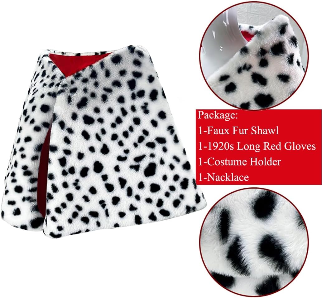 Descrizione del prodotto "Pacchetto: 1 scialle da donna a pois bianchi e neri finti 1 guanti rossi lunghi anni '20 1 supporto per abiti 1 collana di perle lunga" Avviso di sicurezza Piccole parti, tenere fuori dalla portata dei bambini. E non avvicinarti alla fiamma viva.