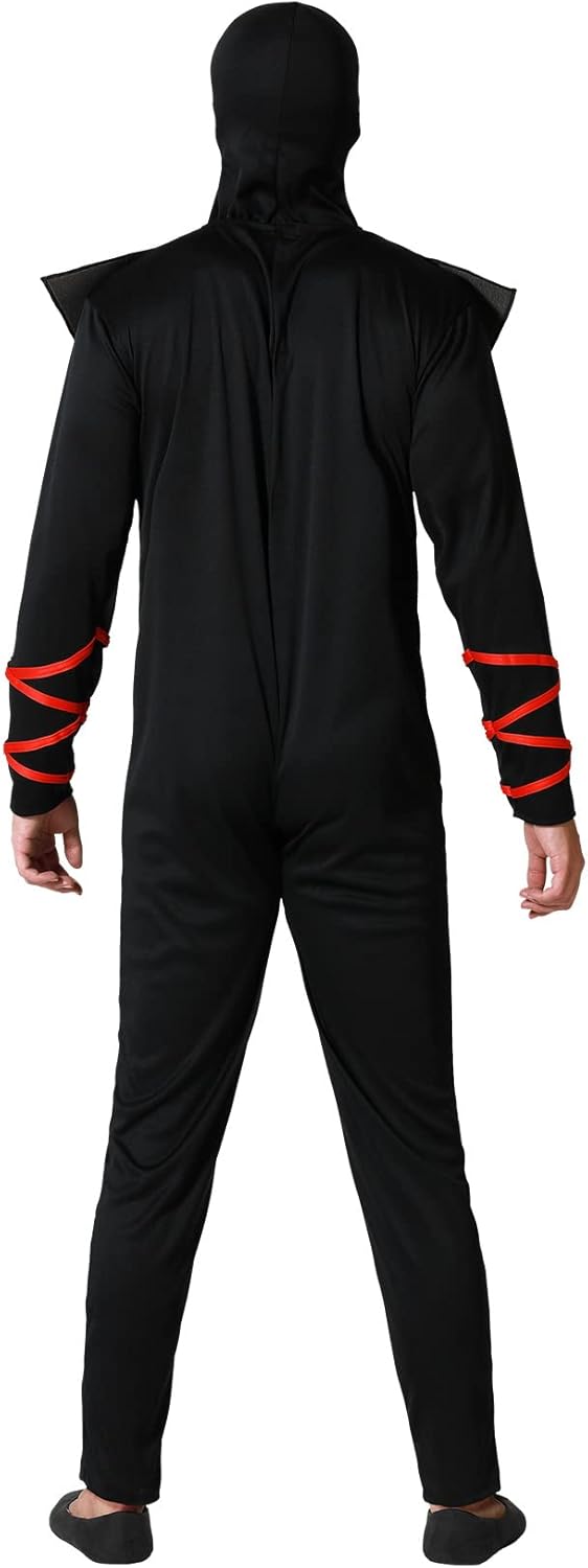 Costume da uomo Ninja Dragon Per un viaggio in Giappone ai tempi dei Mercenari o delle Spie, diventa un Ninja con questo costume completo che include la tuta, il grande su colletto e il passamontagna. Questo vestito sarà perfetto per una festa travestita a tema Paesi del Mondo, Cinese o Arti Marziali. Contenuto della confezione: 1 COMBINAZIONE: in tessuto nero, decorato ai polsi e sulla parte inferiore delle gambe con allacciatura a nastro rosso 1 grande SUR COLL: tessuto nero su schiuma, da mettere sopra la tuta, grande disegno di un drago rosso, il fondo si graffia sulla tuta. 1 passamontagna in tessuto nero, con una grande apertura per occhi e naso