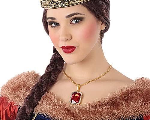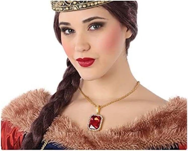 Collana a catena dorata con gioielli fantasia colore rosso e bordo di strass, perfetta per un travestimento da regina.