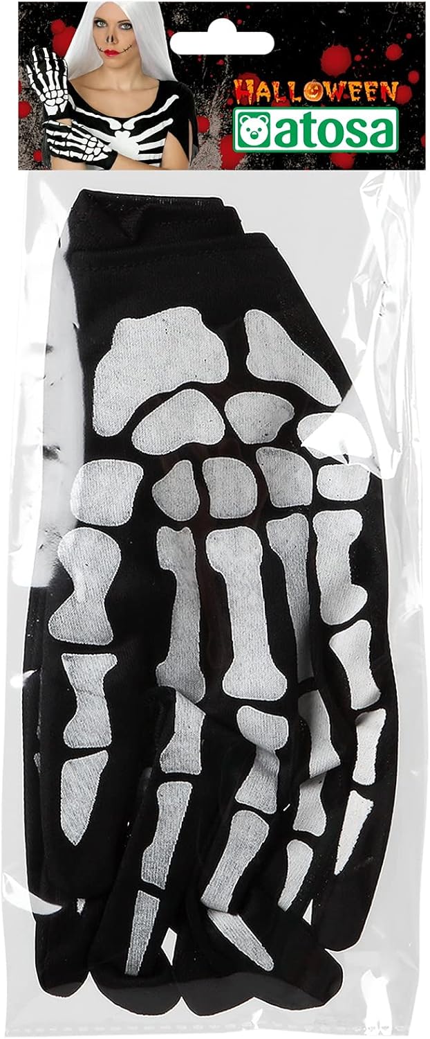 Guanti da scheletro neri a forma di ossa Perfetto per costume di Halloween da scheletro o morto vivente Taglia unica per adulti Sono 100% poliestere Tutti gli accessori sono conformi alla normativa europea vigente