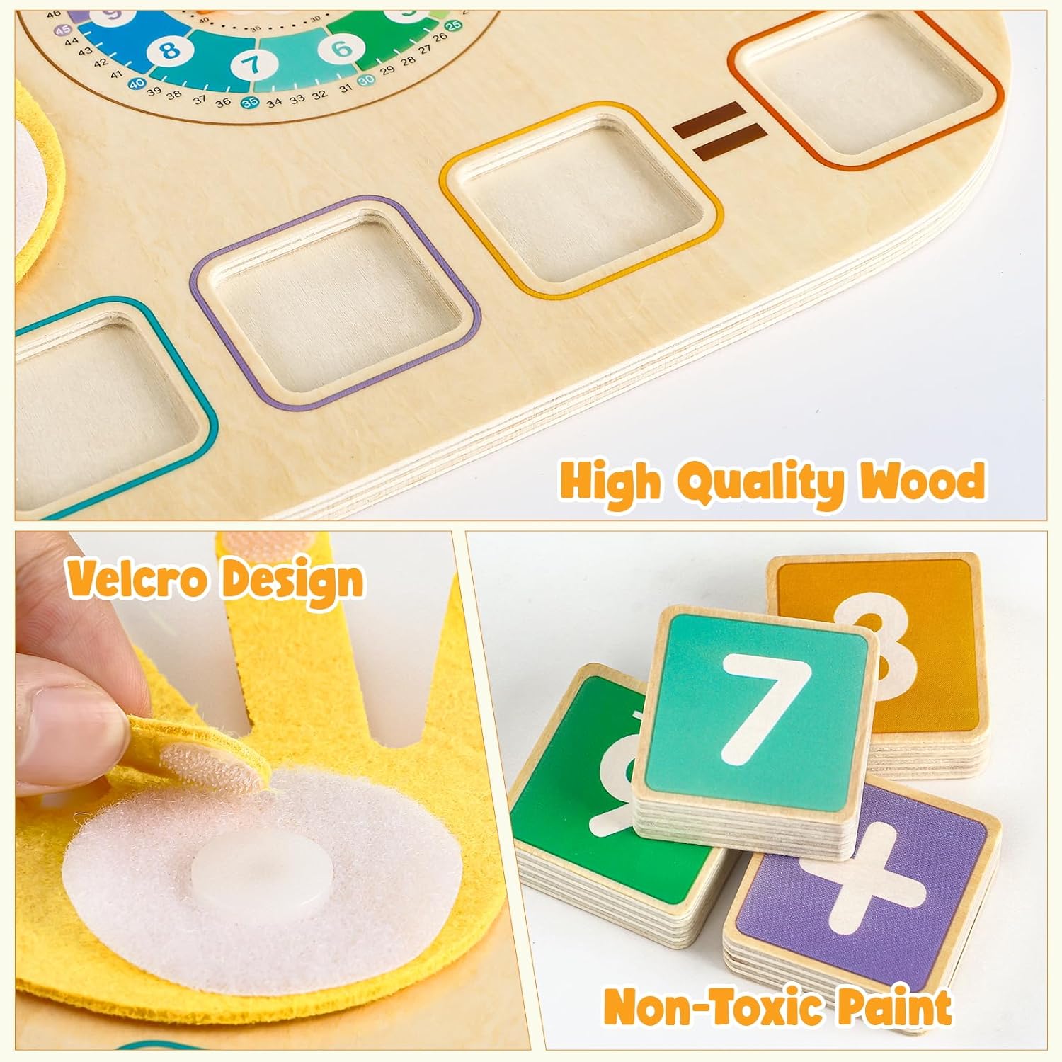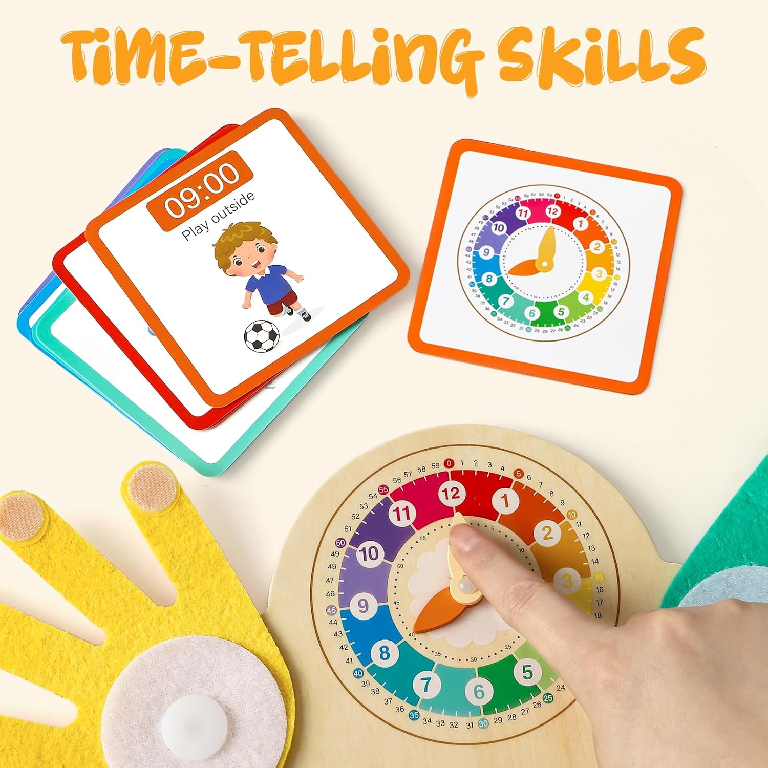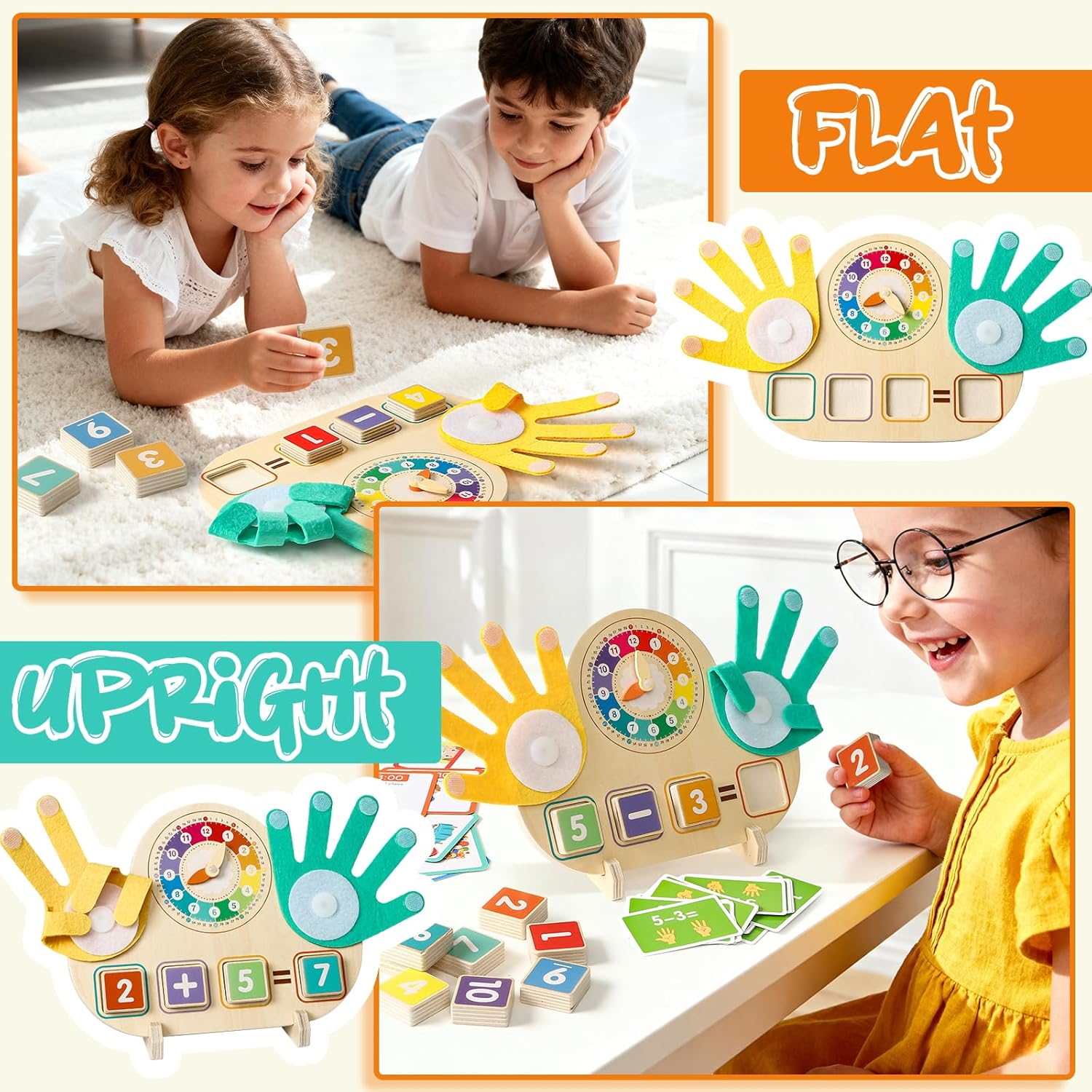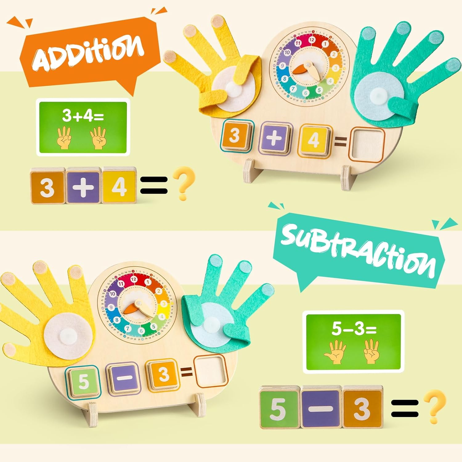 Set di Gioco in Legno per l'apprendimento dei Bambini - Questo giocattolo didattico Montessori include strisce di velcro per contare con le dita, un orologio, 10 blocchi numerici, carte colorate per contare i numeri e carte relative al tempo che mostrano le attività quotidiane insieme ai quadranti dell'orologio corrispondenti. Questo versatile set di giocattoli in legno è adatto dai 3 anni in su. Esplora i primi concetti matematici e temporali e sviluppa il pensiero logico. Design Unico dell'orologio - Le lancette didattiche integrate si muovono, permettendo ai bambini di sviluppare il senso del tempo in modo giocoso. Imparano e comprendono come le attività quotidiane siano collegate al tempo. Le lancette possono anche essere adattate alle carte a tema, consentendo ai bambini di immaginare e discutere diverse attività in momenti diversi. Preparati per la scuola materna e la scuola primaria. Aritmetica Matematica Coinvolgente - Puntatore in feltro con chiusura in velcro è facilmente regolabile da 1 a 10. I bambini possono sentire ed esplorare i numeri, imparando a contare: ideale per l'apprendimento visivo e tattile. I blocchi di legno colorati sono perfetti per riconoscere e ordinare i numeri, oltre che per esercitarsi con addizioni e sottrazioni di base. I bambini possono usare i blocchi numerici per calcolare e determinare il risultato. Giocoso & Educativo - Questo giocattolo in legno, realizzato in legno liscio e robusto, è abbastanza robusto da resistere a un uso intenso. Le capacità motorie fini e la coordinazione occhio-mano vengono sviluppate afferrando i mattoncini, muovendo le lancette dell'orologio e regolando i cartellini, aiutando a strutturare le attività quotidiane e promuovendo una migliore comprensione del tempo e delle routine: un passo importante verso l'indipendenza. Giocattolo Perfetto per Bambini dai 3 anni - Cerchi un regalo divertente ed educativo? Questo giocattolo Montessori in legno è perfetto per compleanni, Natale, Pasqua, festività o come sorpresa per bambini dai 3 ai 9 anni. Sviluppa le capacità numeriche e il pensiero logico dei bambini. È un divertente giocattolo educativo per le attività della scuola materna o prescolare.