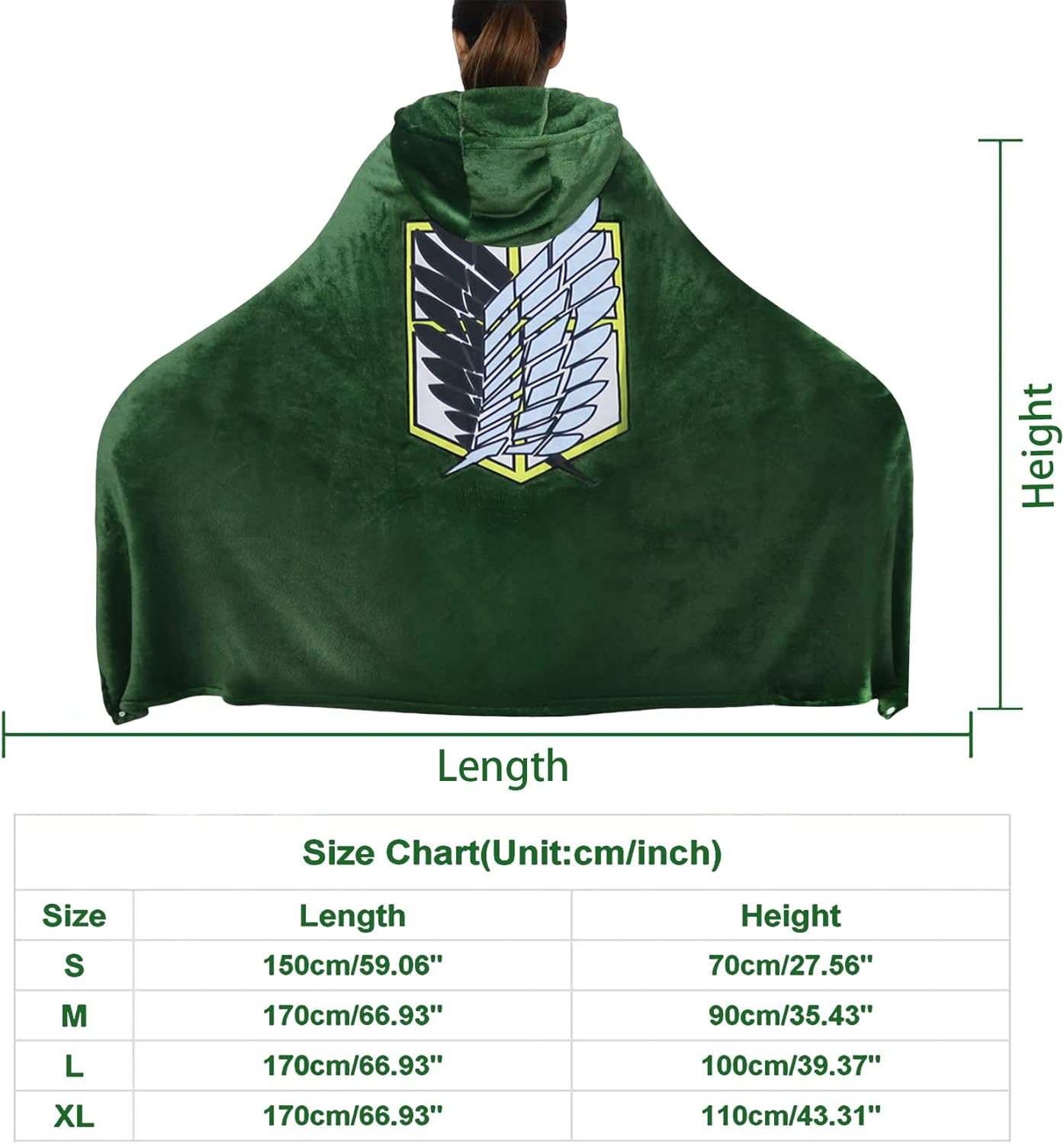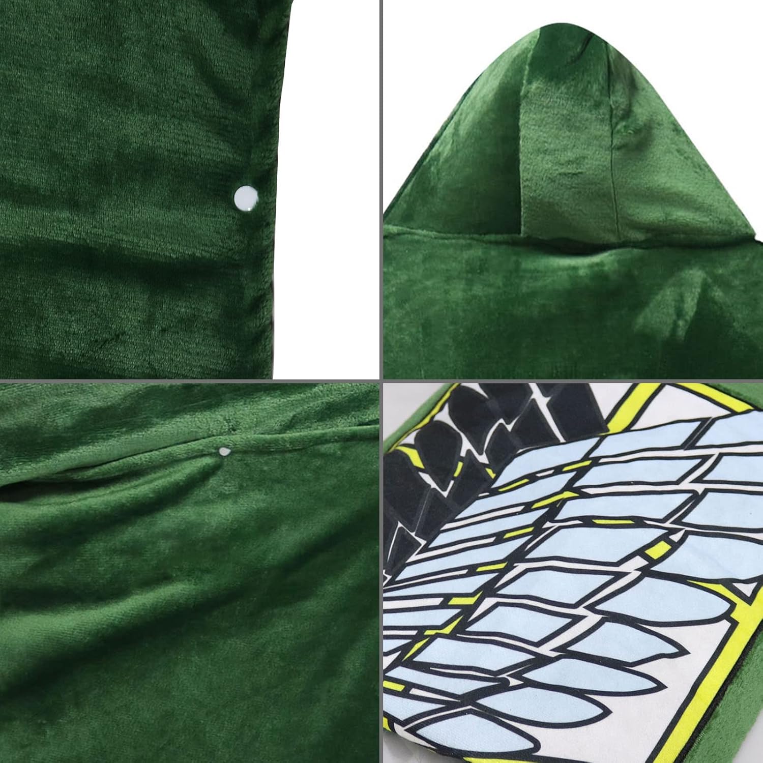 Informazioni sul mantello Attack on Titan : Il costume da cosplay di Aot può ripristinare l'appearance, aiuta l'attore a creare un'immagine realistica e attaccarlo al mantello in titanio rende l'attore più immersed nella bobina. - Marca: Claofoc - Nome reparto: adulto - Colore: verde. - Materiale: flanella. - Occasione: festival, feste, vita quotidiana, mascherata, comic con, costume, fotografia. La confezione include: 1 mantello Attack on Titanio ♥ Servizio: se avete domande sul mantello in titanio, vi preghiamo di contattarci, saremo lieti di aiutarvi! Buono shopping! Grazie!