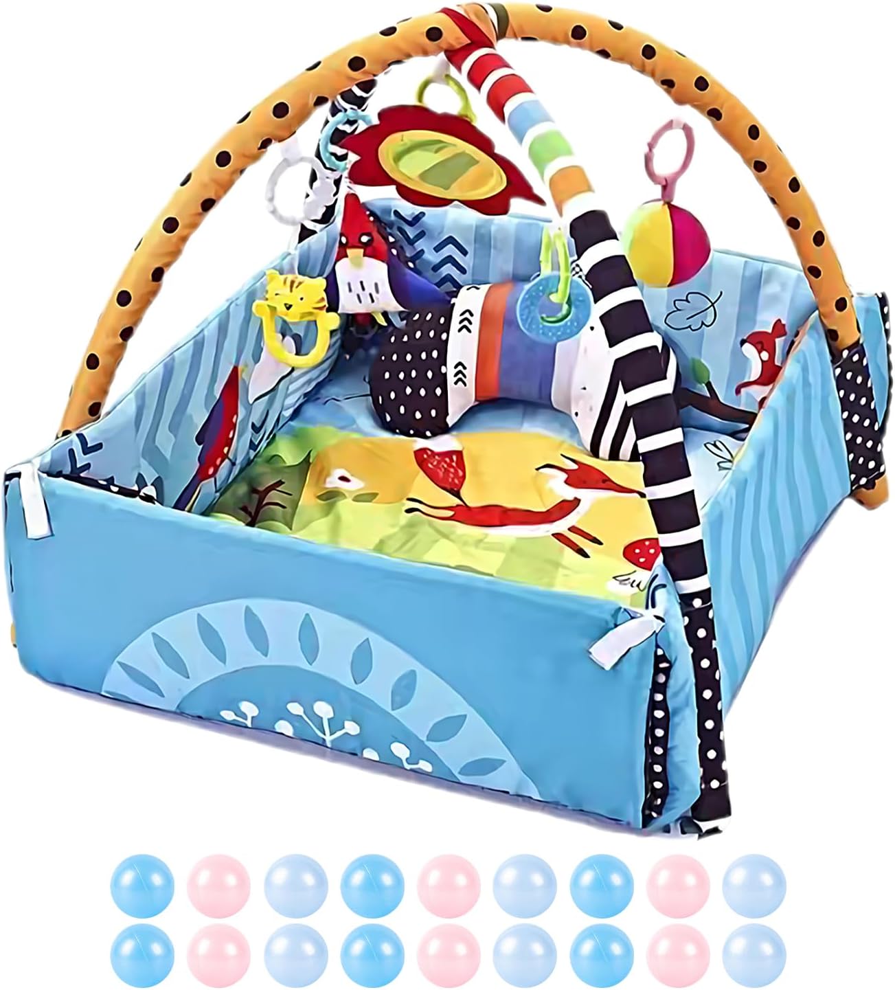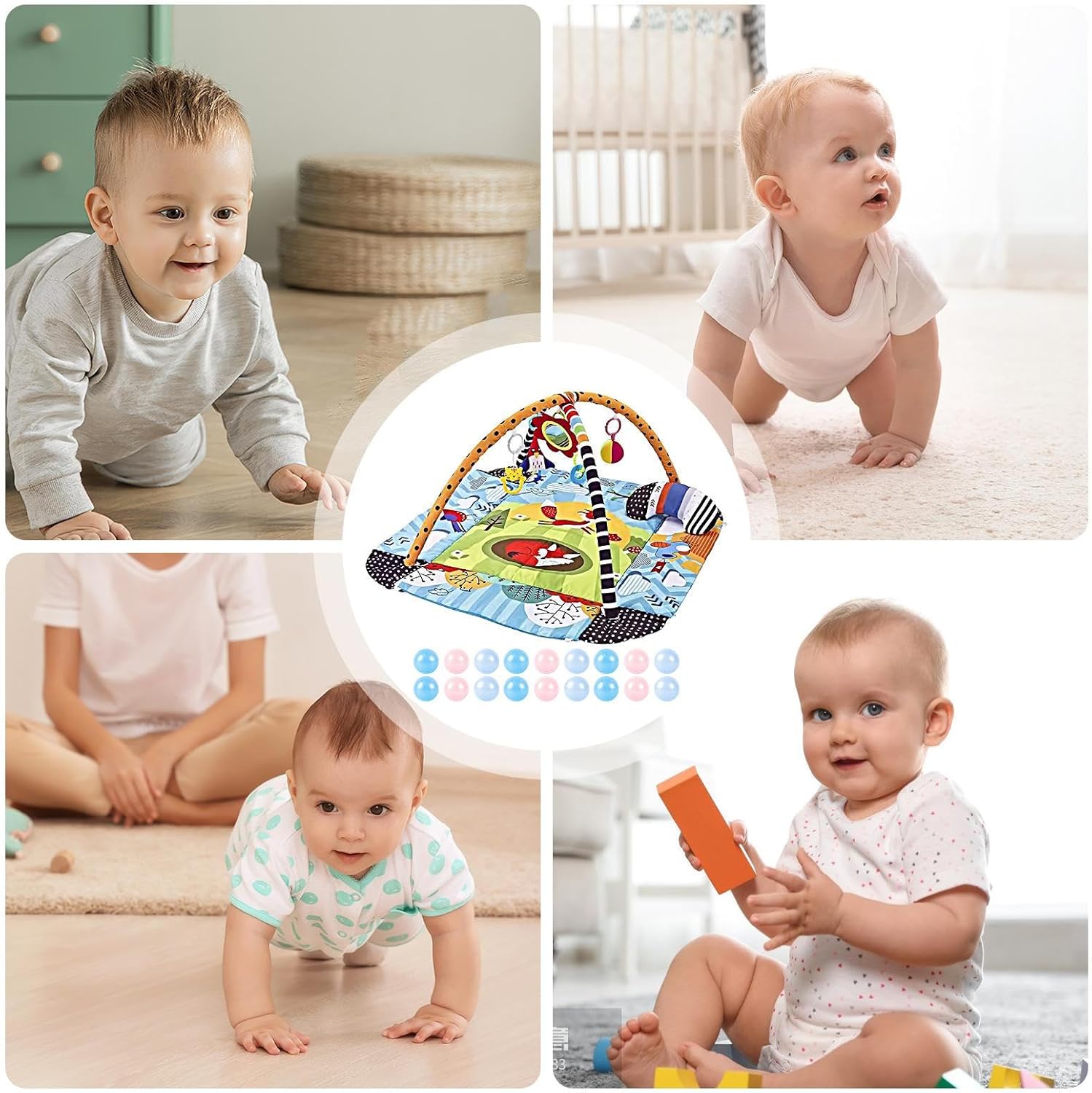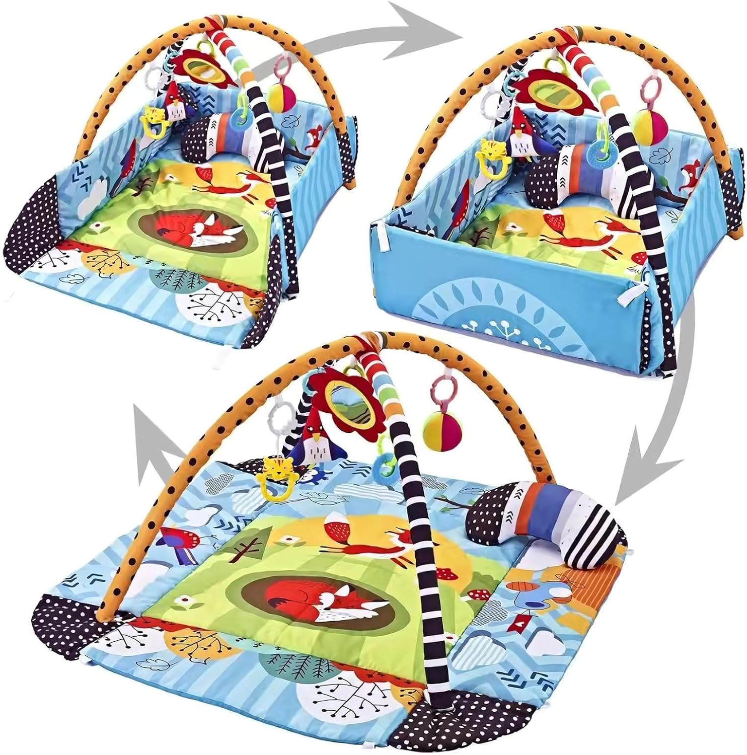 Molteplici scopi: incoraggiare la curiosità dei vostri bambini con questo tappetino da gioco 7 in 1. Confezionato con 5 giocattoli staccabili, 1 cuscino per pancia e un grande tappeto morbido, incoraggia l'esplorazione interattiva in tutte le direzioni mentre si siede o si sdraia Sviluppo precoce completo: questo tappeto da gioco per bambini piccoli offre vantaggi di sviluppo senza rivali, poiché stimola molteplici sensi e robuste capacità motorie. Il morbido tappeto offre uno spazio confortevole per riposare, toccare e imparare, mentre i giocattoli rimovibili carini e colorati creano suono quando afferrati, scuotono o premono. Giocattoli deliziosi: questo tappeto da gioco per bambini piccoli funge da centro di esercizi multifunzionale che funge anche da tappetino per pancia, pozzo a palla, e recinzione. È perfetto per migliorare lo sviluppo del bambino e offre ampio spazio per l'attività della pancia e il tempo di gioco interattivo Sicuro da giocare: il tappetino da gioco per bambini ha un equilibrio di planarità e morbidezza, fornendo uno strato di ammortizzazione di sostegno che rende il bambino più stabile quando si sede, stare in piedi e gattonare. Le sue superfici morbide, morbide e lavabili sono morbide per la pelle piccola, rendendo la pulizia una Bellissimo presente: esprimi il tuo amore e cura con questo regalo creativo, con un design unico e un aspetto affascinante, ideale per amici e familiari.