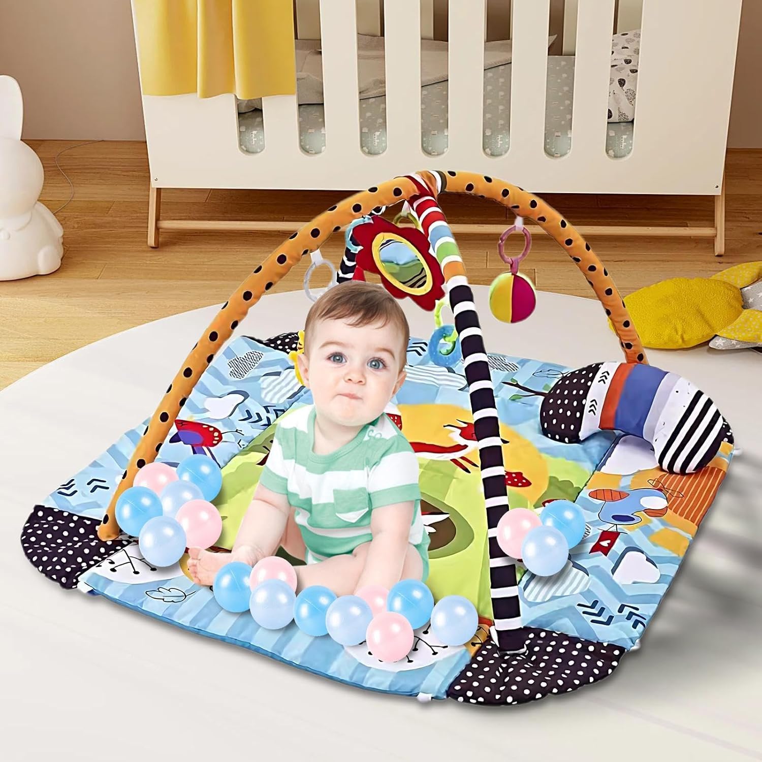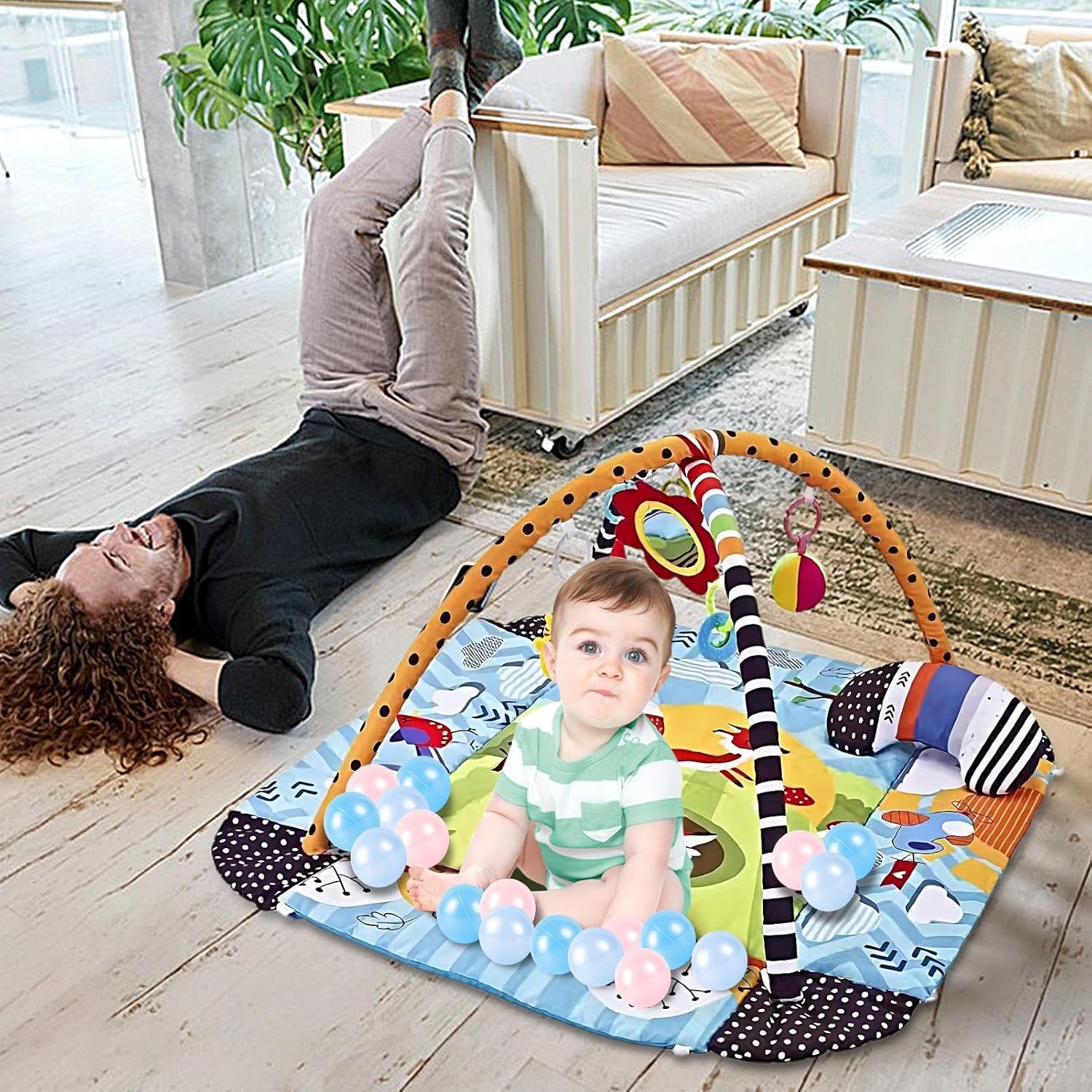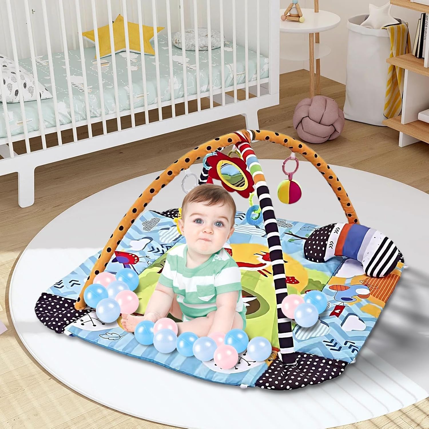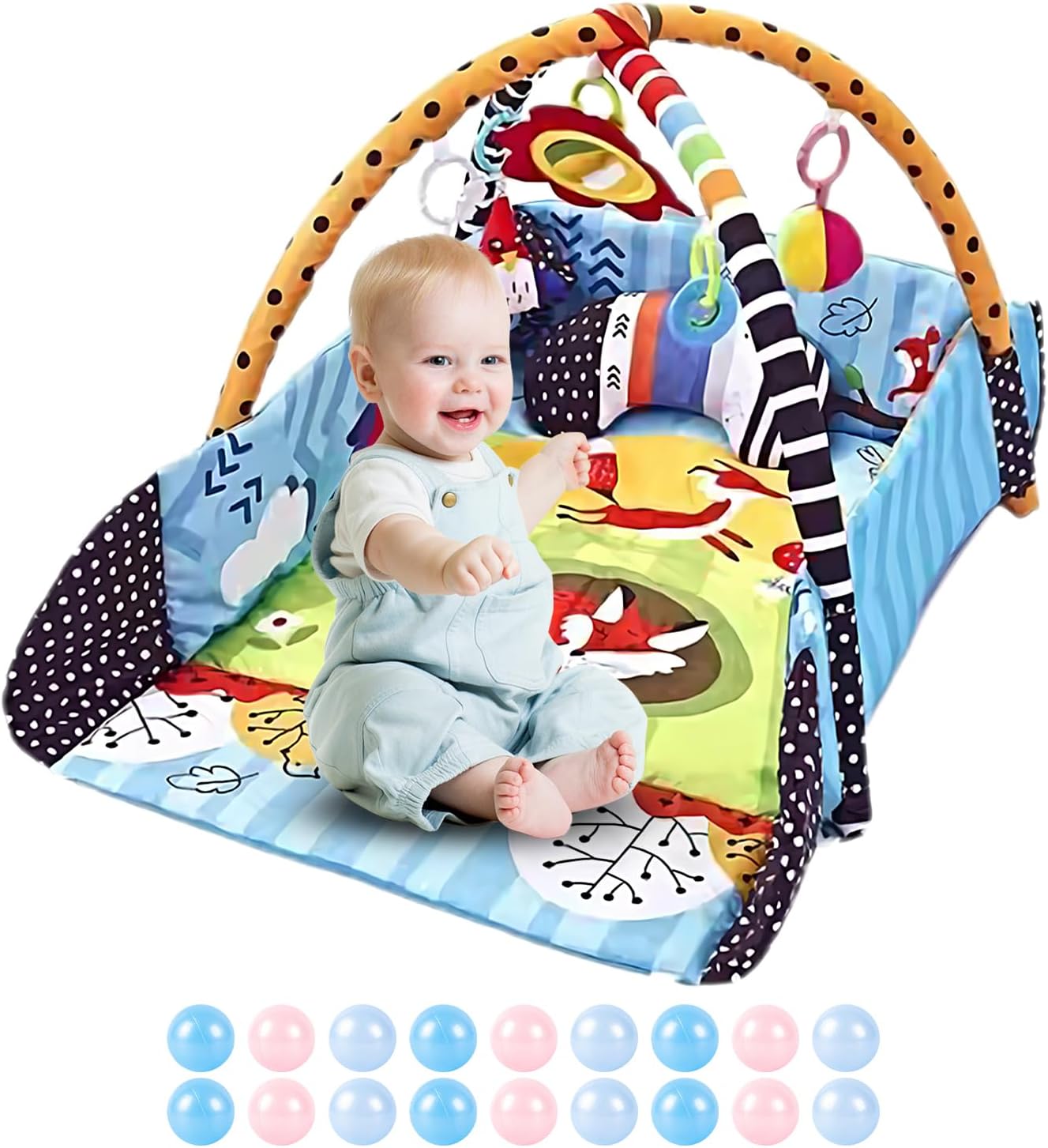 Molteplici scopi: incoraggiare la curiosità dei vostri bambini con questo tappetino da gioco 7 in 1. Confezionato con 5 giocattoli staccabili, 1 cuscino per pancia e un grande tappeto morbido, incoraggia l'esplorazione interattiva in tutte le direzioni mentre si siede o si sdraia Sviluppo precoce completo: questo tappeto da gioco per bambini piccoli offre vantaggi di sviluppo senza rivali, poiché stimola molteplici sensi e robuste capacità motorie. Il morbido tappeto offre uno spazio confortevole per riposare, toccare e imparare, mentre i giocattoli rimovibili carini e colorati creano suono quando afferrati, scuotono o premono. Giocattoli deliziosi: questo tappeto da gioco per bambini piccoli funge da centro di esercizi multifunzionale che funge anche da tappetino per pancia, pozzo a palla, e recinzione. È perfetto per migliorare lo sviluppo del bambino e offre ampio spazio per l'attività della pancia e il tempo di gioco interattivo Sicuro da giocare: il tappetino da gioco per bambini ha un equilibrio di planarità e morbidezza, fornendo uno strato di ammortizzazione di sostegno che rende il bambino più stabile quando si sede, stare in piedi e gattonare. Le sue superfici morbide, morbide e lavabili sono morbide per la pelle piccola, rendendo la pulizia una Bellissimo presente: esprimi il tuo amore e cura con questo regalo creativo, con un design unico e un aspetto affascinante, ideale per amici e familiari.