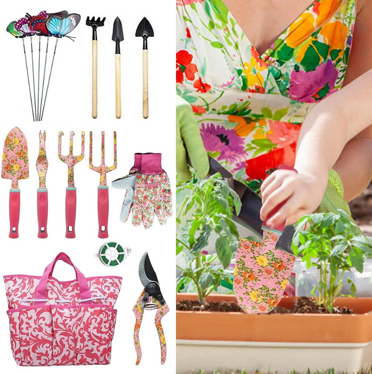 Migliore esperienza di giardinaggio per i bambini: il bambino sperimenterà un giardinaggio molto più piacevole con questo set da giardino per bambini. Il notevole design ergonomico consente una presa confortevole che riduce l'affaticamento e aumenta il piacere del giardinaggio. Pertanto, qualsiasi attività all'aperto diventa un'esperienza arricchente che promuove le capacità motorie e l'amore per l'ambiente. Migliora l'esperienza del giardino: i tuoi bambini adoreranno i colori eleganti e i disegni floreali di questo set di attrezzi da giardino per bambini. Questo rende le loro avventure all"aperto più piacevoli e visivamente attraenti. La presentazione accattivante del set entusiasma i giovani giardinieri e favorisce la gioia del giardinaggio. Con questo set i bambini possono realizzare i propri spazi da giardino e godersi appieno la natura. I disegni floreali in colori eleganti creano un'atmosfera incantevole Ampia gamma di applicazioni: con questo set da giardino per bambini si risveglia la passione per il giardinaggio. È ideale per i giardinieri appassionati e le loro famiglie ed è un ottimo regalo per le amiche. Goditi il divertimento di piantare durante le vacanze e oltre. Il set da giardino per bambini è versatile e entusiasma i piccoli giardinieri in ogni occasione. Migliore esperienza di giardino: consente ai tuoi bambini di partecipare al piacere di piantare, potare e rifinire con questo ampio set da giardino per bambini. Il set include pale, forbici e molto altro ancora, per rendere il giardinaggio un punto forte per tutta la famiglia e creare ricordi duraturi. Materiale durevole e sicuro: realizzato in lega di alluminio ad alta resistenza, questo set di attrezzi da giardino per bambini è resistente alla ruggine, garantendo un uso sicuro e resistente all'usura. È stabile per tutti i lavori di giardinaggio e offre un piacere duraturo durante il giardinaggio. La costruzione durevole previene la formazione di ruggine e garantisce durata anche con un uso regolare all'aperto.