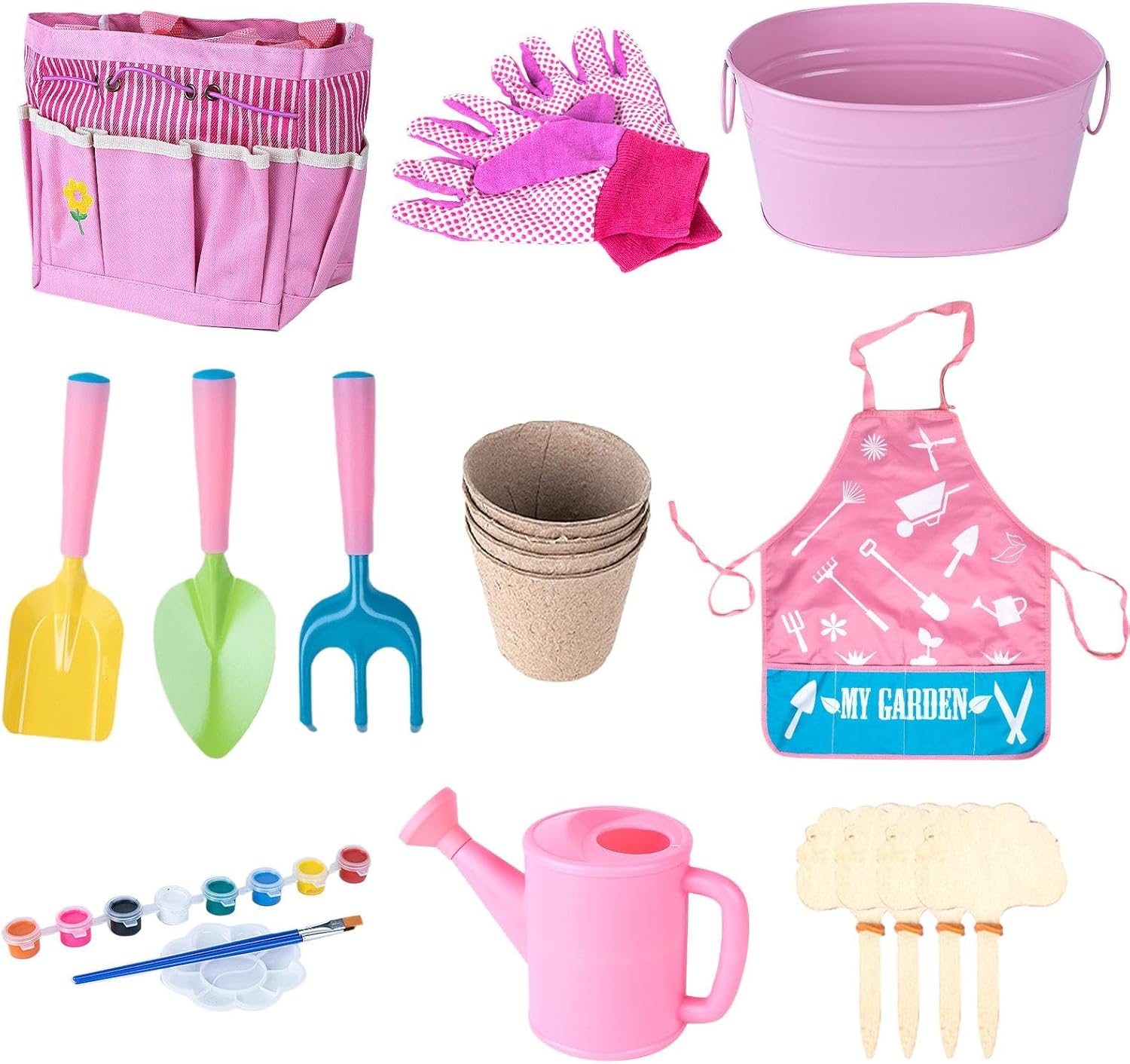 【Sviluppa abilità di giardinaggio】 Dotato di forniture essenziali, questo set migliora le capacità delle persone e promuove la responsabilità e la cura tra gli amanti. Maniglia: lascia che scoprano le loro abilità di giardinaggio con strumenti leggeri appositamente progettati che si adattano perfettamente alle loro piccole mani per facilitare le manovre e creare sicurezza. MULTIUSO: migliora le esperienze all'aperto di tuo figlio con versatili attrezzi da giardino per. Dalla semina allo scavo fino all'individuazione delle creature, questi strumenti sono perfetti per l'uso non solo in giardino ma anche in altre aree esterne. Esplora le opzioni in spiaggia, al parco e oltre. Materiale durevole: realizzati con cura con materiali di alta qualità, accompagneranno i tuoi giovani giardinieri in innumerevoli avventure. La struttura robusta e durevole può resistere e ti consente di esplorare la vita all'aria aperta con sicurezza. Regalo premuroso: ispira il tuo a imparare e crescere con gli strumenti da giardinaggio, offrendo ore di esperienza divertente ed educativa. Meraviglioso per compleanni, feste o altre occasioni speciali