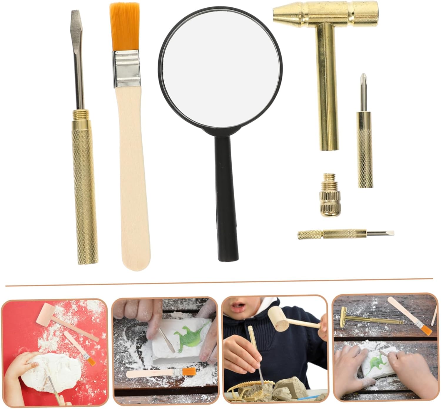 Kit scavo archeologico: kit comprende martello, scalpello, d'ingrandimento e pennello e può aiutarti a scavare blocchi dinosauri e blocchi gemme più facilmente, kit strumenti scavo Strumento archeologico: facile da usare grazie al peso leggero e alle dimensioni ridotte, puoi usare strumento per scavare gemme per i in più , giocattoli per scavi archeologici per Giocattoli da scavo per : adatti per sviluppare la coordinazione occhio-mano, pensiero e la creatività, kit scavo per Giocattoli per scavi: pratico set strumenti per scavare gemme per può sviluppare capacità cognitive e pratiche del , tenendolo lontano dallo schermo elettronico, kit geologia per Strumenti archeologia per : questi giocattoli per scavare pietre preziose possono far conoscere ai tuoi la geologia e altri argomenti, permettendo loro esplorare pietre preziose, kit strumenti scavo per
