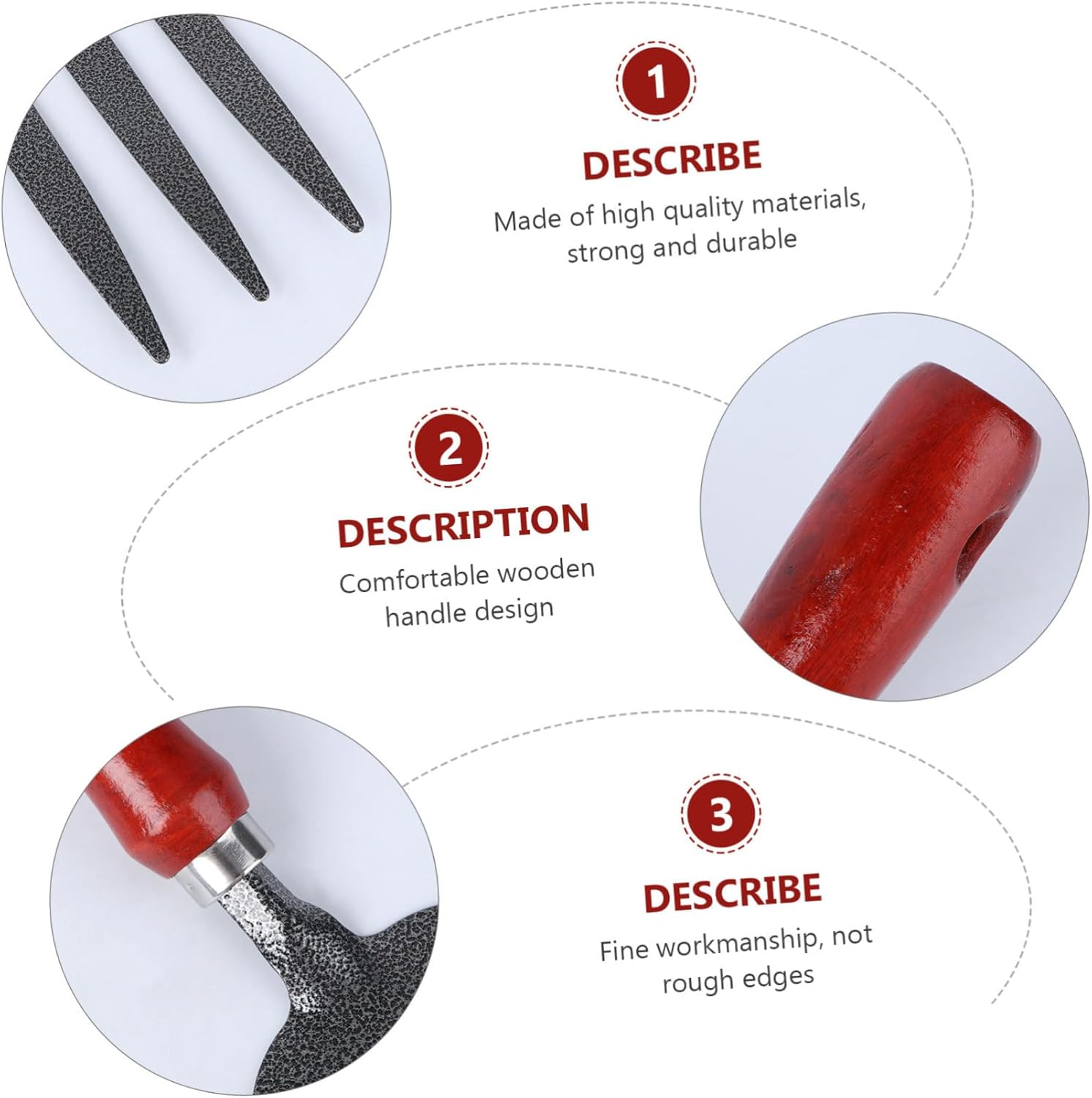 Forcone da giardinaggio: strumento perfetto per coltivare terreni e per lavori di aerazione rapida, rastrello a mano Forca da piantagione: il comodo manico in legno ti consente di piantare e di avere una presa salda per l'affaticamento della mano e del polso, rastrello a mano Strumento da giardinaggio: realizzato in ferro e legno di alta qualità, robusto e durevole, rastrello a mano Rastrello a mano: rende un gioco da ragazzi lavorare in spazi ristretti, forcone da giardinaggio