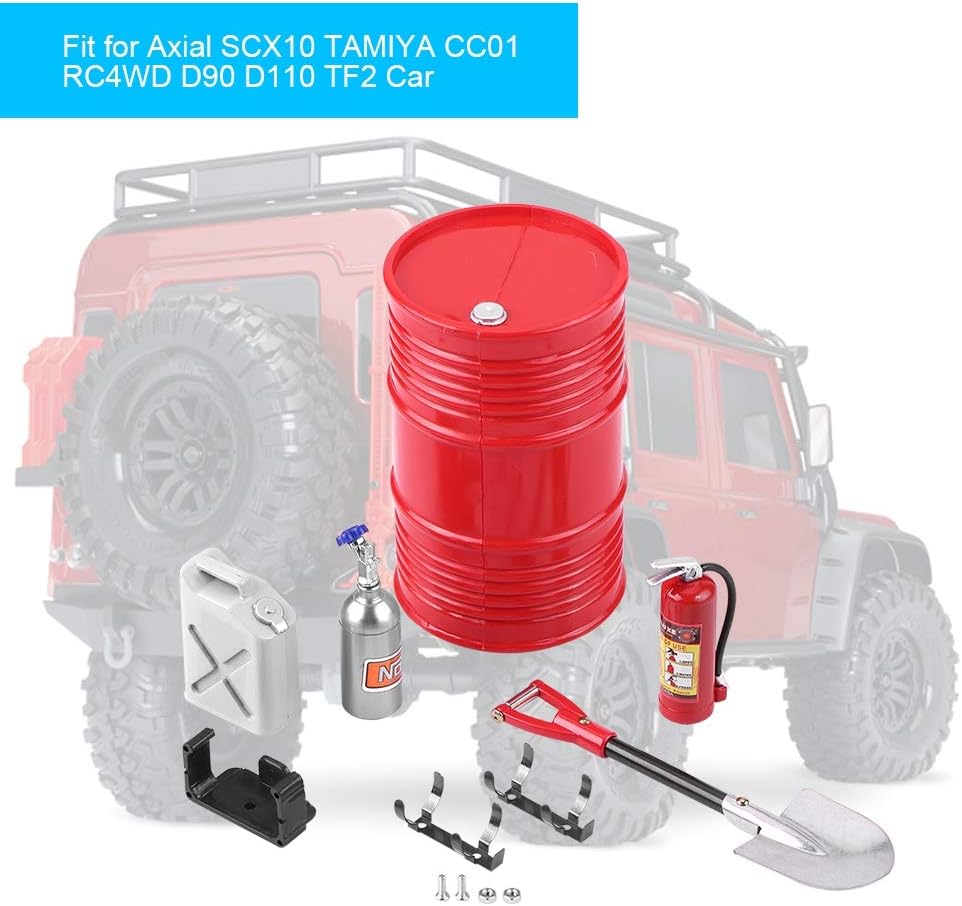 Regalo perfetto per appassionati di modellini di auto e amanti. Compresi una pala, un set di serbatoio dell'olio, un serbatoio del carburante e un estintore, che soddisfano sicuramente le tue esigenze. Compresi una pala, un set di serbatoio dell'olio, un serbatoio del carburante e un estintore, che soddisfano sicuramente le tue esigenze. Il design della simulazione aumenta l'autenticità della tua auto RC, rendendo la tua auto RC più bella. Realizzato in ABS di alta qualità, resistente per un uso prolungato.