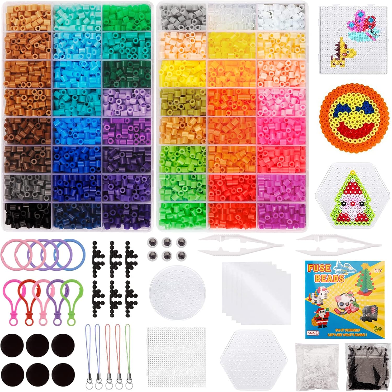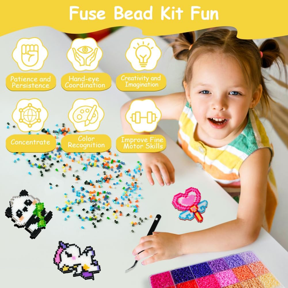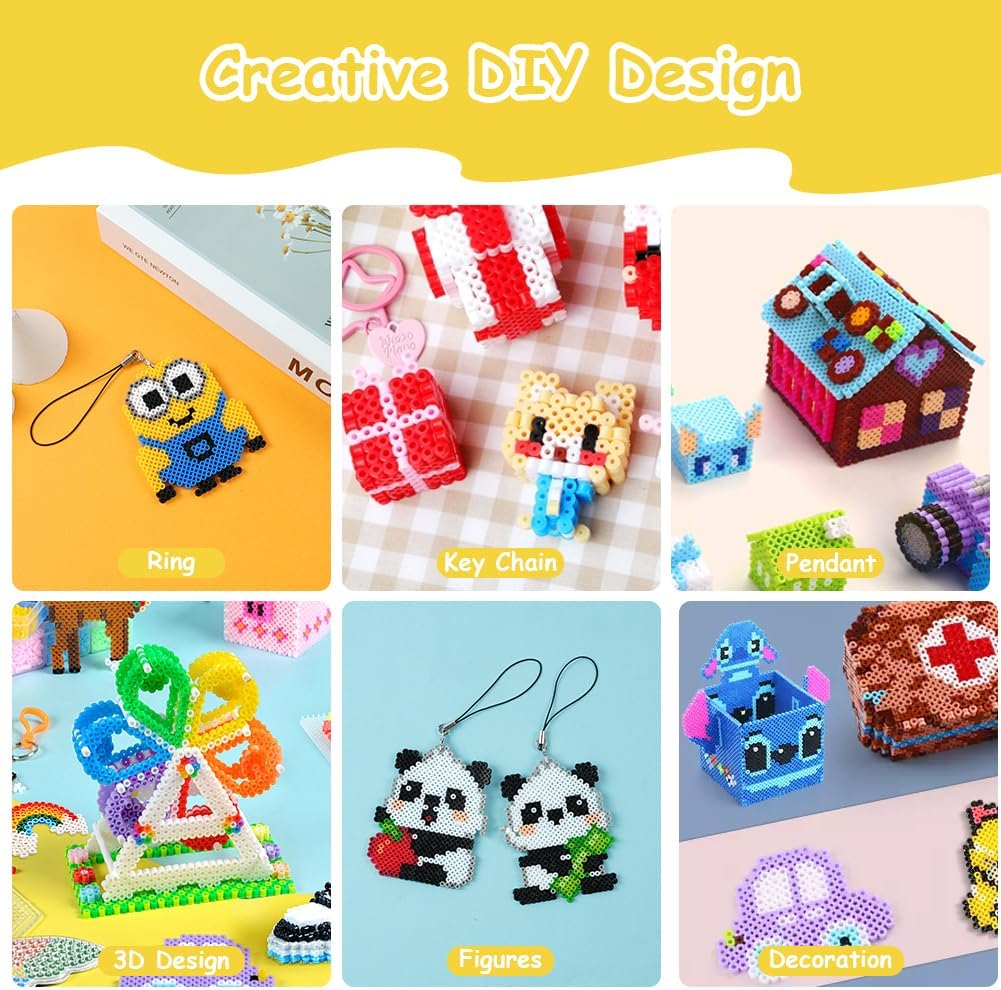 📦【KIT PERLINE FUSIBILI】Riceverai 26.000 perline fusibili da 2,6 mm in 48 colori (di cui 1.000 nere e 1.000 bianche), incluse 14 carte modello, 2 pannelli forati quadrati (14 * 14 cm + 7,3 * 7,3 cm) 1 pinzetta di metallo, 3 ferri da stiro fogli e 6 cordini (❗Il ferro da stiro non è incluso nella confezione). Tu e i tuoi bambini potete realizzare opere d'arte più creative utilizzando diversi accessori divertenti. ✅ 【SICURO E AMICO】 Le perline da stirare sono realizzate in materiale PE ecologico di alta qualità. Non contiene sostanze nocive, atossiche e inodore, facili da usare e non facili da rompere, sicure e adatte ai bambini, innocue per la salute. (❤Nota: i bambini necessitano dell'aiuto e della supervisione di un adulto durante la fase di stiratura) ✌【FACILE DA GIOCARE】L'operazione è molto semplice, basta posizionare i chicchi del colore corrispondente sulla tavola secondo lo schema, quindi posizionare la carta da stiro sulle perline e stirare delicatamente con un ferro da stiro finché le perline non si sciolgono insieme. Dopo la stiratura è possibile utilizzare un oggetto duro per premere sul disegno per qualche minuto per evitare che i bordi si deformino. Puoi anche usare la tua creatività per creare diverse opere d'arte. 🎨【COLTIVAZIONE DELL'IMMAGINAZIONE E DELLA CREATIVITÀ】Gli interessanti bambini fai da te perline artigianali per bambini possono attirare efficacemente l'attenzione dei bambini, consentendo loro di stare lontani dai prodotti elettronici e divertirsi con il fai-da-te con i genitori. Aiuta anche a migliorare le capacità motorie del tuo bambino e la coordinazione occhio-mano, e mantiene anche la tua ragazza o ragazzo occupato e tranquillo, così puoi fare quello che vuoi. 🎁【REGALO IDEALE】 Questo set gioco creativo natalizio e compleanno per bambini può essere utilizzato per realizzare anelli, portachiavi, pendenti, disegni 3D, figurine, accessori e decorazioni con cui possono giocare più persone, rendendolo un perfetto giocattolo per attività di festa che può essere utilizzato come premi a casa, a scuola e in campeggio. Anche un regalo ideale per ragazzi e ragazze interessati ad arti e mestieri o come regalo di Natale, compleanno o festa.
