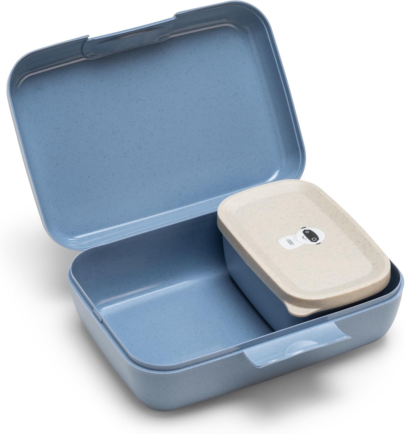 Materiale: plastica | privo di melamina, BPA e bambù | riciclabile Portapranzo per bambini nel design ADUI | con box più piccolo integrato Istruzioni per la cura: lavabile in lavastoviglie | Colore blu Codice prodotto Audi: 3202301200 Dimensioni: 190 x 135 x 65 mm