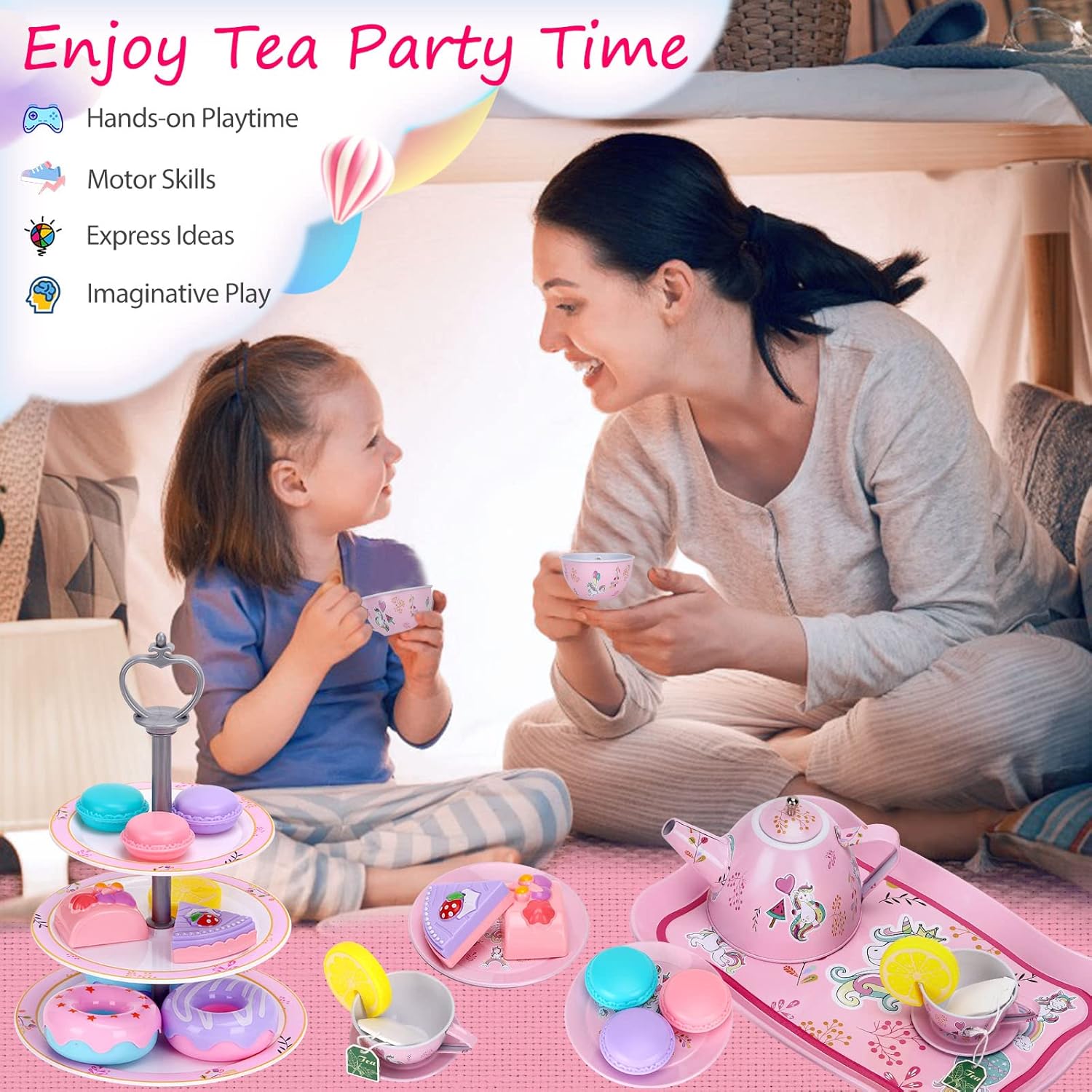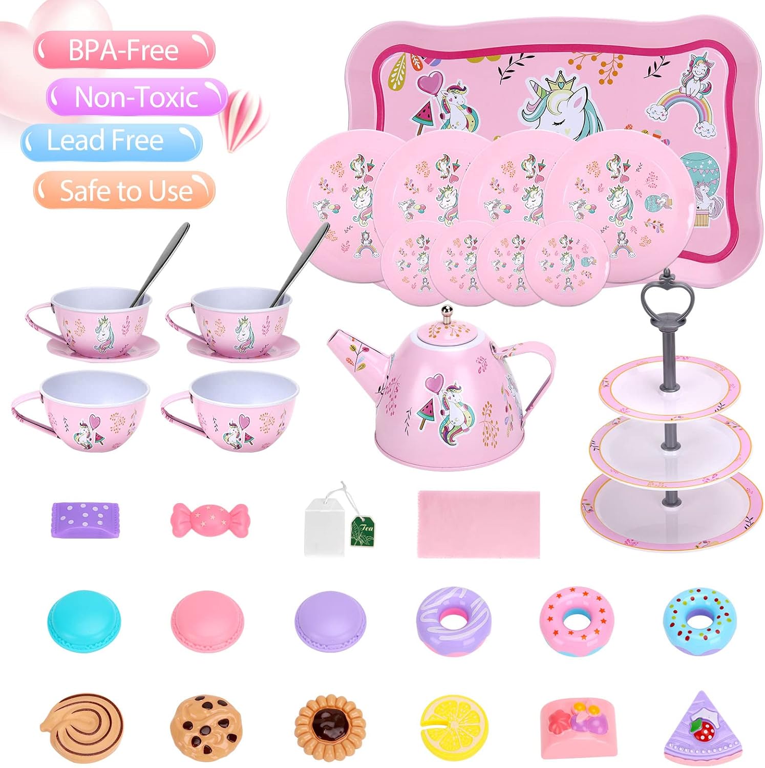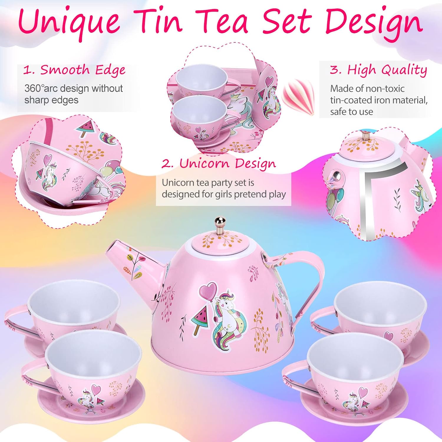 🍰【36 Pcs Set da tè in latta】 Riceverai il set per il tea party che include 1 teiera di latta, 4 tazze da tè di latta, 4 sottobicchieri di latta, 4 piatti di latta, 2 cucchiai, 1 supporto per cupcake a 3 livelli, 1 × Tovaglia, 1 × vassoio da portata in latta, 2 × bustine di tè, 2 × fette di limone, 3 × biscotti, 3 × ciambelle, 2 × torte, 2 × caramelle, 3 × biscotti Macaron e 1 × custodia in cartone. ☕【Gioco di finzione per il tè sicuro】 Il set di giocattoli per il tè è realizzato in materiale di latta di alta qualità non tossico e resistente al calore, bocca liscia della tazza a scopo di protezione durante il gioco. (Nota: tutti i pezzi possono essere facilmente puliti con un panno umido e aria- asciugato dopo averlo gustato.) 🍩【Giocattoli portatili per tea party】 Vieni con una graziosa custodia in cartone rosa con una maniglia per il trasporto per riporlo facilmente, la cui leggerezza consente a tuo figlio di portarlo ovunque, un imminente tea party pomeridiano nelle mani dei tuoi bambini con questa valigia portatile per il tè . 👧【Perfect Tea Pretend Party】 Il set per tea party viene fornito con abbastanza coperti per una festa di 4 persone, incoraggiando il tuo bambino a socializzare e comunicare con amici o familiari. La teiera con coperchio staccabile, che può effettivamente contenere e versare acqua, tè o succo per offrire un'esperienza di gioco più realistica! 🎁【Un regalo degno per la tua principessa】 Ogni bambina ama fingere di giocare. Il set da tè unicorno sarà un ottimo regalo per la tua piccola principessa, con l'obiettivo di offrire immaginazione e divertimento senza fine. E intrattenere le tue bambine per ore.
