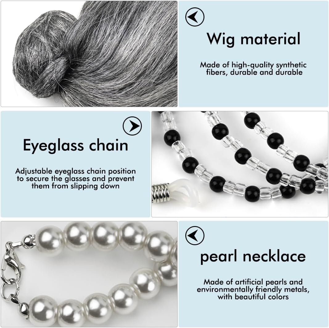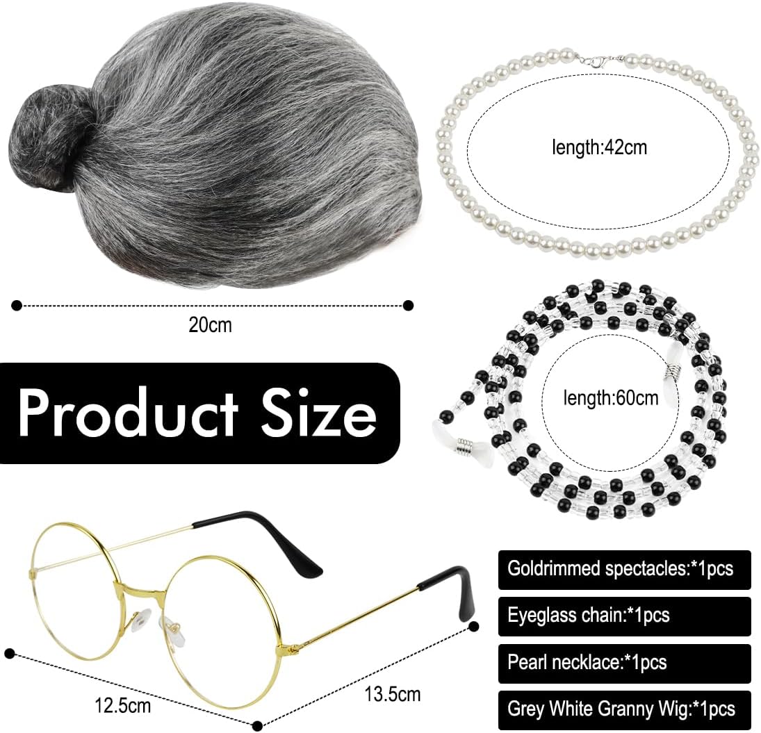 👵🏻 Set di parrucche da nonna: questi completi in cinque pezzi includono parrucche da nonna grigio argento, occhiali da costume rotondi, collane di perle finte, cappucci per parrucche e cordoncini per occhiali. 👵🏻 Accessori Cosplay Old Lady: le parrucche e i cappucci per parrucche della nonna sono realizzati in materiale di alta qualità. Non sono facilmente danneggiati o scoloriti e non causeranno alcun danno al corpo. L'aspetto è realistico, durevole e può essere utilizzato a lungo. 👵🏻 Adatto a ruoli diversi: questo costume da gioco di ruolo per vecchie signore è facile da indossare, comodo da indossare e molto adatto per vestirsi. Ad esempio, se hai bisogno di vestirti come una vecchia signora, un personaggio di un libro, la signora Babbo Natale o un personaggio vittoriano a una festa o in vacanza, è usato come oggetto di scena. 👵🏻 Diverse occasioni a tema: con idee di parrucche insolite che sono nuove per ogni sessione e qualità convincente, le parrucche di carnevale sono state per molti anni il fulcro accattivante di molte feste in costume, ad Halloween e carnevale, negli stadi, ai festival, per eventi di cosplay, ad addii al celibato ea teatro. 👵🏻 Servizio di qualità: se hai domande su questo set di parrucche per nonna, ti preghiamo di contattarci e ti risponderemo entro 24 ore.