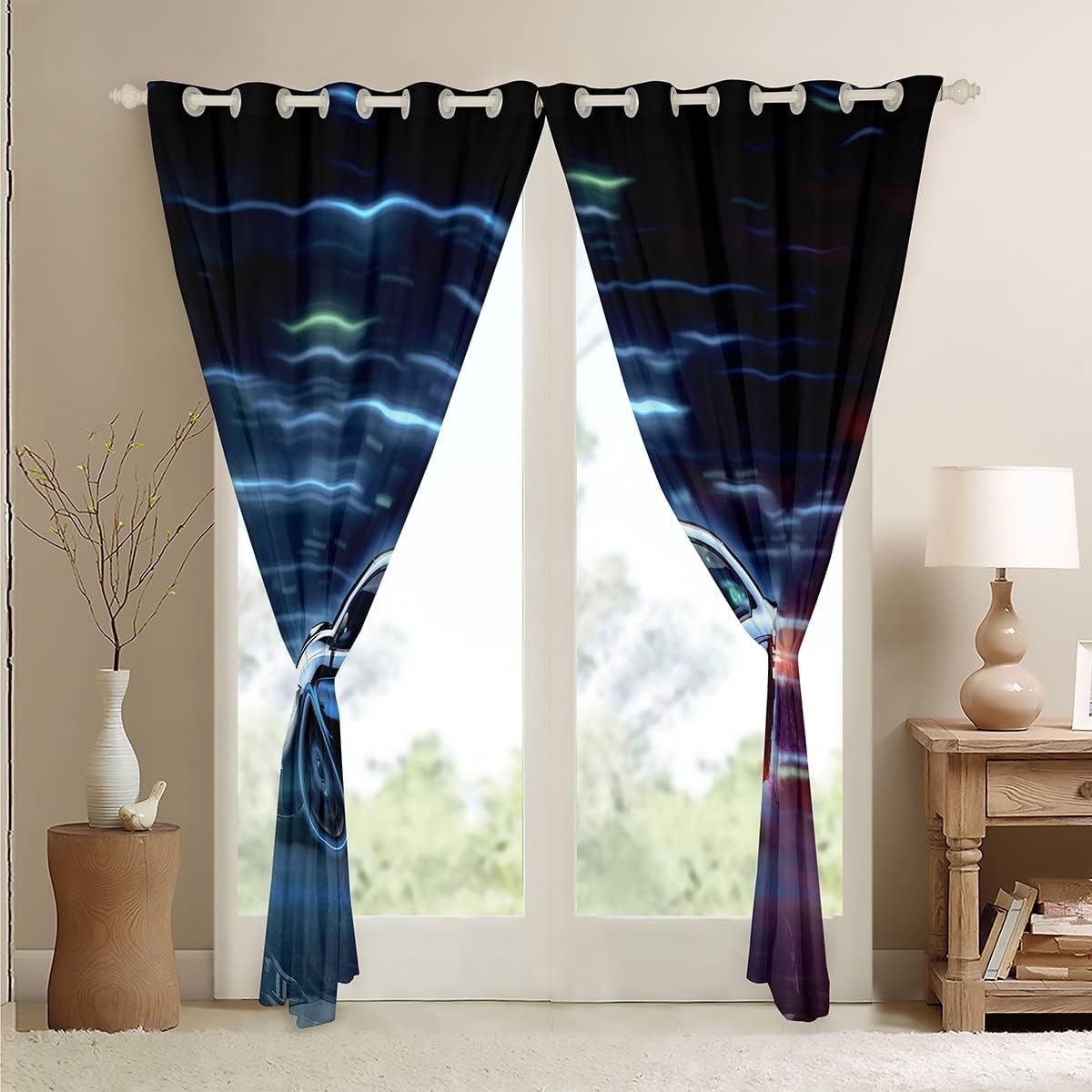 [Set tenda]: Set include 2 pannelli di 52 W x 90 L pollice each.silver grommets in plastica sulla parte superiore (diametro interno 1,8" / diametro esterno 2,7 ") Facile da appendere e scivolare senza intoppi. [Materiale]: Secondo il feedback del cliente, abbiamo aggiornato il tessuto della tenda ➜ Tessuto di velluto di alta qualità (morbido). Le nostre tende decorative NON 100% Tende oscuranti / Non 100% tende di blocco della luce, ma possono bloccare il 30-50% della luce solare a causa di diversi colori (il colore scuro funziona meglio del colore chiaro). [Trattamenti finestre]: La tenda stampata ad alta definizione viene con un design personalizzato fresco, che può proteggere la vostra privacy, abbellire la vostra stanza e aumentare il senso del design. I pannelli di tenda sono perfetti per i bambini ragazzi ragazze bambino donne giovane uomo adulto stanza, soggiorno, camera da letto, sala da pranzo, dormitorio. [Multi-purpose]: Le nostre tende stampate moderne sono con disegni chiari e vivaci colori eleganti. Il pannello tenda è perfetto per bambini Toddler Youth donne giovane uomo stanza, soggiorno, camera da letto, sala da pranzo e stanza dell'infanzia decorativa. [Istruzioni pulite]: La nostra tenda è lavabile in lavatrice nel ciclo delicato e nell'acqua fredda, non candeggina. Ferro da stiro caldo e asciugatrice a basse temperature.