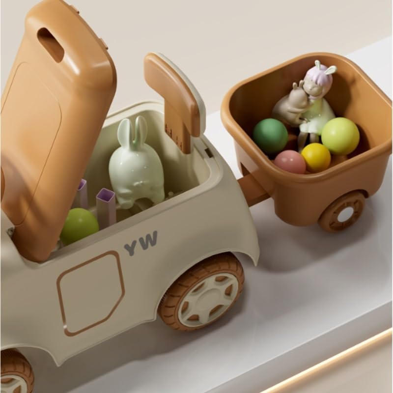 Questa macchina da corsa migliora anche le capacità motorie e la percezione sensoriale, rendendo ogni viaggio un'avventura divertente ed educativa. Prova il doppio del divertimento con questo giocattolo cavalcabile 2 in 1. Attacca il rimorchio e tuo figlio potrà tirare fuori le sue cose preferite. Questa macchina da corsa a pedali è dotata di un comodo spazio sotto il sedile e di un rimorchio rotondo perfetto per riporre mattoncini, snack, bambole, bottiglie e libri. La rimozione del rimorchio semplifica il montaggio e offre maggiore libertà per un giro emozionante. Inoltre, il design antiscivolo garantisce una guida sicura e dona ai genitori una sensazione rassicurante. Le luminose luci a LED illuminano il tempo di gioco e le canzoni integrate intrattengono i bambini. Tutto è controllato con un solo pulsante.