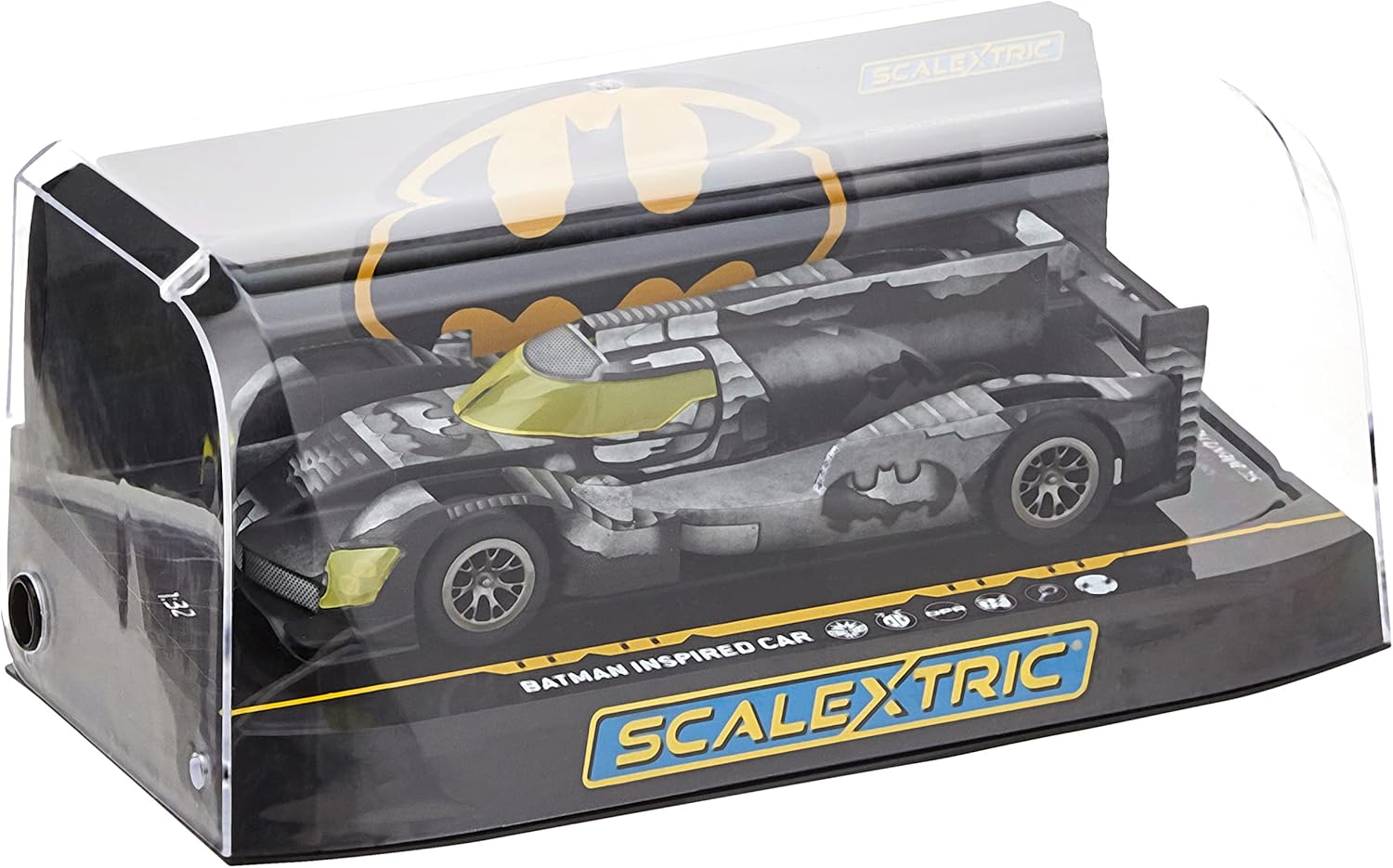 Slot car scalextric in scala 1:32 Un'auto resistente ispirata a batman, adatto per i piloti Il famoso giustiziere mascherato combatte il crimine da 80 anni e di solito non lo si incontra mai senza il suo veicolo preferito Questo elegante veicolo ispirato a batman sarà sicuramente in grado di dare la caccia ai peggiori criminali di gotham Slot car in scala 1:32, compatibile con arc air e spark plug