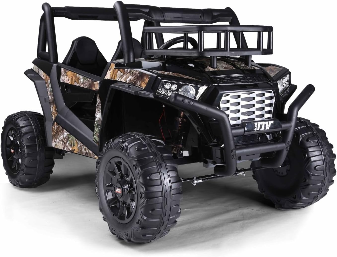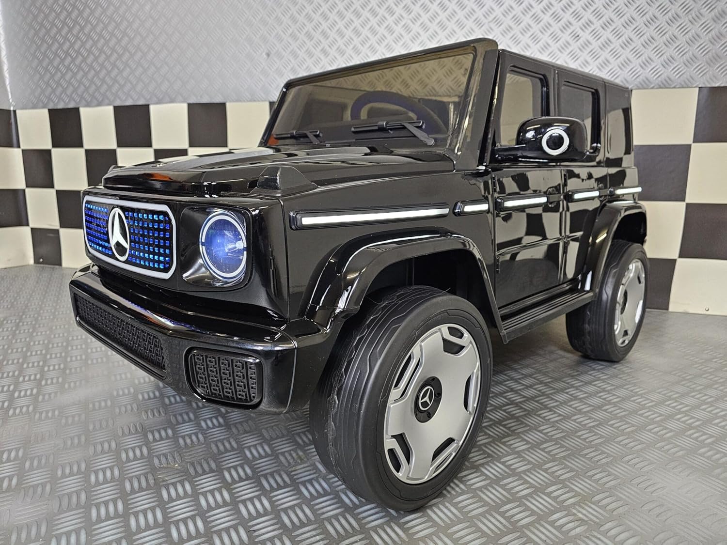 Motore: 4 motori da 12 volt e 25 watt, un motore su ogni ruota Guidando: 3 velocità regolabili fino a 5 km all'ora, si guida sia avanti che indietro con 'soft start", funziona con il pedale dell'acceleratore e con il telecomando, freno elettronico quando il pedale dell'acceleratore viene rilasciato Accensione: illuminazione a LED: fari Musica/Multimedia: suono del motorino di avviamento, pulsanti clacson e musica, storie, modulo musicale con MP3, ingresso USB e Bluetooth per riprodurre la propria musica, volume regolabile, indicatore della batteria