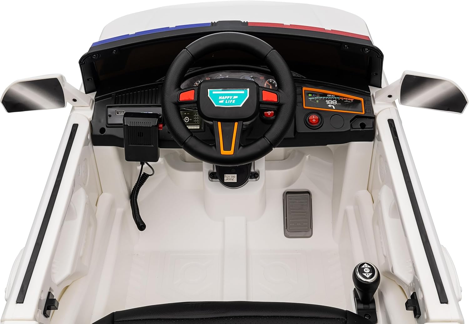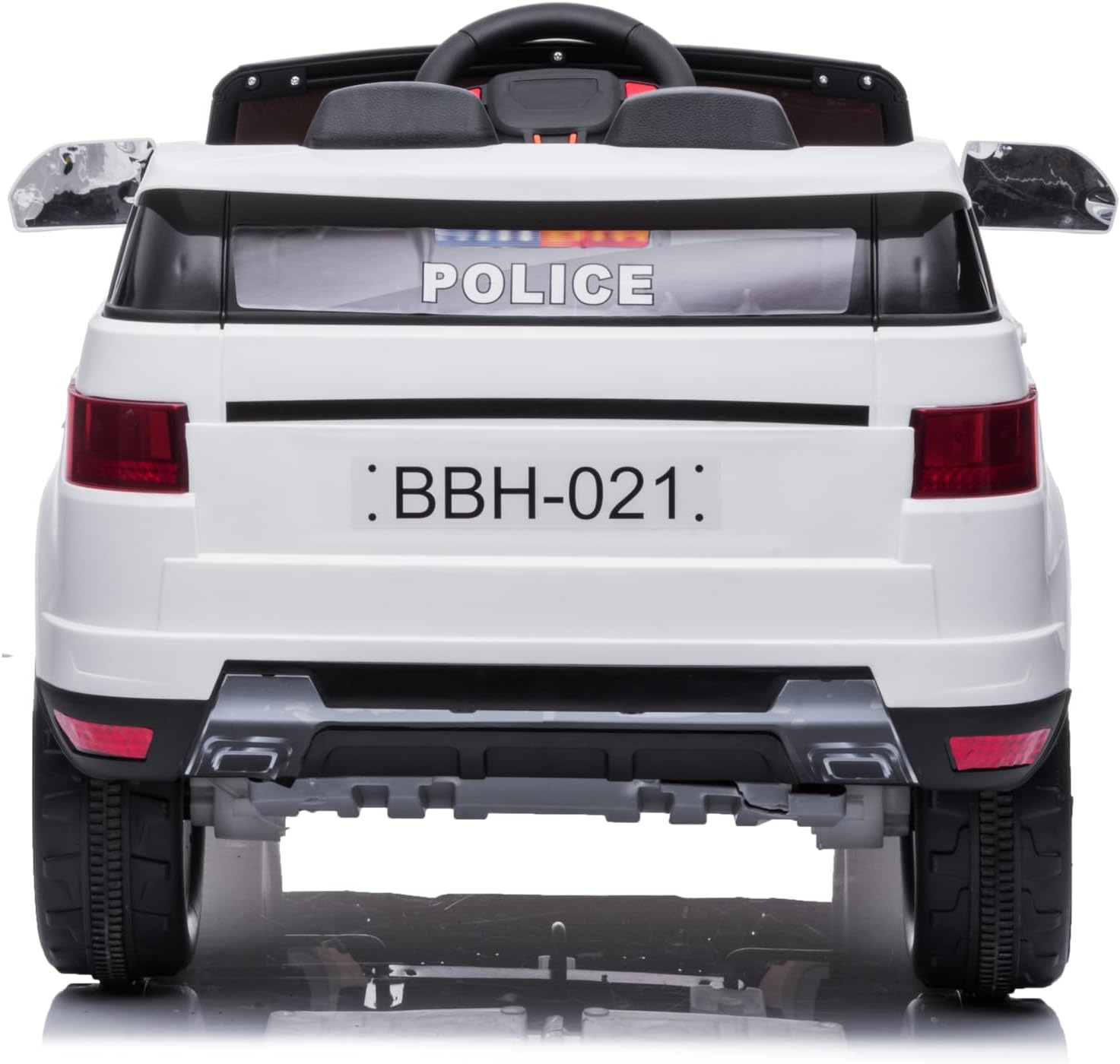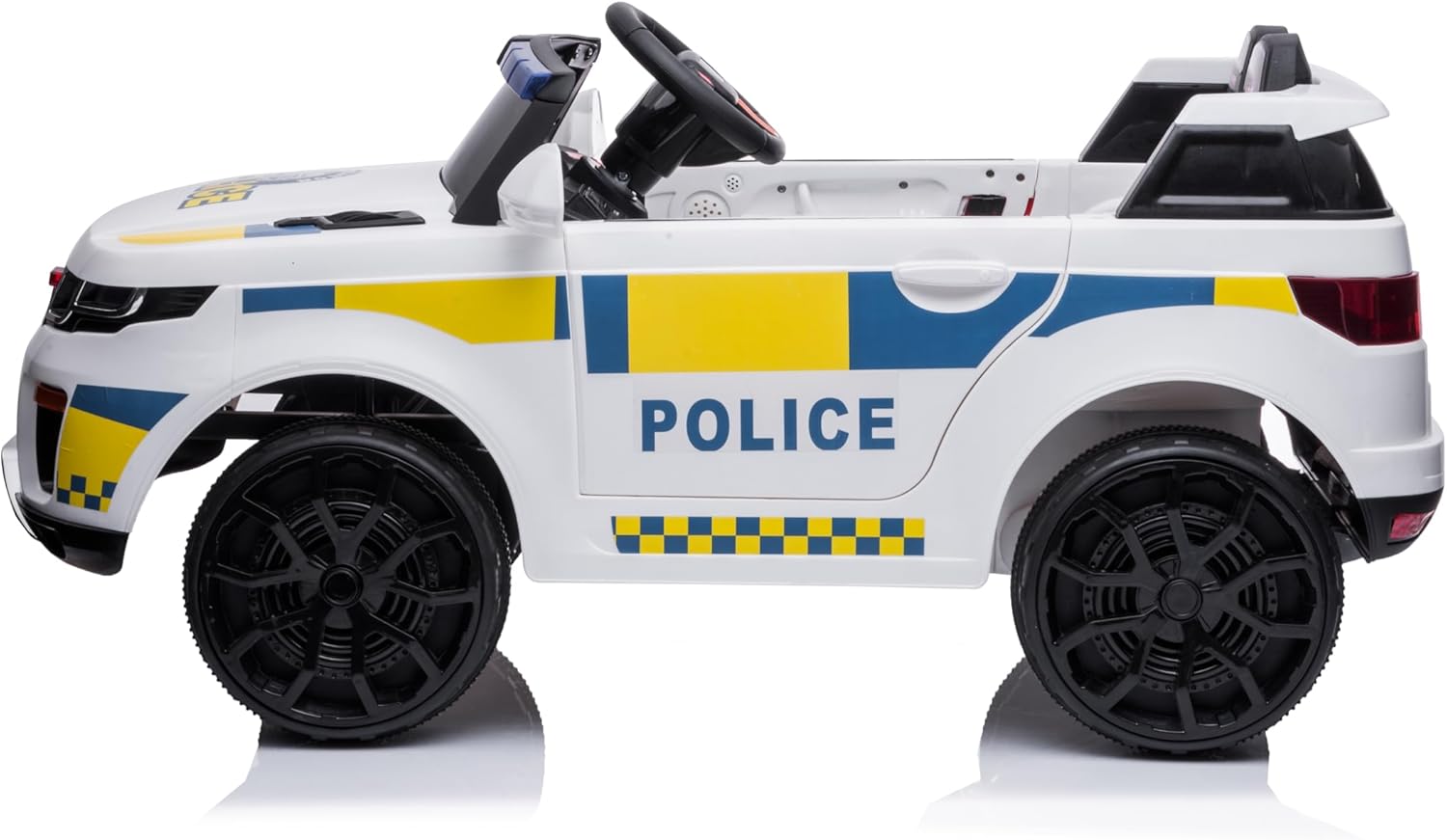 🚨🚨 Auto della polizia per bambini con sirena e luci LED – Progettata per emozionanti inseguimenti, con lampeggianti rossi e blu e suoni realistici di sirena 🎮🎮 Controllo parentale totale con telecomando 2.4Ghz – Guida l’auto a distanza in sicurezza grazie al radiocomando senza interferenze con 3 velocità selezionabili 🛞🛞 Ruote EVA e sospensione posteriore – Pneumatici in gomma EVA e sospensione rendono la guida confortevole anche su terreni irregolari 🎵🎵 Sistema multimediale MP3 con USB e cavo jack – I bambini possono ascoltare la loro musica preferita durante la guida con altoparlante integrato 💺💺 Design premium con sedile in pelle e cintura a 2 punti – Include apertura porte, volante con suoni, maniglia di traino e batteria 12V per lunghe sessioni di gioco