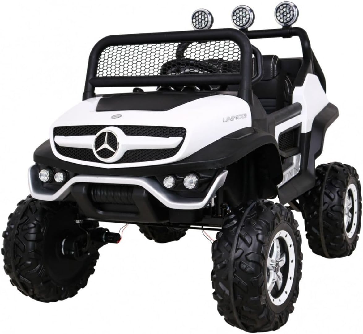 4x potenti motori elettrici da 75 W connessioni effetti Connessione MP3 (jack 3,5) USB, volume Aux regolabile Display batteria Illuminazione disponibile Controllo fari a LED Pedale acceleratore o telecomando Marcia avanti/retromarcia Pneumatici Pneumatici EVA morbidi Indicazioni Sistema CVT disponibile Telaio Ruote posteriori con sospensione Supporto allo sterzo Porte ad apertura manuale 2 porte ad apertura Aiuto per il trasporto (se la batteria è scarica) disponibile Tempo di ricarica ca. 6-8 ore. Peso netto del veicolo 27 kg Peso lordo del veicolo 34 kg Capacità di carico 30-60 kg Età consigliata 36-72 mesi Certificazione Certificato EN71 Dimensioni del veicolo in mm LxPxA 1400x810x470 Dimensioni imballo LxPxA 1440x750x380 Variazioni di colore Giallo, rosso Fornitura Caricabatterie sì Batteria di guida sì Istruzioni sì Telecomando sì
