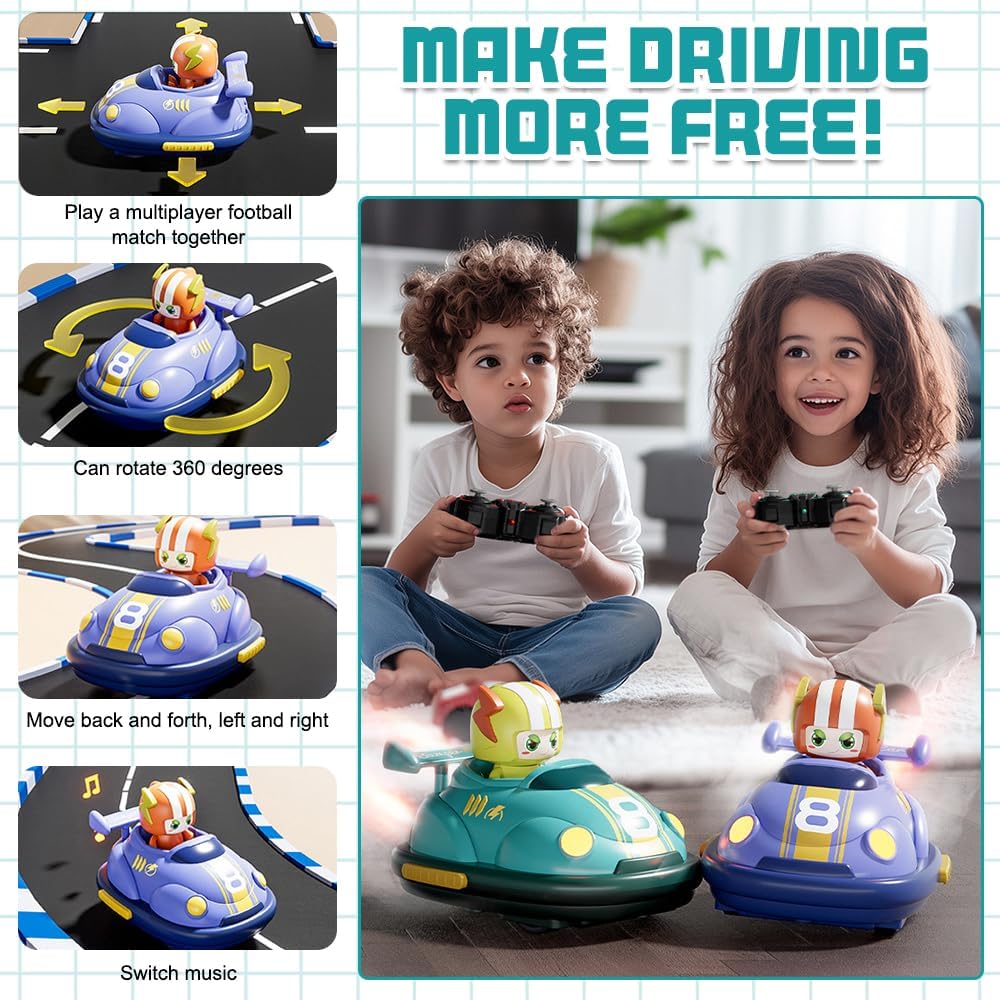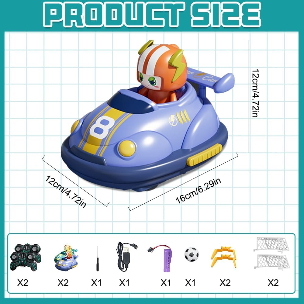 Auto RC per due persone: le nostre Auto Giocattolo Telecomandata Che Si Schianta possono essere trasformate in auto da calcio e sono dotate di un set di gioco completo, che include 2 auto da corsa, 1 mini pallone da calcio, 2 spingipalle e 2 porte. Sono inclusi un telecomando da 2,4 GHz, 2 batterie ricaricabili, un cacciavite e un cavo di ricarica. Doppio divertimento: 1. Scontrarsi a vicenda. Se colpisci il tuo avversario durante il gioco, la bambola all'interno dell'autoscontro viene espulsa e vinci! 2. Partita di calcio: dotata di un mini pallone da calcio e porte, l'Auto Giocattolo Telecomandata Che Si Schianta lancia la palla nella porta dell'avversario per vincere la partita. Musica e luci: le Auto Giocattolo Telecomandata Che Si Schianta sono dotate anche di fantastiche luci LED, musica ed effetti sonori per un'esperienza audiovisiva coinvolgente. Il telecomando richiede 2 batterie AA, non incluse. Sicure e resistenti: le Auto Giocattolo Telecomandata Che Si Schianta sono realizzate in robusta plastica ABS antiurto con bordi lisci. Puoi controllare facilmente le macchinine su pavimenti in legno, piastrelle, moquette a pelo corto, ecc. Le macchinine telecomandate per bambini sono molto veloci e offrono un eccellente senso di controllo. Regalo per bambini: ogni Auto Giocattolo Telecomandata Che Si Schianta è dotata di una batteria ricaricabile, che consente un gioco continuo. Portano gioia e divertimento, sviluppando al contempo le abilità. Perfette per compleanni, Natale e altre festività: divertimento e sorprese infinite per tutti.