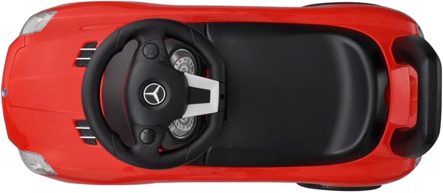 Questa macchina a spinta per Bam bini stile Mer cedes Be nz è un giocatolo realistico e sicuro. Può suonare 6 melodie attivate con pulsanti sul volante. Ha uno spazio sotto il sedile per depositare piccoli giocatoli. Grazie alla sua costruzione resistente in plastica, questa macchina a spinta può sopportare fino a 23 kg ed è adatta per Bam bini dai 2 anni in su. La base stabile con 4 ruote permette al Bam bino di salire e scendere facilmente.