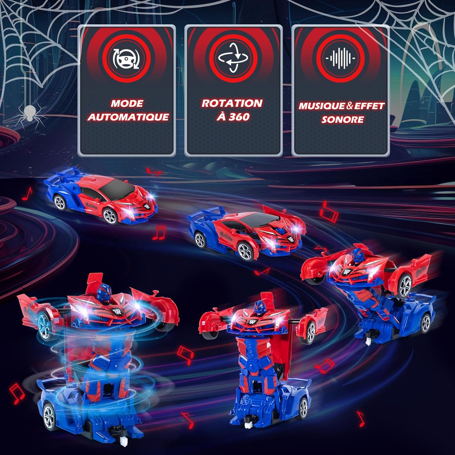 【Auto Transformers recentemente aggiornata】 Robot e auto 2 in 1, premi il pulsante di trasformazione, l'auto RC può trasformarsi in un fantastico robot. Sono stati aggiunti la funzione di consapevolezza dei gesti, luci LED ed effetti sonori (che possono essere disattivati) per offrire ai bambini un'esperienza di gioco più varia e più interessante! 【Esperienza di gioco estrema】 Luci a LED luminose, suono realistico del motore, rotazione a 360° e deriva in modalità auto e modalità robot, questa macchina telecomandata ti offre un'esperienza di corsa realistica. Devi solo premere il pulsante "DEMO" e l'auto RC trasformabile dimostrerà automaticamente le sue funzioni e ti sorprenderà! 【Divertimento prolungato】Abbiamo preparato due batterie ricaricabili per l'auto telecomandata e due batterie per il telecomando, in modo che il bambino che riceve il regalo possa godersi immediatamente il divertimento dell'auto trasformabile. Puoi giocare con l'auto telecomandata per circa 40 minuti o più. (20+ minuti per batteria, a seconda del funzionamento) 【Materiali sicuri e di qualità】 Questa macchina robot trasformabile è realizzata in robusta plastica ABS e pneumatici in gomma di alta qualità, che possono resistere a urti e cadute anche durante le sessioni di gioco più intense, garantendo al tuo bambino un intrattenimento felice e duraturo. 【La migliore scelta di regali】 Le nostre auto telecomandate con trasformatore sono splendidamente confezionate, è il regalo di compleanno o di Natale ideale per i bambini interessati alle auto RC e ai robot trasformatori. I bambini dai 3 ai 12 anni lo adoreranno.