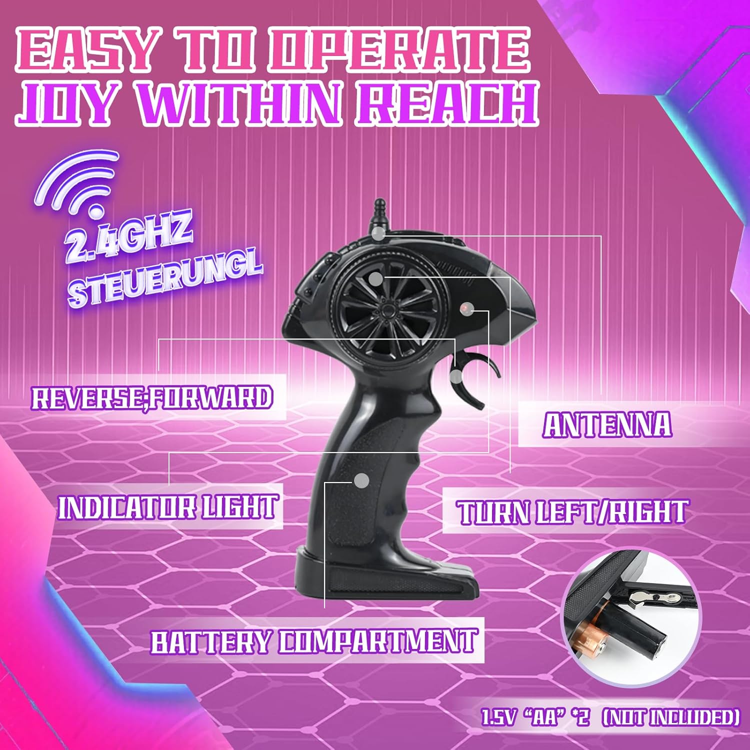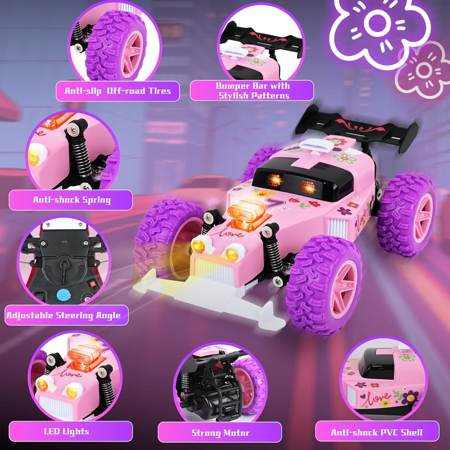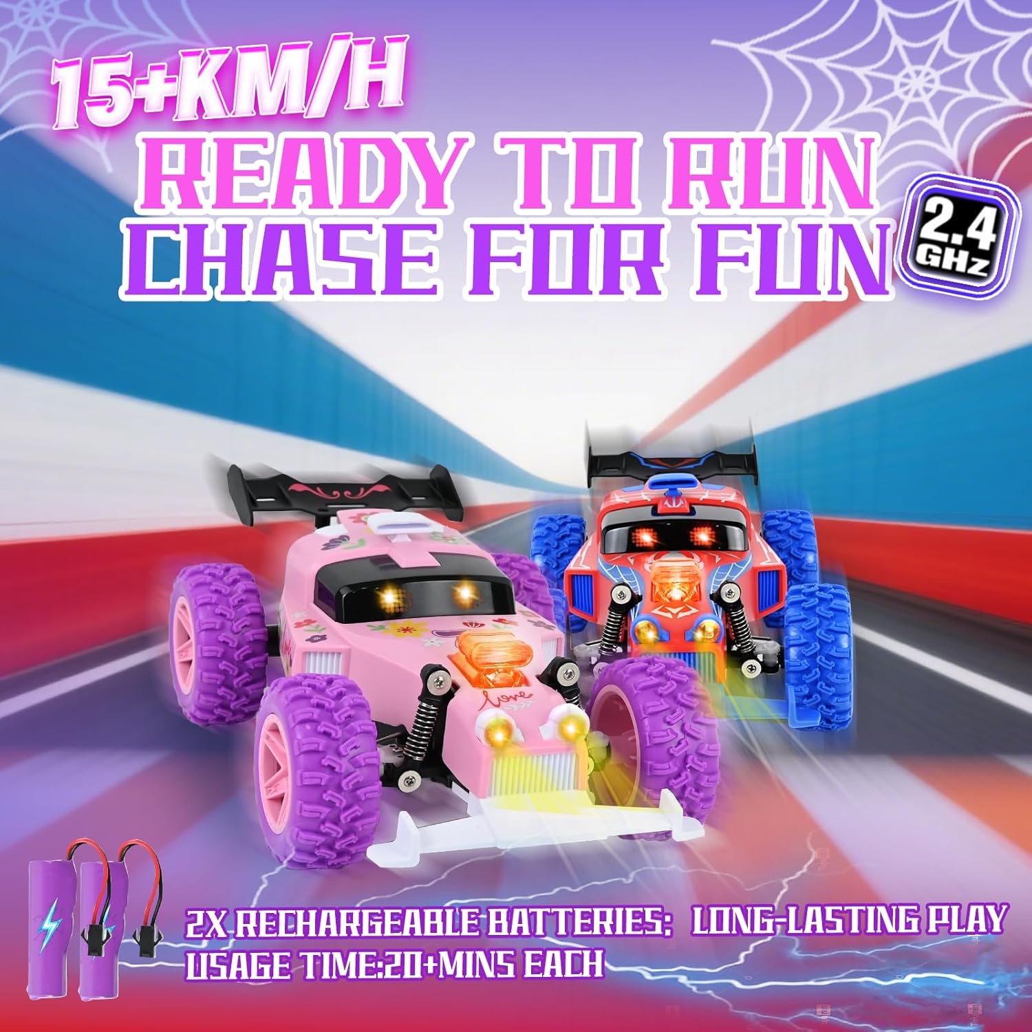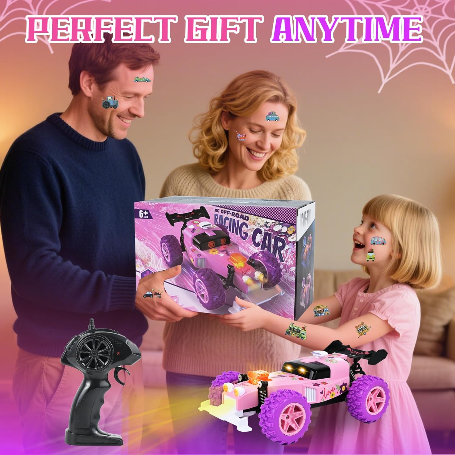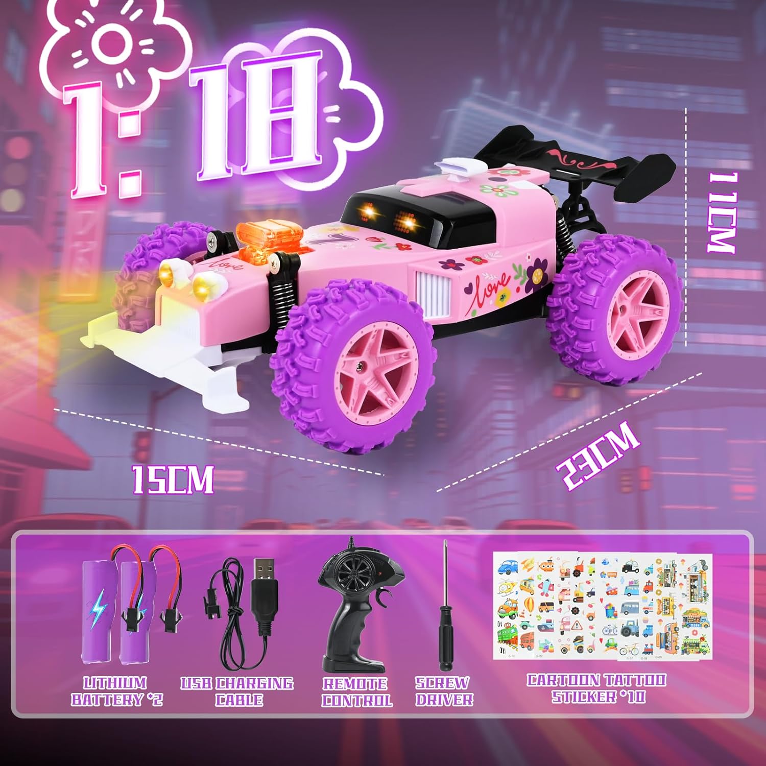 🏎️🏎️【Auto ad alta Velocità】Riceverete 1 auto telecomandata, 1 telecomando, 2 batterie ricaricabili, 1 cacciavite, 1 cavo USB e 1 manuale di istruzioni. Il telecomando a 2,4 GHz è privo di interferenze, ha una portata estremamente ampia e supporta l'uso simultaneo di più auto senza che queste si disturbino a vicenda. Può essere utilizzato sia all'interno che all'esterno. 🕷️🕷️【Design Accattivante】Due modelli tra cui scegliere: il modello spider con colori contrastanti rosso e blu e motivi a forma di ragno trasmette potenza e velocità; Il modello dream flower con tonalità rosa-lilla e motivi floreali soddisfa i gusti delle bambine. Il design accattivante rende l'auto irresistibile per i bambini. 🌺🌺 【Illuminazione Colorata】I fari e le luci della carrozzeria dell'auto sono dotati di una tecnologia intelligente di sfumatura dei colori che cambia automaticamente tra 7 fantastici colori all'avvio dell'auto telecomandata. Durante la guida notturna, questo crea fantastici effetti di luce e ombra che attirano immediatamente l'attenzione dei bambini e rendono l'esperienza di gioco ancora più intensa. 🎊🎊 【Auto Fuoristrada】Il telaio rinforzato a trazione integrale e gli pneumatici fuoristrada ad alta aderenza consentono di attraversare senza sforzo terreni complessi come sabbia, erba e ghiaia. La parte anteriore resistente agli urti protegge l'interno del veicolo. La doppia batteria garantisce una durata particolarmente lunga, prolungando così il tempo di gioco e la durata del giocattolo. 🎁🎁【Il Regalo di Natale Perfetto】Questa auto telecomandata con luci respiranti è adatta a bambini e bambine dai 6 anni in su. Non solo stimola gli interessi e gli hobby dei bambini, ma migliora anche le loro capacità motorie grazie al divertimento senza fine. Il regalo perfetto per compleanni, Natale e altre festività!