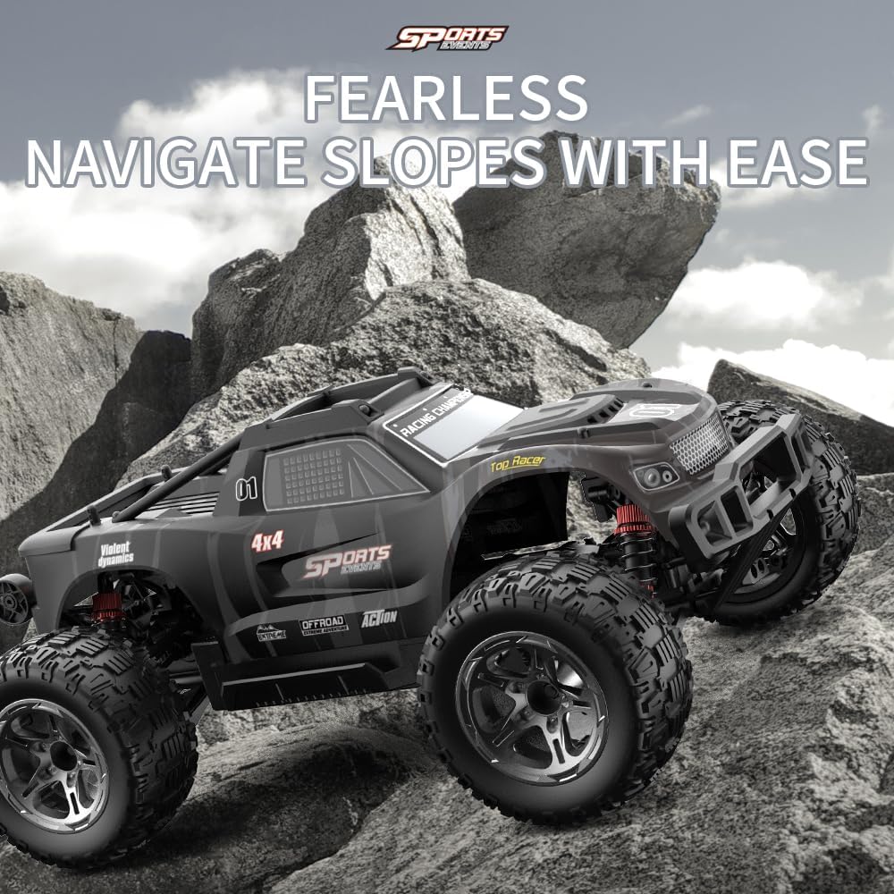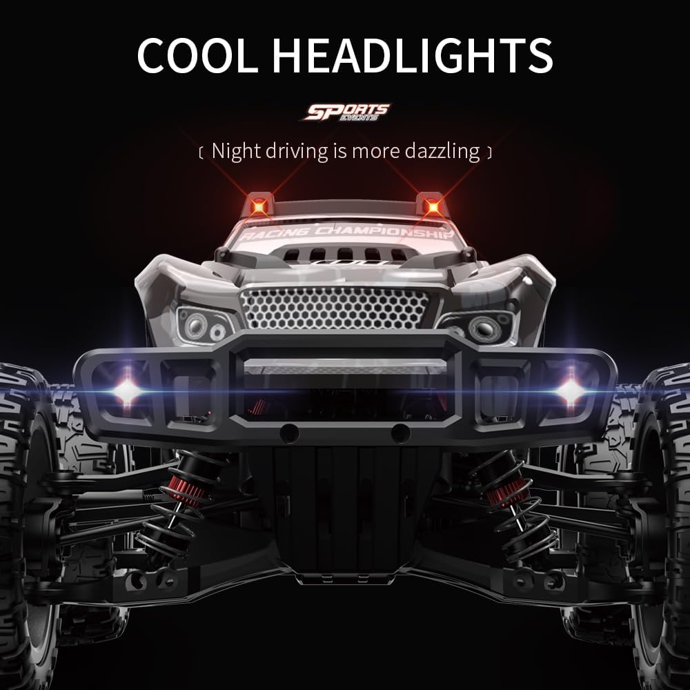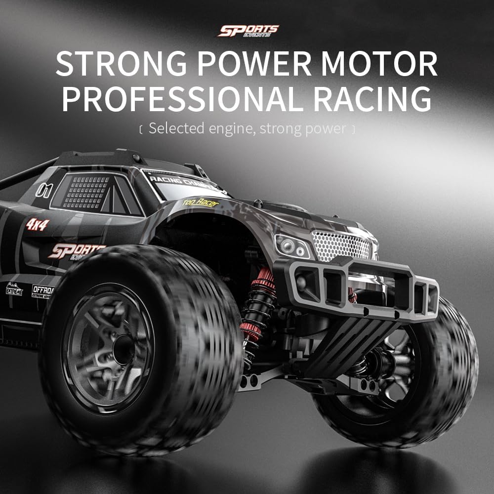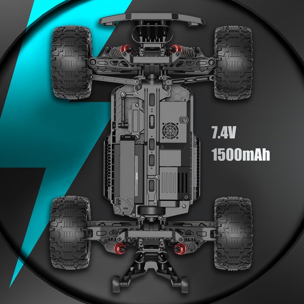 [Motore ad alta velocità 540] Questo veicolo telecomandato è dotato di un motore ad alta velocità 540 e raggiunge una velocità massima di 50 km/h. [Pieno gas] pieno gas/sterzo consente una trasmissione continua e garantisce un'esperienza di guida autentica. La carrozzeria presenta un design strutturato simulato, mentre la custodia è realizzata in PVC resistente agli urti. [Alta stabilità] La trazione integrale con sospensione anteriore e posteriore, sospensione indipendente a doppio braccio trasversale e pneumatici simulati Monster truck garantisce un'aderenza eccezionale al suolo. Il veicolo affronta facilmente terreni pianeggianti, sabbia, fango ed erba. [Alta affidabilità] trazione integrale, doppi sistemi differenziali anteriori e posteriori, componenti di azionamento migliorati e resistenza del telaio, assi metallici e rotazioni. Questi componenti migliorano la robustezza e l'affidabilità del veicolo e offrono un'eccellente resistenza alle vibrazioni e agli urti. [Durata prolungata della batteria] Batteria agli ioni di litio da 7,4 V-1500 mAh (presa a T). Una singola batteria offre fino a 18 minuti di autonomia. Si consiglia di utilizzare tre batterie per un tempo di riproduzione più lungo.