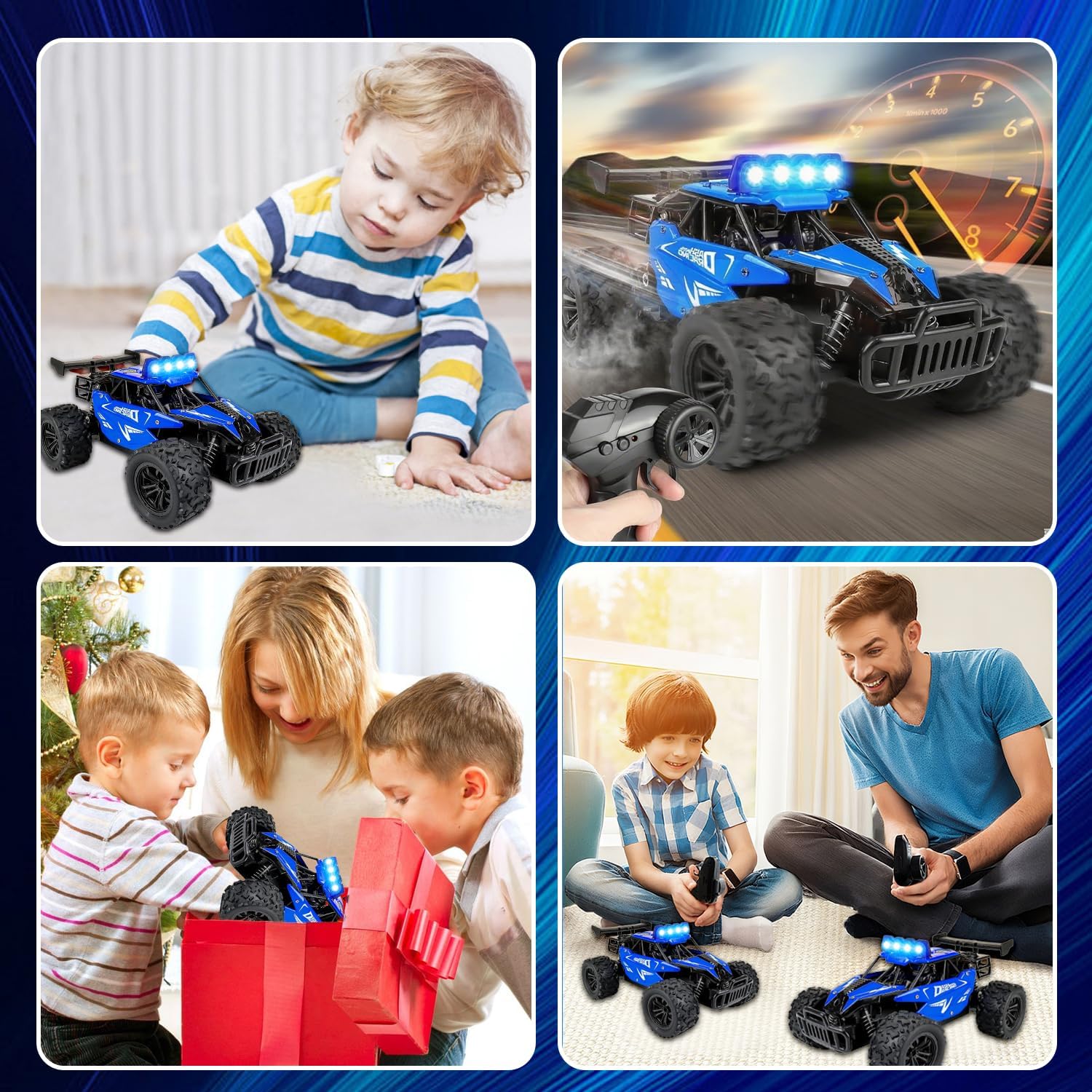 🎮【Materiali di alta qualità】 Realizzata in ABS di alta qualità con un robusto guscio esterno e paraurti anteriori e posteriori, l'auto RC fuoristrada è caratterizzata da un'eccellente resistenza agli urti. Gli pneumatici ad alta resistenza all'usura consentono un utilizzo affidabile su vari terreni come spiagge, zone umide, prati e strade di montagna impegnative. 🎮【Luce LED a quattro colori】 Quest'auto da macchina telecomandata drift di luci LED realistiche a quattro colori, commutabili in bianco, rosso, verde e blu. Le luci fredde non solo danno alla carrozzeria un impatto visivo indimenticabile durante il giorno, ma illuminano anche la strada quando si gioca di notte, il che è sia fresco che piacevole per gli occhi. 🎮【Alta Velocità Off Road Vehicle】 L'Auto Telecomandata Fuoristrada può raggiungere velocità fino a 20 km/h a piena velocità, la frequenza remota è di 2,4 GHz, il telecomando senza ritardo, consente di giocare con un'auto telecomandata senza interferenze di segnale. Questo darà a tuo figlio spazio sufficiente per dimostrare le sue abilità nelle competizioni con gli amici. 🎮【Prestazioni elevate su qualsiasi terreno】 Che si tratti di piastrelle e tappeti in interni o di strade di cemento all'aperto, questo All Terrain Offroad Telecomandata Auto può mantenere una forte potenza. Le corse con la famiglia o gli amici sono sempre emozionanti e tutti possono godersi il puro piacere. 🎮【Regalo】 Macchina Radiocomandata con Luce LED Quattro Colori è un'auto telecomandata in scala 1/16 appositamente progettata per principianti e bambini RC. Che si tratti di regali di compleanno per ragazzi o ragazze o regali di Natale sono buone scelte.
