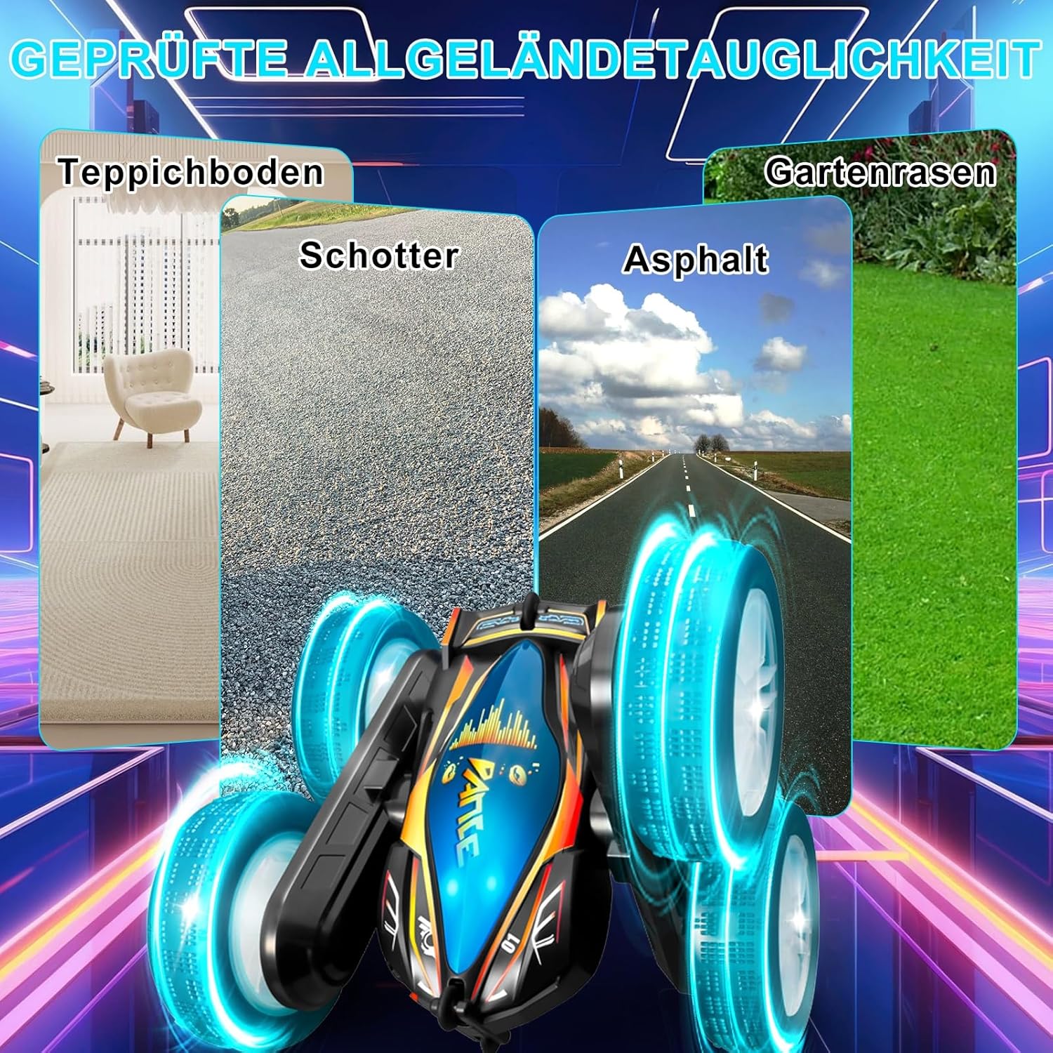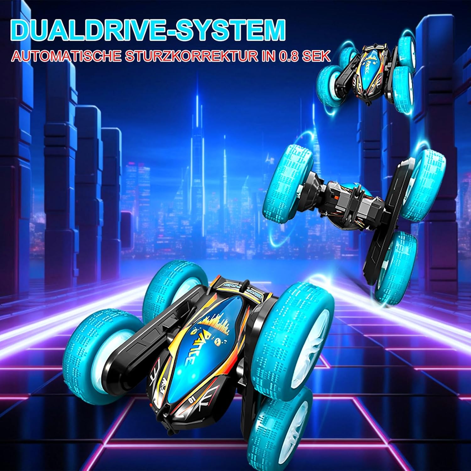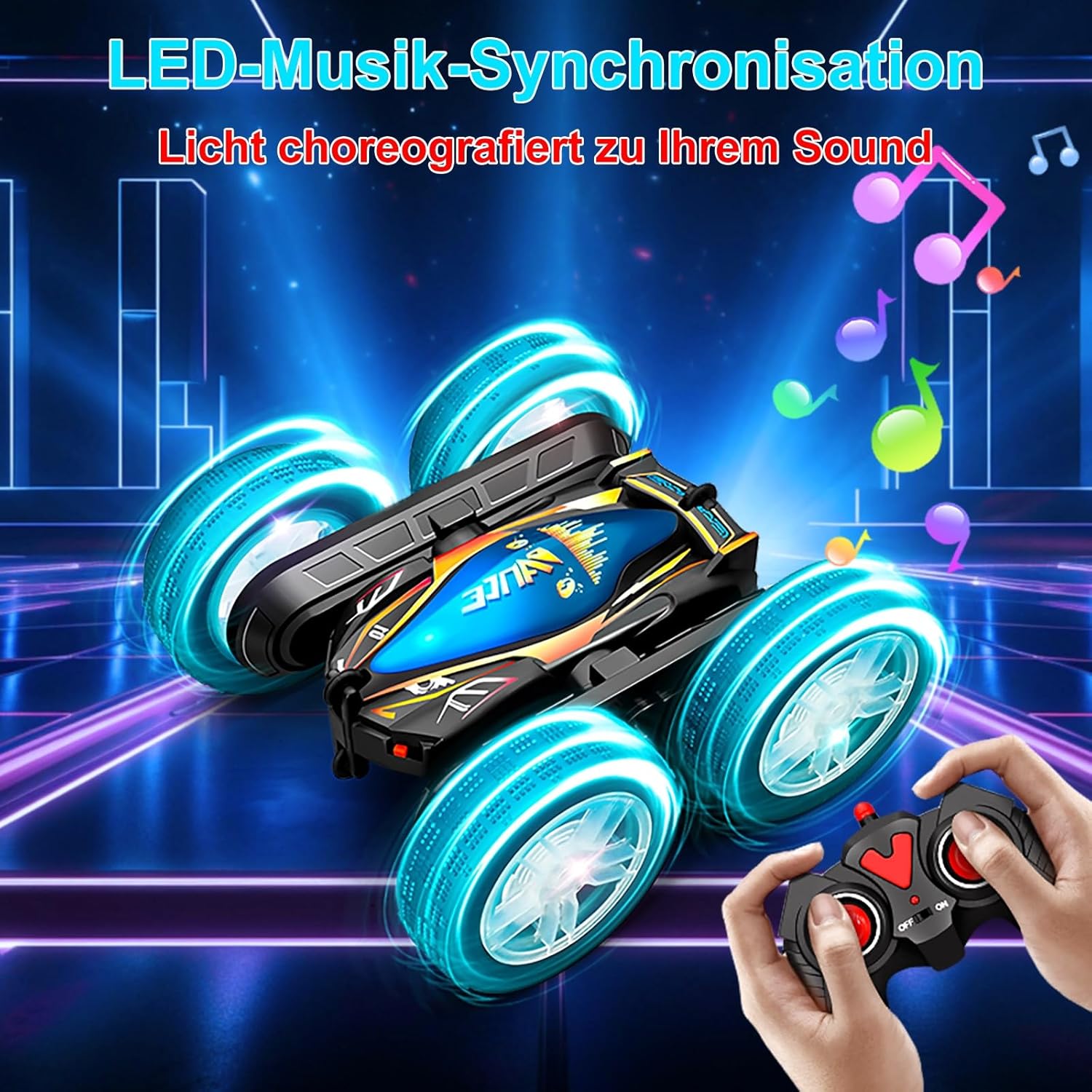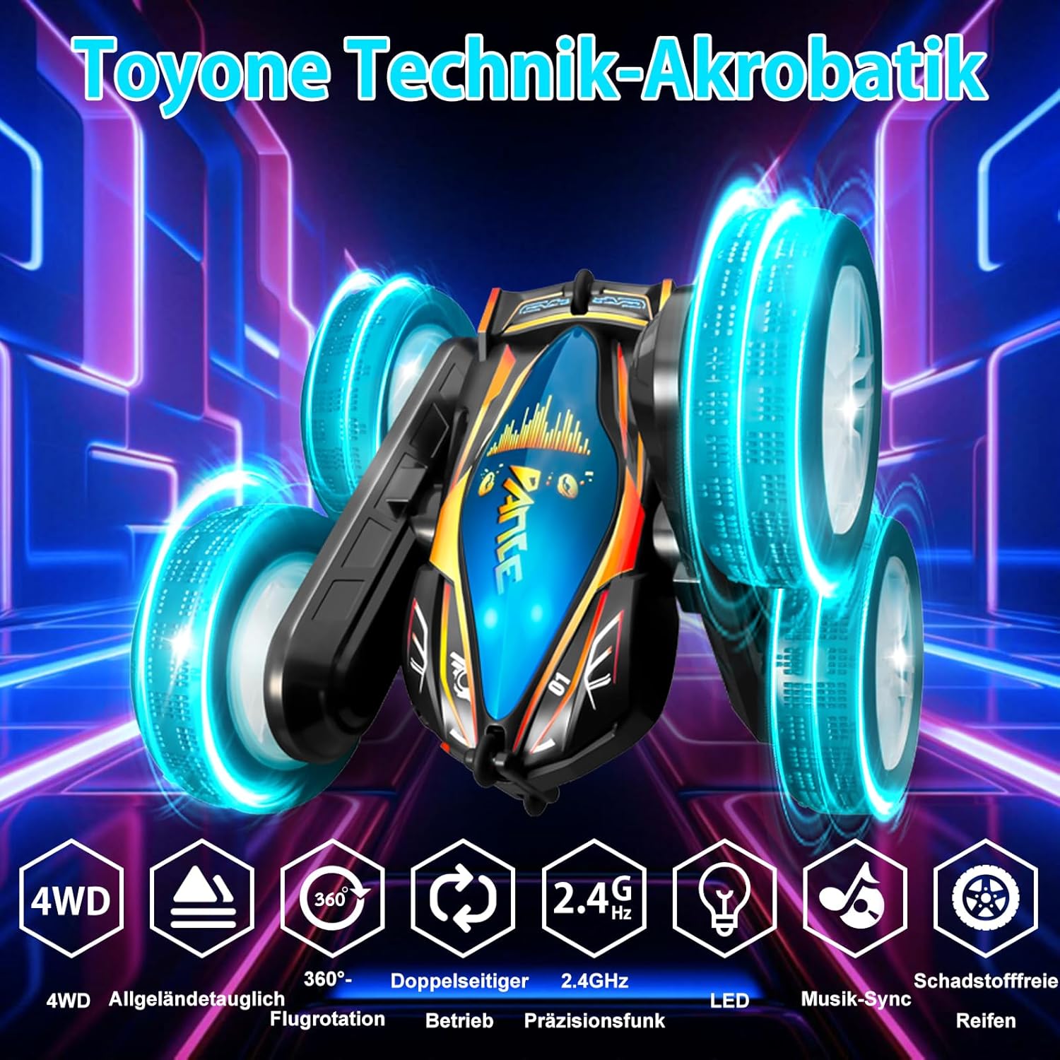 Design Transformers 2025 e acrobazie spettacolari: l'auto Toyone RC convince con un look Transformers, ruote LED lampeggianti e musica coinvolgente, perfetta per i piccoli piloti Grazie alla rotazione a 360° e all'azionamento 4WD, gestisce acrobazie mozzafiato come ribaltamenti, derive e viaggi fuoristrada di monstertruck. Che si tratti di treni Hot Wheels, in giardino o in spiaggia, questa auto telecomandata a partire dagli 8 anni garantisce azione. Attenzione: nota per il telecomando. Questo set contiene esclusivamente il telecomando palmare (controller). Il telecomando Gesture Control mostrato nel video non è incluso e deve essere acquistato separatamente. 【Robusto monster truck 4WD & lunga durata di gioco】 Dotato di un potente motore 4WD e design resistente agli urti, l'auto RC si muove facilmente su sabbia, erba, pietre o tappeti. Le 2 batterie ricaricabili (40 minuti ciascuna). tempo di gioco) e protezione da sovraccarico lo rendono un giocattolo ideale per attività all'aria aperta per bambini. Anche dopo acrobazie selvagge continua a guidare – grazie alla funzione di guida su entrambi i lati! Robusto e adatto a qualsiasi terreno: grazie allo speciale pneumatico in gomma e alla struttura stabile, l'auto affronta facilmente sabbia, erba, tappeto e molto altro ancora. L'esclusivo asse oscillante impedisce il ribaltamento, ideale per interni ed esterni. Realizzato in plastica ABS di alta qualità con proprietà antiurto e pneumatici morbidi. Atossico, resistente ai graffi e perfetto per i giovani piloti a partire dagli 8 anni. Controllo semplice e modalità di gioco multiple: la tecnologia avanzata a 2,4 GHz consente un controllo preciso fino a 45 metri di distanza – senza perdita di segnale. Più auto possono essere guidate contemporaneamente, senza interferenze! Ideale per gare con amici o fratelli. Perfetto come regalo per ragazze/ragazzi (8-12 anni), sia per feste di compleanno per bambini, Natale o Pasqua. Giocattolo sicuro e versatile: leggero (469 g) e compatto (16 x 15 x 7 cm), ideale per mani piccole, istruzioni in inglese con istruzioni illustrate unisex, simile alle auto giocattolo Lamborghini, adatte per interni ed esterni, treno a ruote calde, giardino o giocattoli da spiaggia Regalo perfetto per i bambini: per compleanno, Natale o semplicemente così, questa auto RC promuove la creatività, le abilità motorie e garantisce ore di divertimento. Non importa se: regalo per bambine 8 910 11 12 anni regalo ragazzo 8 9 10 11 12 anni regalo di Natale, compleanno o Pasqua fan di auto, monstertrucks o RC Drift Cars. Un giocattolo educativo prezioso che stimola le capacità motorie e la creatività – e garantisce occhi luminosi dei bambini