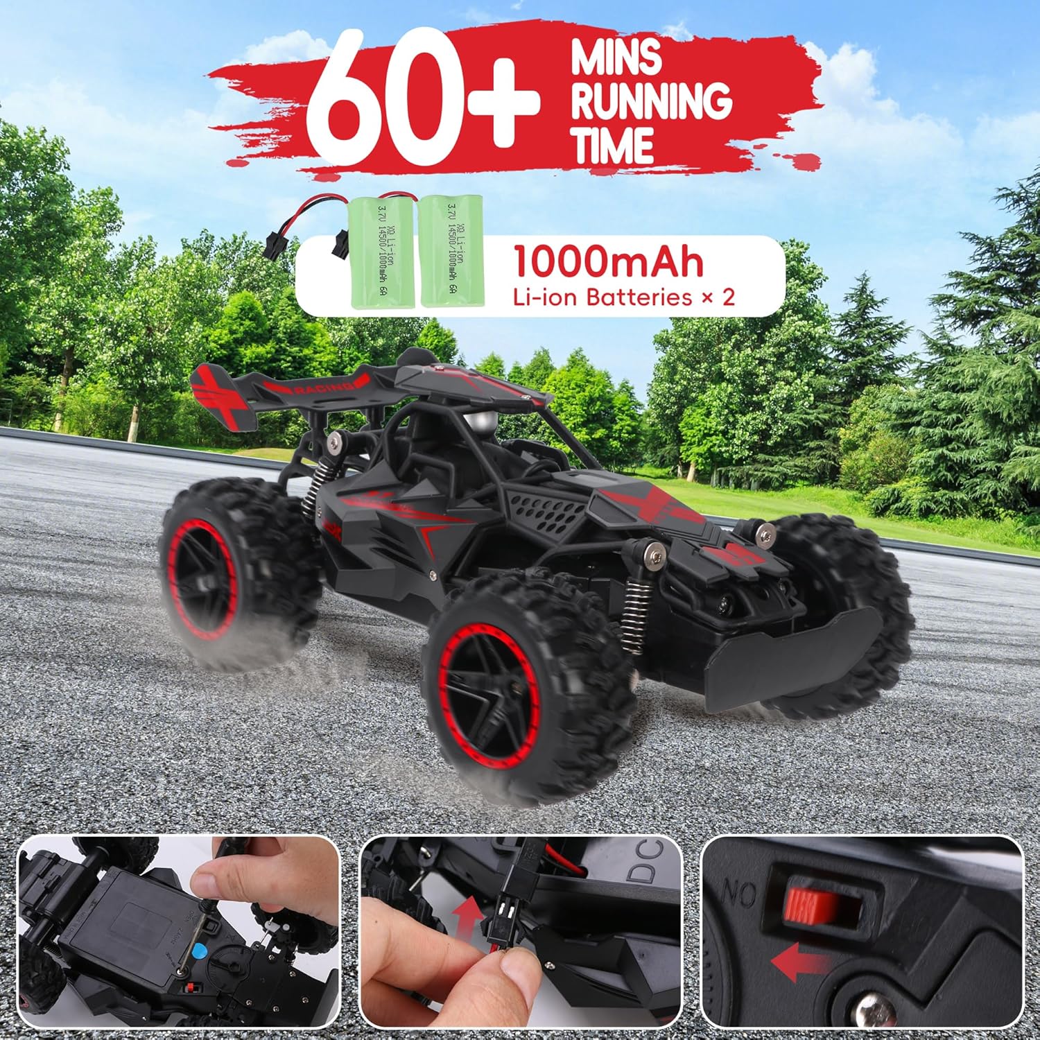 Habuddy Auto radiocomandate 2,4 GHz RC auto con luci a LED, 15+ km/h ad alta velocità RC Monster trucks, 1:18 giocattolo auto per Natale e compleanni per bambini dai 3, 4, 5, 6 e 7 anni
