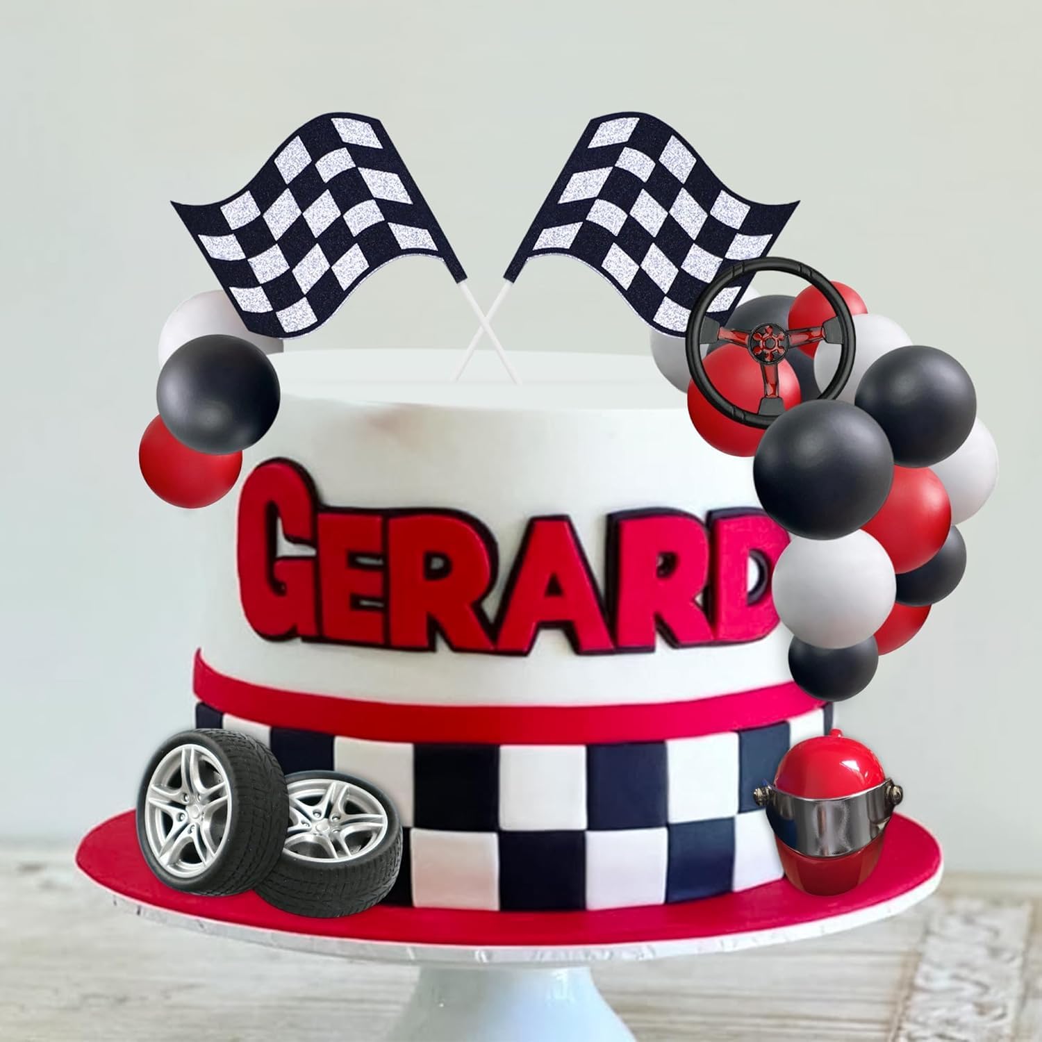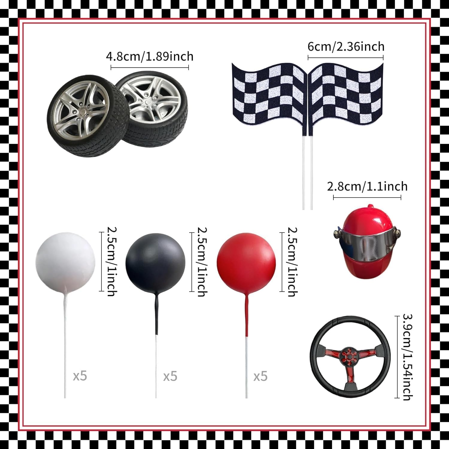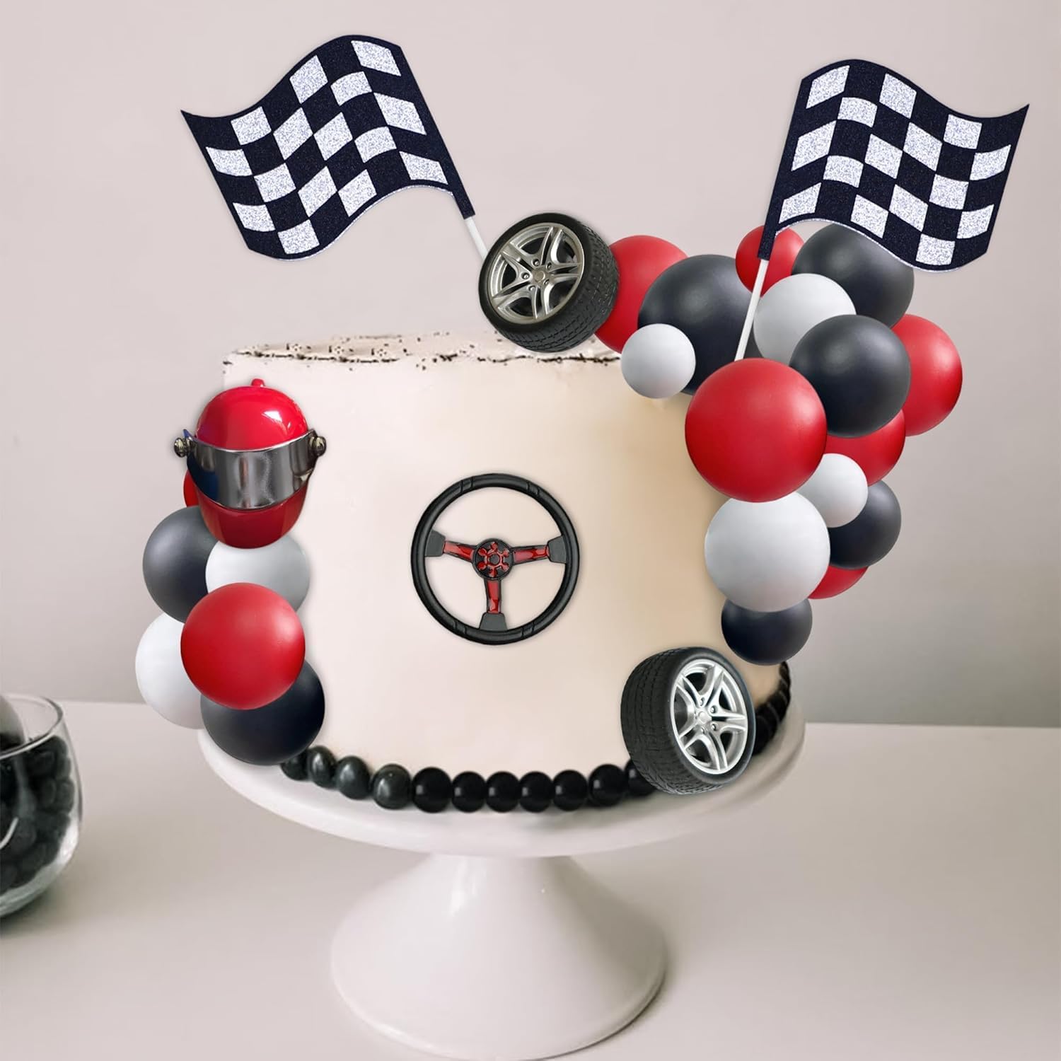 【Cake Topper】questo auto topper per torta include 15 cake balls, un casco, un volante, due pneumatici e un paio di bandierine: usa questi accessori per abbellire i tuoi dessert a tuo piacimento. 【Tema Auto】ogni elemento decorativo di questo set è progettato attorno a elementi automobilistici, creando un aspetto tridimensionale coerente, che rende facile creare un'atmosfera di festa a tema automobilistico. 【Un Regalo Perfetto】questo auto tema cake toppers è perfetto per gli amanti delle auto, con una varietà di accessori raffinati dal design unico, pratici e curati. 【Varie Occasioni Applicabili】questo auto decorazioni per torte presenta forme raffinate e colori vivaci, che lo rendono perfetto per feste a tema automobilistico, compleanni per bambini, feste all'aperto, esposizioni di dolciumi e altro ancora. 【Alta Qualità】le cake balls sono realizzate in schiuma leggera, il volante e il casco sono in metallo, gli pneumatici sono in plastica e le bandierine sono in carta. Questi accessori di alta qualità aggiungeranno un tocco di allegria al tuo dessert.
