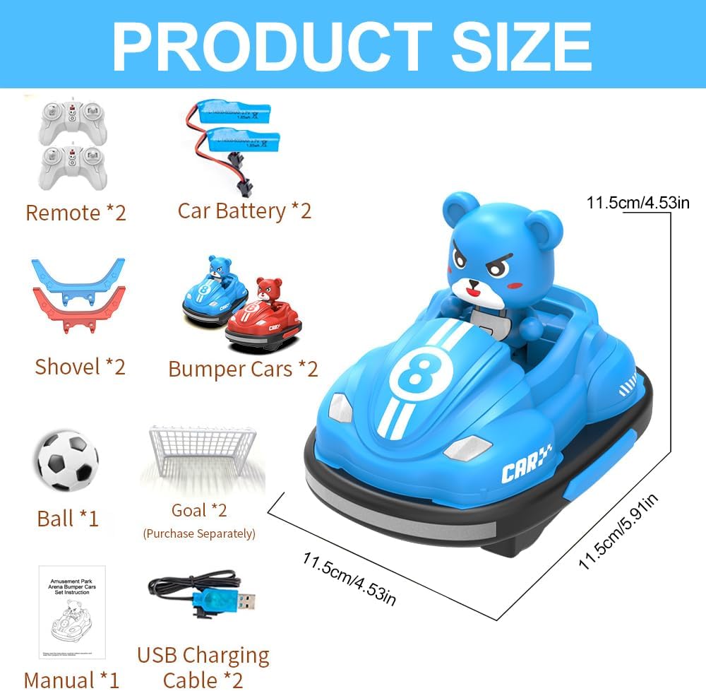 【Auto telecomandata】 Le nostre auto bumper RC hanno una varietà di possibilità di giocare, sia per giocare a corse aperte e due giocatori paraurti al paraurti, e la frequenza di 2,4 GHz consente a più auto RC di correre insieme senza disturbarsi l'un l'altro. Auto Scooter telecomandato per bambini, include 2 auto da corsa dei cartoni animati, 2 personaggi separabili, 2 telecomandi da 2,4 GHz, 2 batterie a batteria, 2 cavi di ricarica, 1 calcio, 2 pala 2 porte Sicuro e durevole: giocattolo per auto telecomandato in plastica ABS, struttura robusta e durevole. Resistente agli urti, alle cadute e agli urti. Bordi arrotondati, lisci e senza sbavature, in modo che i bambini piccoli possano giocare in modo sicuro e allegro. Questo monopattino radiocomandato per bambini è inoltre dotato di ruote in gomma per evitare lo scivolamento efficace, adatto per tutti i tipi di pavimento, il che garantisce ancora più divertimento Suoni realistici dal design fantastico: i monopattini radiocomandati offrono un'esperienza unica – in caso di collisioni laterali il conducente viene lanciato, il che è più emozionante ed emozionante rispetto ai tradizionali scooter per auto. Questi scooter per auto per bambini sono dotati di acrobazie a 360°, musica dinamica e fantastici effetti di luce, arricchiscono l'esperienza di gioco con un'atmosfera interessante e un emozionante gioco di corse anche di notte Divertente ed educativo: questo paraurti RC favorisce l'interazione tra genitori e figli e tra amici, è possibile camminare in avanti o indietro con il telecomando in mano, girare a sinistra o a destra per promuovere il rapporto genitore-figlio e trascorrere il tempo con la data. Questo autoscooter telecomandato aiuta i bambini a migliorare la coordinazione occhio-mano, l'osservazione e le capacità di pensiero critico dei bambini. Lascia che i bambini imparino giocando Regalo ideale: questi mini paraurti radiocomandati sono il regalo ideale per i bambini. Questo monopattino radiocomandato per bambini è perfetto per bambini e bambine a partire dai 3 anni. Offrono gioia e intrattenimento e sono perfetti per compleanni, Natale e altre festività, per dare a ogni bambino un divertimento e una sorpresa senza fine