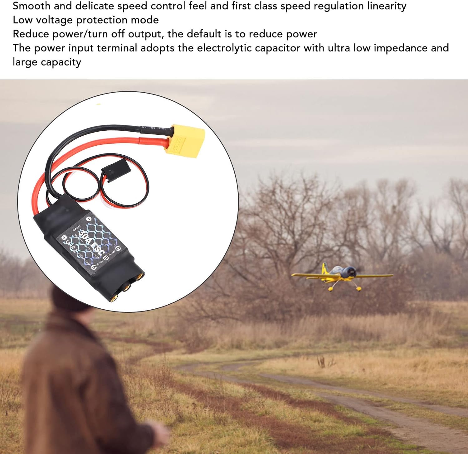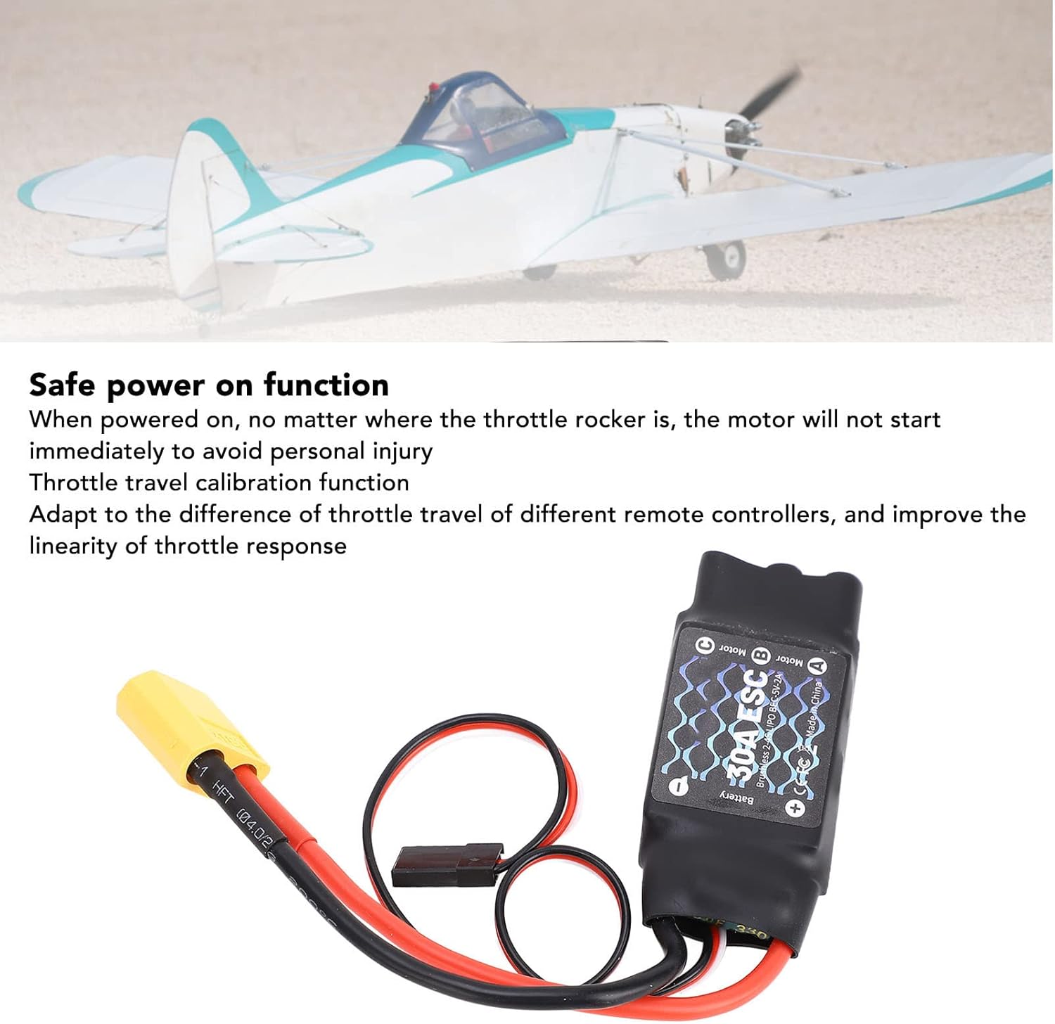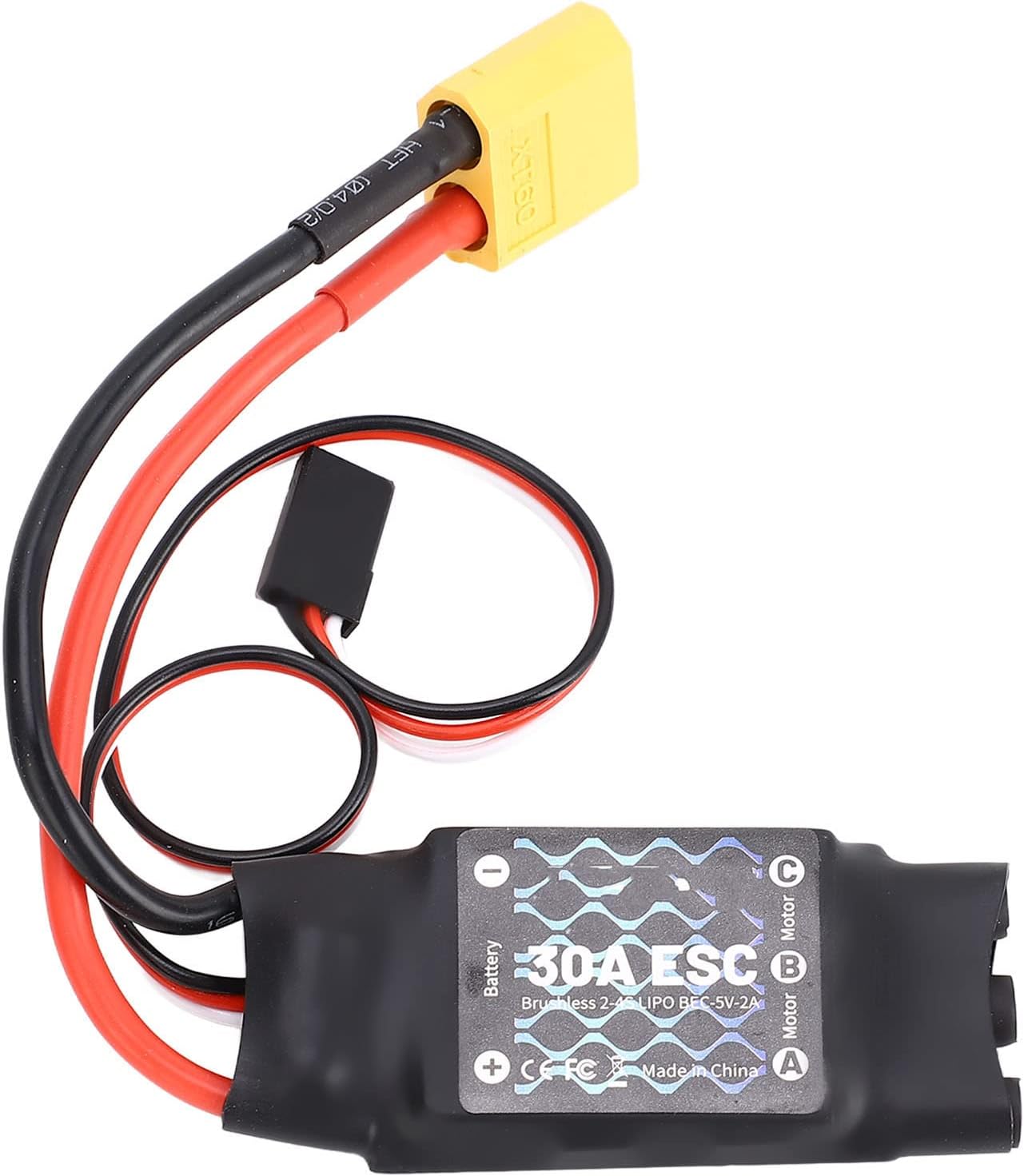 [ANTI INTERFERENZA POTENZIATA] Progettato con un condensatore elettrolitico a bassissima impedenza e grande capacità, questo controller di velocità brushless ESC da 30 A migliora significativamente le capacità anti-interferenza, garantendo voli stabili e prestazioni ottimali per i tuoi aerei RC, quadricotteri ed elicotteri. [FUNZIONE DI ACCENSIONE ] Dando priorità alla sicurezza, il controller dispone di una funzione di accensione che garantisce che il motore non si avvii immediatamente all'accensione, indipendentemente dalla posizione del bilanciere 'acceleratore. Questa misura di sicurezza riduce al minimo il rischio di lesioni personali accidentali, offrendo tranquillità durante le operazioni. [CALIBRAZIONE CORSA ACCELERATORE] Questo controller di velocità si adatta perfettamente alle diverse corse 'acceleratore di vari telecomandi, migliorando la linearità della risposta 'acceleratore. Questa funzione garantisce un controllo preciso e un'accelerazione , offrendoti ogni volta un'esperienza di volo superiore. [CARATTERISTICHE INTELLIGENTI ECCEZIONALI] Con una sensazione di controllo della velocità raffinata e e una linearità di regolazione della velocità di alto livello, questo ESC senza spazzole da 30 A offre un funzionamento delicato e preciso. Si rivolge agli appassionati che cercano la massima manovrabilità e stabilità per diverse applicazioni RC. [PROTEZIONE A BASSA TENSIONE] La modalità di protezione a bassa tensione integrata regola in modo intelligente la potenza in uscita per evitare cali di prestazioni, proteggendo sia il controller di velocità che l'aereo. Riduce cautamente la potenza e disattiva l'uscita per impostazione predefinita, garantendo un'esperienza di volo e prolungata.