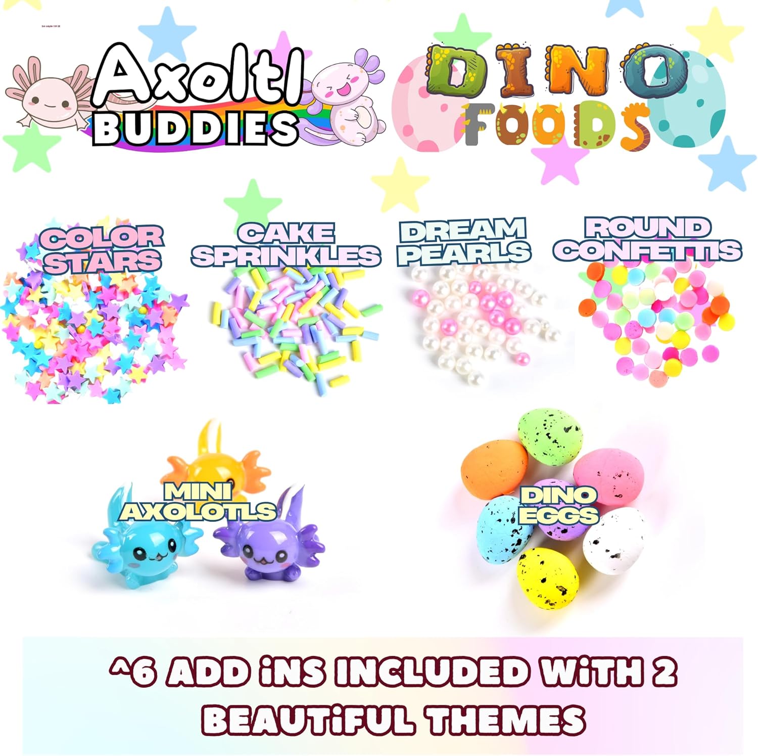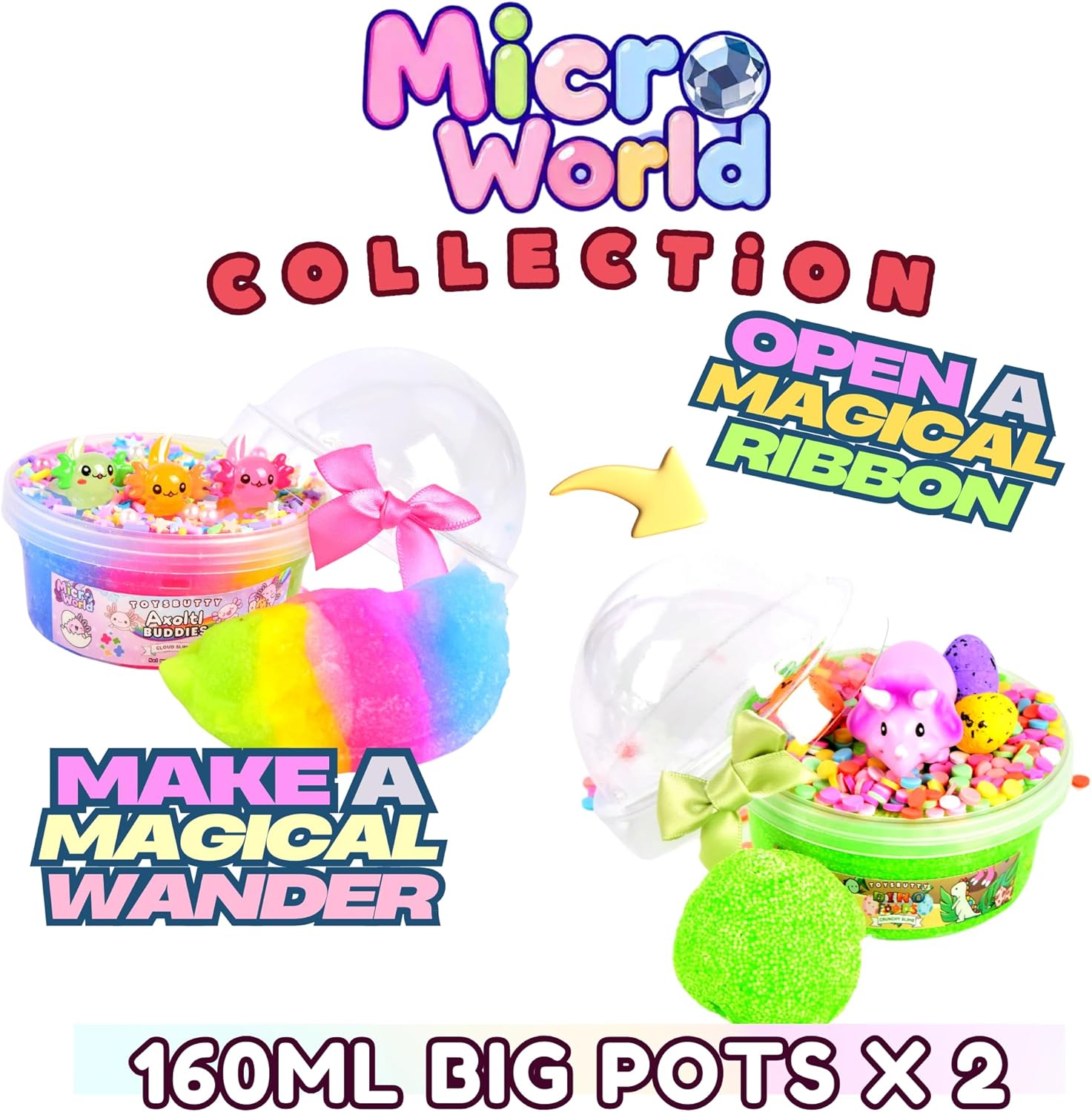 Incantevoli fantasy profumati di ToysButty – Goditi ore di divertimento sensoriale con il set ToysButty Fantastic Cuties Slime, perfetto come pensierino per feste o sacchetti a sorpresa. Ogni set contiene due affascinanti lattine da 160 ml con deliziosamente profumati Slimes negli aromi di mela verde e mirtillo. Questo Premium Cloud Slime è il complemento ideale per qualsiasi collezione Slime. Con la sua texture unica soddisfacente, entusiasma sia bambini che adulti e invita a un simpatico mondo di gioco fantasioso. Divertimento creativo senza limiti con gli accessori Slime: i nostri Slimes finiti offrono più di un semplice divertimento colorato – accendono la fantasia infantile e promuovono l'apprendimento giocoso attraverso attività a tema Slime! Il set completo contiene incantevoli accessori: un dinosauro giocoso, tre misteriose uova di dinosauro, figure colorate Axolotl e sorprendenti elementi decorativi. I bambini possono trasformare il loro Slime in creature mitiche magiche a piacimento e immergersi in un mondo pieno di creatività. Questa esperienza di gioco unica risveglia lo spirito esploratore e crea momenti di gioco indimenticabili! Sollievo dallo stress ed esperienza di gioco fantasiosa - Guarda i colori vivaci che si fondono in una texture slanciata e morbida che calma la mente e stimola l'immaginazione. Che si tratti di impastare per alleviare lo stress o per creare creatività, questo set sottile per ragazze e ragazzi è una meravigliosa fonte di relax e divertenti ore di gioco. Il regalo perfetto per feste Slime per ogni occasione. - Il set ToysButty Slim è il compagno ideale per ogni festa! Che si tratti di feste per bambini, riunioni di gioco o pomeriggi tranquilli a casa, questo set promuove la creatività del bambino. Insieme, i bambini possono porre domande e sviluppare giocosamente la loro capacità di pensiero, perché la loro naturale curiosità è un tesoro prezioso da scoprire! Questo versatile set slim entusiasma i bambini di tutte le età, ragazze e ragazzi di 4-6 e 8-12 anni. Un must assoluto per ogni occasione divertente! Informazioni su Microworld Slime & Series – Questa serie creativa – Parte della nostra Slime & Collection è il nostro divertimento creativo, con voi Mini Party – favori in simpatici mondi sigillati che rappresentano diversi temi che vengono forniti con il tocco fantasioso per il piacere sensoriale con i mondi di colori, accessori Slime e Sensory Asmr Fun.