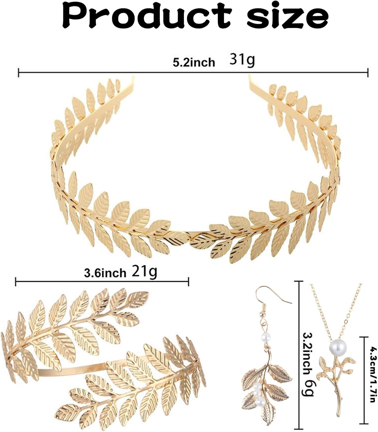 Trasformati in una magnifica dea greca con il nostro set completo di accessori, progettato per migliorare il tuo costume e farti brillare in ogni evento. Questo set include una corona d'oro, un paio di orecchini, un bracciale e una collana, tutti realizzati in lega di alta qualità con una finitura liscia e senza sbavature. La corona d'oro, con un diametro di 13,2 cm, si adatta comodamente alla tua testa, mentre il bracciale, che misura 9,1 cm di diametro, si adatta in modo sicuro al tuo braccio. Questi pezzi sono perfetti per costume dea greca, cleopatra accessori, cleopatra costume donna e molto altro. Si prega di controllare le dimensioni prima di acquistare per garantire una vestibilità perfetta. Che tu stia partecipando a una festa, un matrimonio o un servizio fotografico, questi accessori dea greca miglioreranno il tuo abbigliamento e ti faranno sentire come una vera dea. La corona d'oro e il bracciale sono progettati per adattarsi comodamente, garantendo una vestibilità perfetta per ogni occasione. Completa il tuo costume dea greca con questo set elegante, e lascia che la corona d'oro, gli orecchini, il bracciale e la collana ti facciano risaltare. Ideale per costume dea greca, cleopatra accessori, cleopatra costume donna, corona oro, accessori cleopatra, accessori cleopatra donna, accessori egiziana donna, corona alloro, dea greca costume donna e molto altro, questi accessori sono indispensabili per ogni look ispirato a una dea.