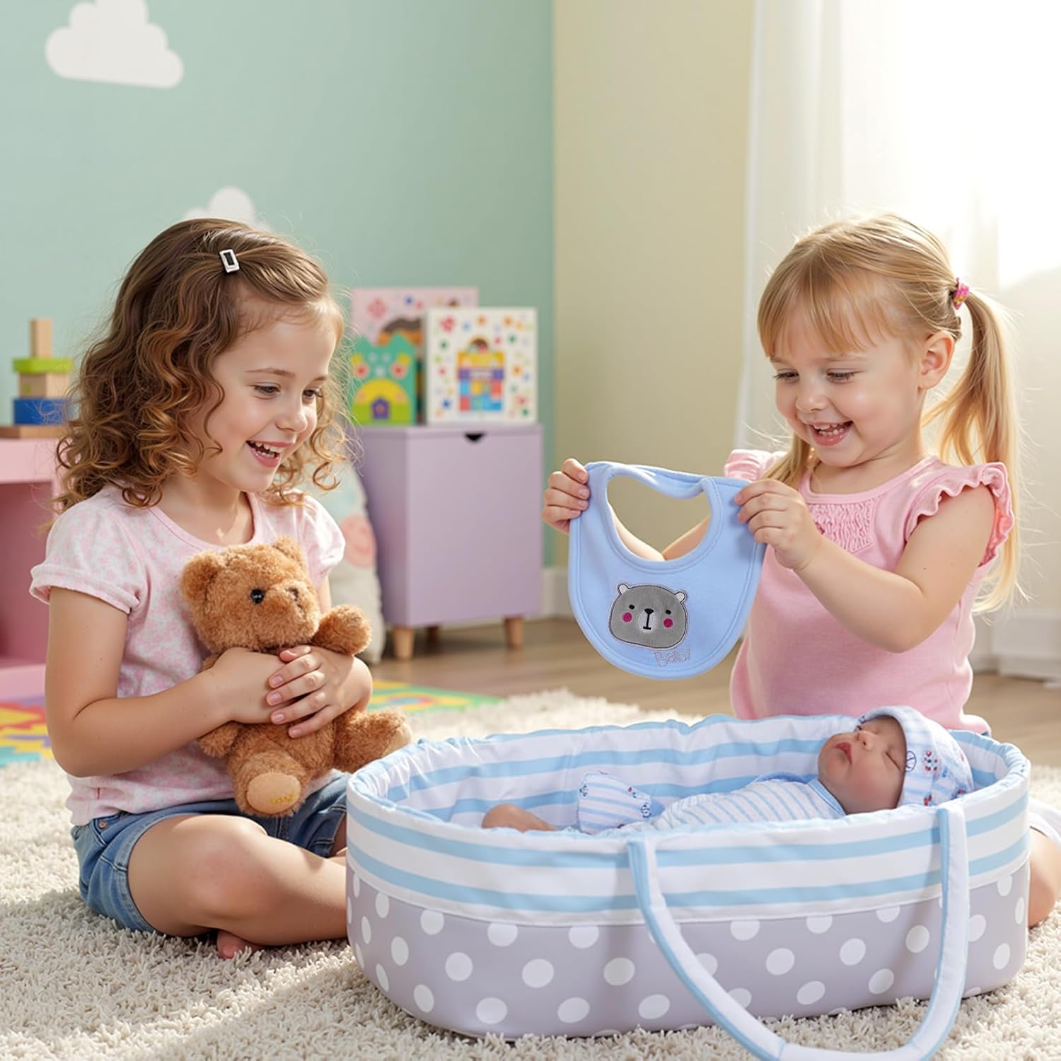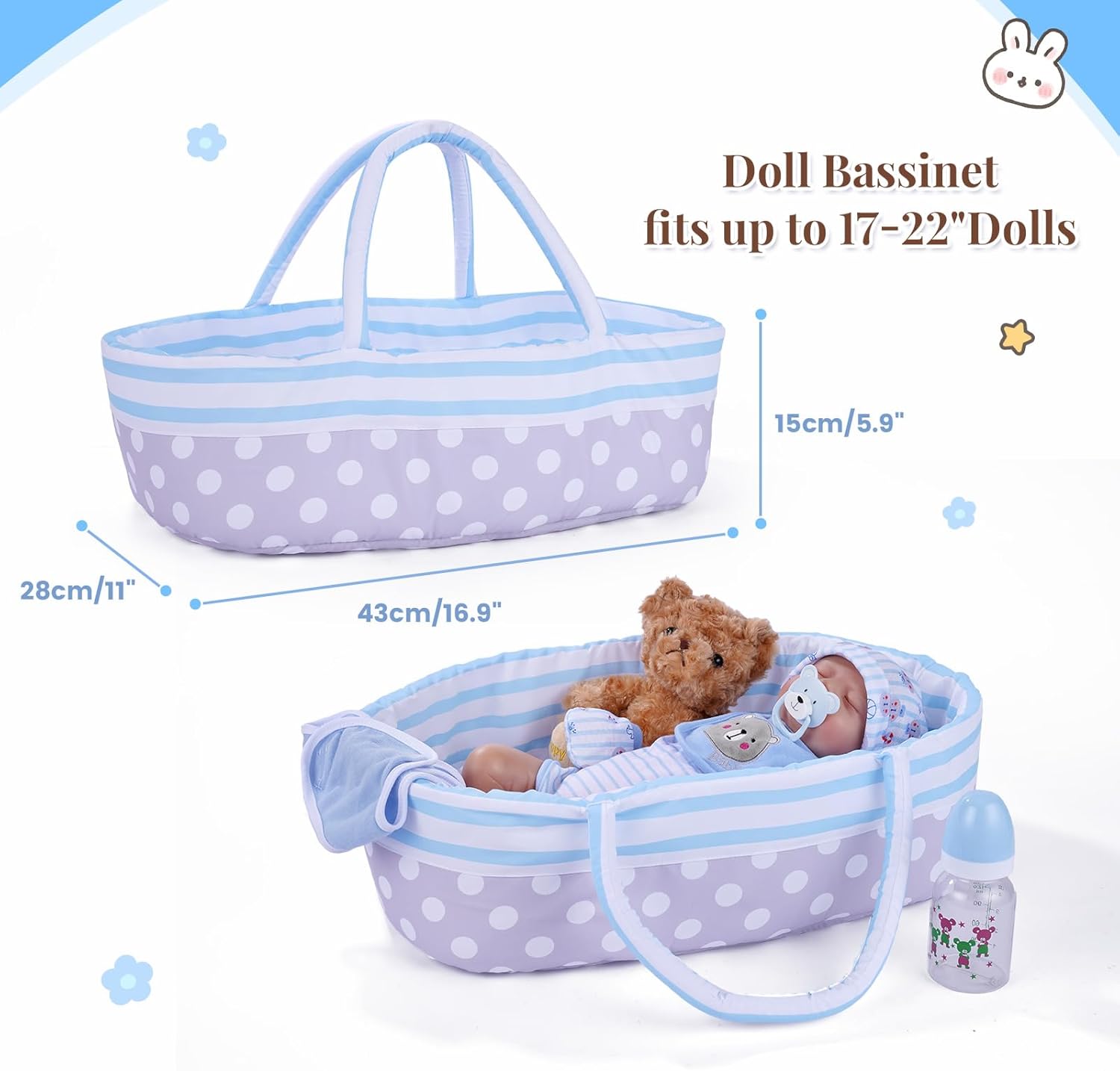 🐻【Abiti per bambole carini】🐻: tutina a righe blu e cappello con stampa a orso, guanti e bavaglino adatti a bambole da 17-22 pollici, rendendo la tua reborn realistica così carina che non vorrai più lasciarla andare. 🐻【Facile da trasportare】🐻: il marsupio per bambole a pois a righe blu è portatile e resistente, con morbida imbottitura e manici morbidi ma robusti. Offre abbastanza spazio per bambole, vestiti e altri accessori per l'alimentazione, consentendo ai bambini di giocare ovunque. 🐻【Gioco di imitazione】🐻: la culla per bambole consente ai bambini di imitare attività di cura della vita reale, come convincere un bambino ad addormentarsi, vestire la bambola o usare oggetti per nutrirsi, il che può coltivare la loro immaginazione, creatività e coordinazione occhio-mano. Questo set di bambole regalerà al tuo bambino ore di gioco di finzione e divertimento nel vestire le bambole. 🐻【Sviluppo emotivo】🐻: con questo set di accessori per bambole, i bambini possono prendersi cura delle loro bambole e aiutare i più piccoli a esprimere e comprendere le emozioni. Stimola l'empatia mentre imparano a prendersi cura della bambola e a confortarla. 🐻【Cosa ottieni】🐻: Il nostro set di vestiti per bambole reborn da 9 pezzi include cappello*1, tuta da gattonare*1, bavaglino*1, guanto*1, mutande*1, cestino*1, 1*peluche, accessori per l'alimentazione*2, 9 accessori in totale. Può migliorare l'esperienza di gioco dei bambini coinvolgendoli in attività genitoriali, giochi di ruolo e narrazione. (Bambola non inclusa)