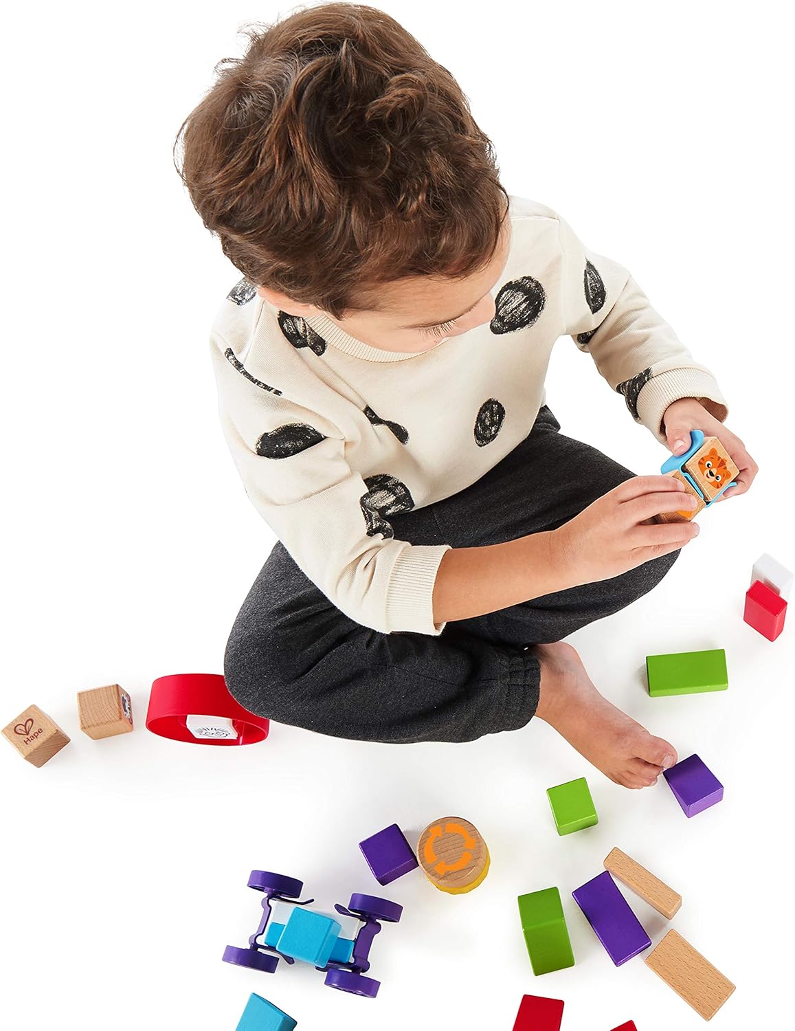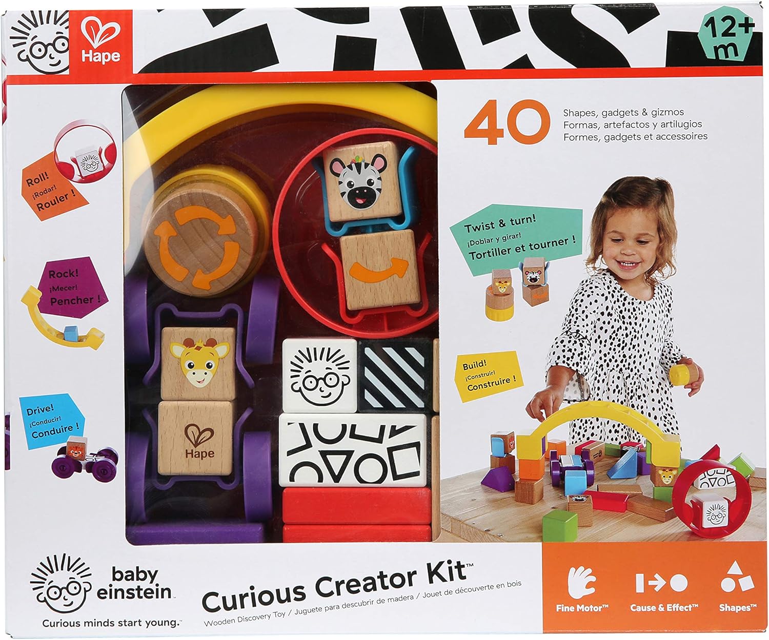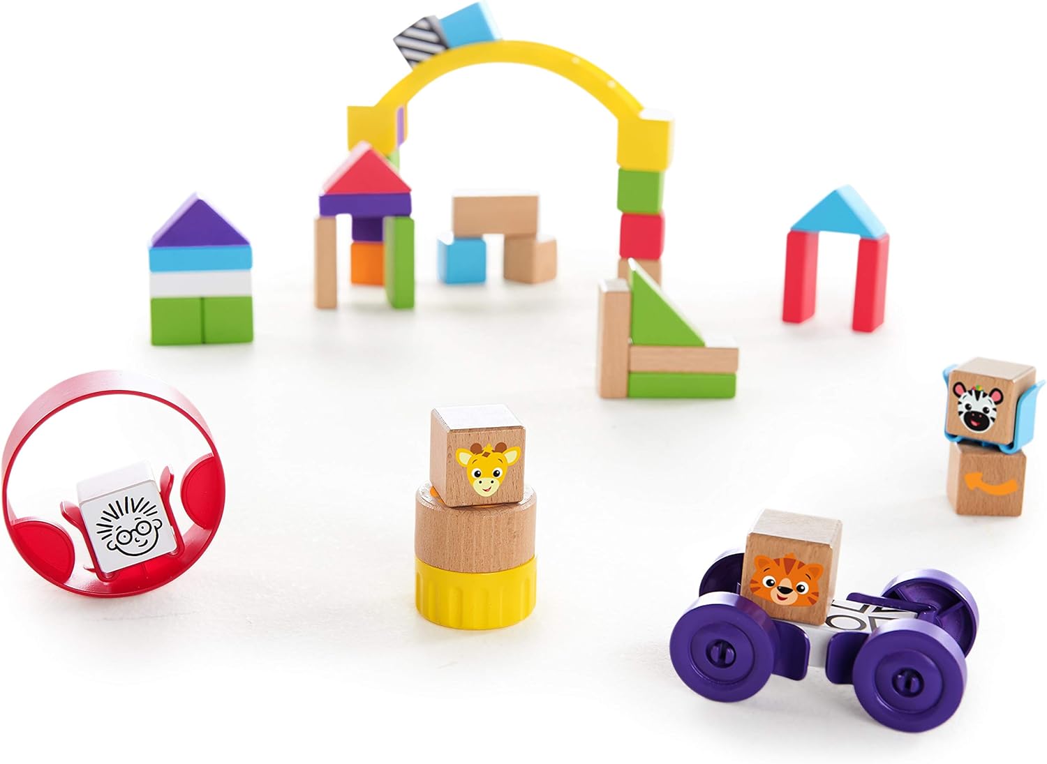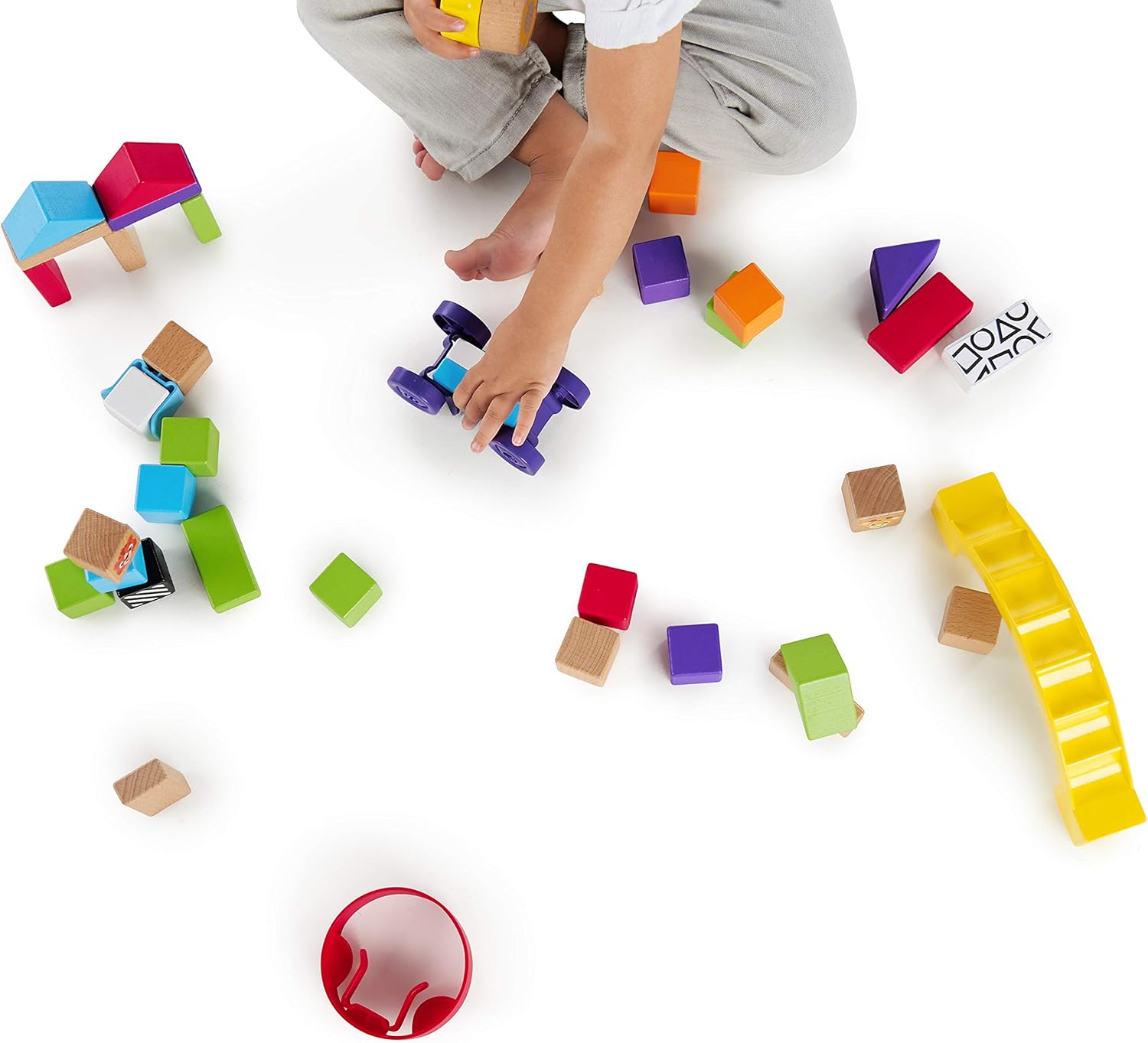Questo set di elementi costitutivi promuove la creatività e la coordinazione occhio-mano. Il set è composto da 40 pezzi. Un mix di blocchi di legno, anelli, ruote, ponti, altalene, che i bambini sperimentano, combinano, creano e lasciano correre la loro creatività. Da 12 mesi