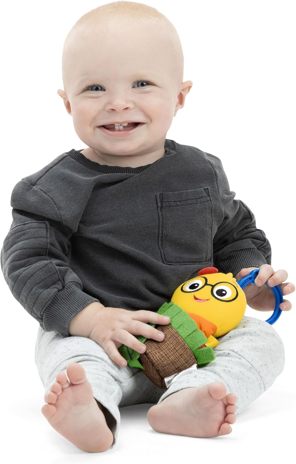 Il Cal-a-Puller Pull & Shake di Baby Einstein è un giocattolo da tirare e da portare in giro che insegna al bambino le abilità di causa-effetto e la scoperta sensoriale mentre tira per vedere Cal che si ritrae e si muove. Sviluppa la motricità a ogni trazione, scuotimento e presa; Il sonaglio nascosto coinvolge il bambino e insegna il principio di causa-effetto; le 6 braccia annodate stimolano le piccole dita nella scoperta tattile. Il C link si aggancia facilmente a trasportini e passeggini per scoprire e divertirsi in movimento; ottimo anche per giocare seduti Per bimbi da 0 mesi in su; Con Cal il Bruco dai programmi e i libri di Baby Einstein Dimensioni: 7,6 x 5.5 x 30 cm; Si pulisce con un panno