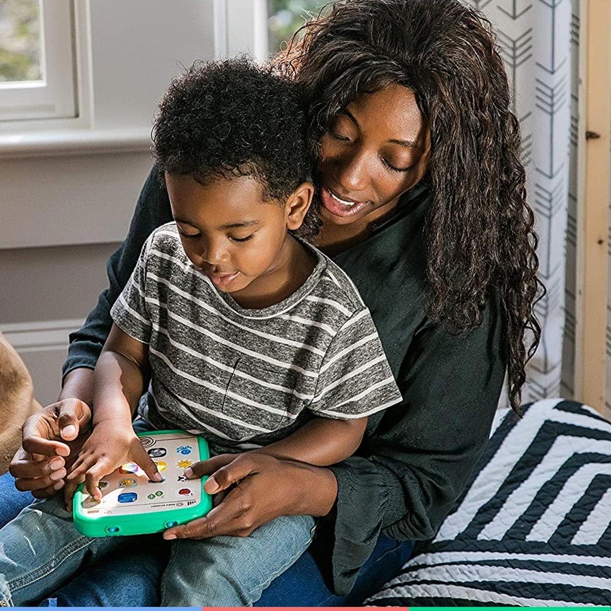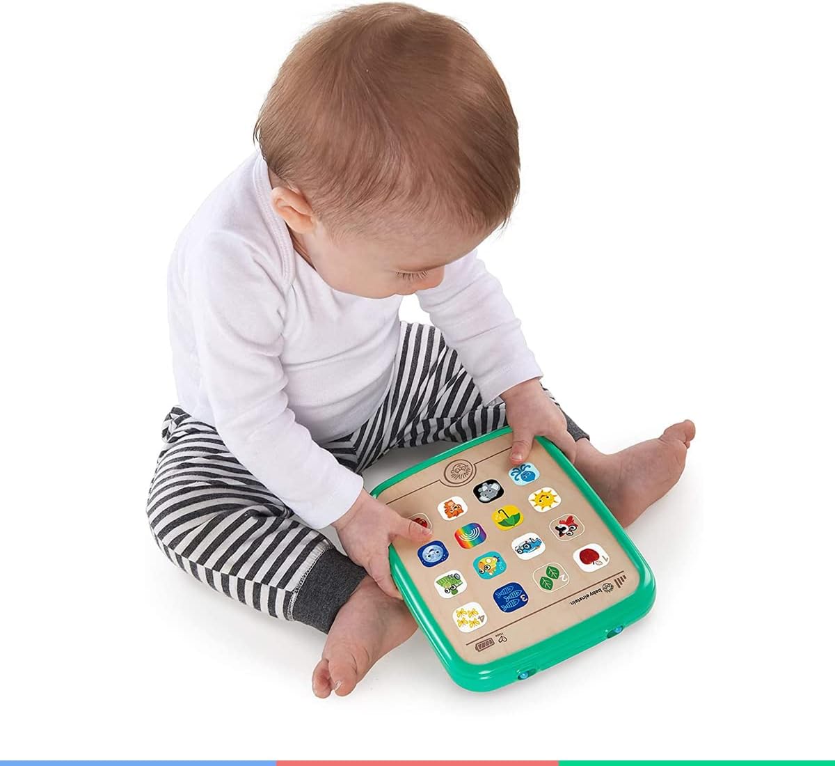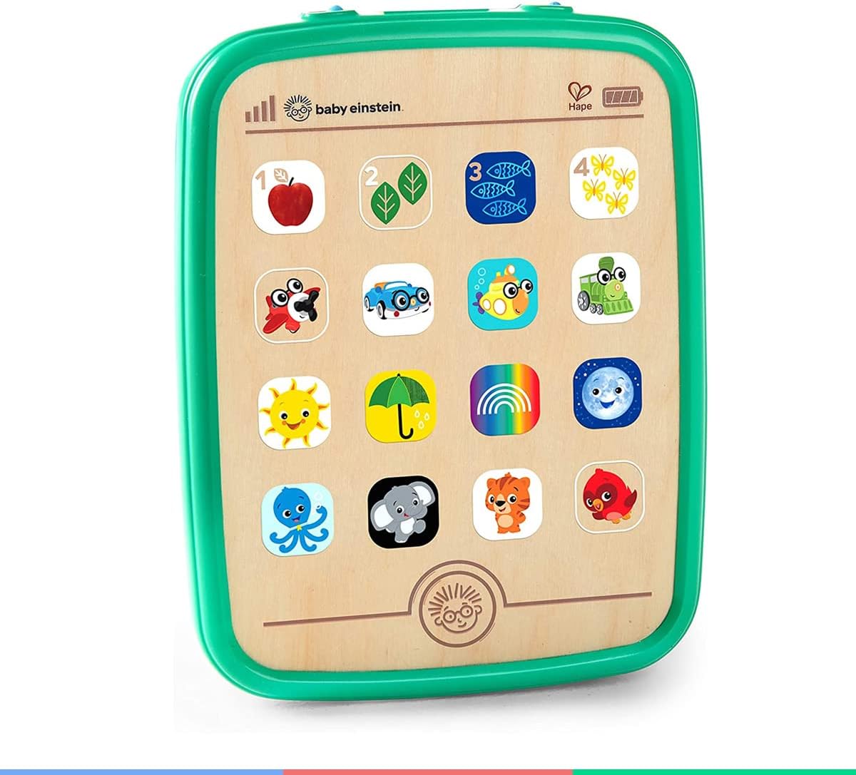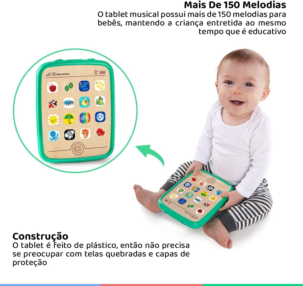 Tocca la tavoletta in legno per iniziare a esplorare ! Giocattolo per bambini facile da portare ovunque Riproduce oltre 150 melodie e introduce parole in tre diverse lingue : inglese, francese, spagnolo Giocattolo in legno senza schermi di vetro Ideale a partire da 6 mesi