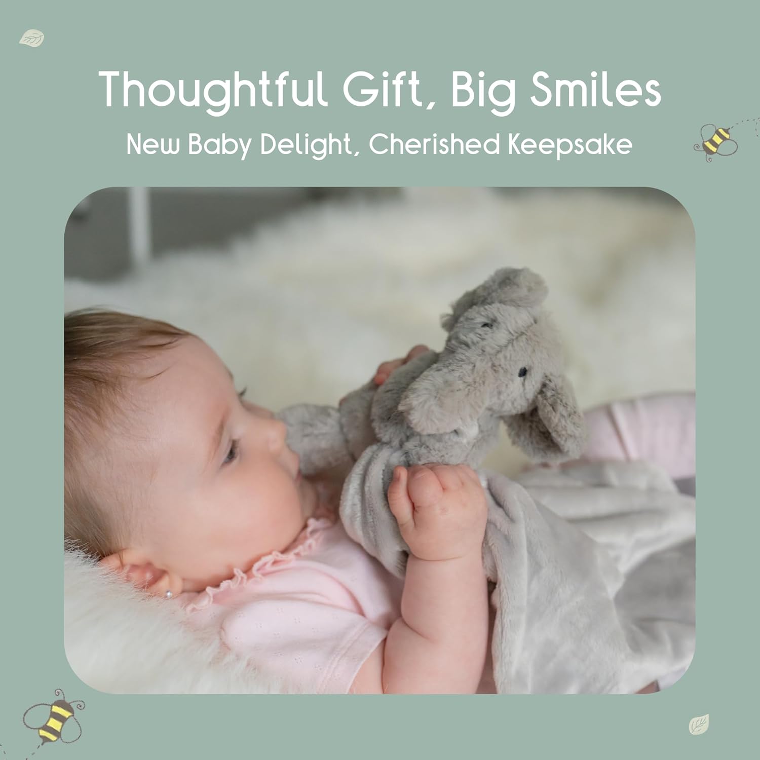 Un bel regalo per un baby shower o per dare il benvenuto a un neonato Il grazioso piumino per bambini misura 30 x 30 cm Peluche in velluto super morbido per coccolarsi Comoda e lenisce il tuo bambino a dormire La nostra perfetta coperta con elefante rende l'amico più coccolare per il tuo piccolo
