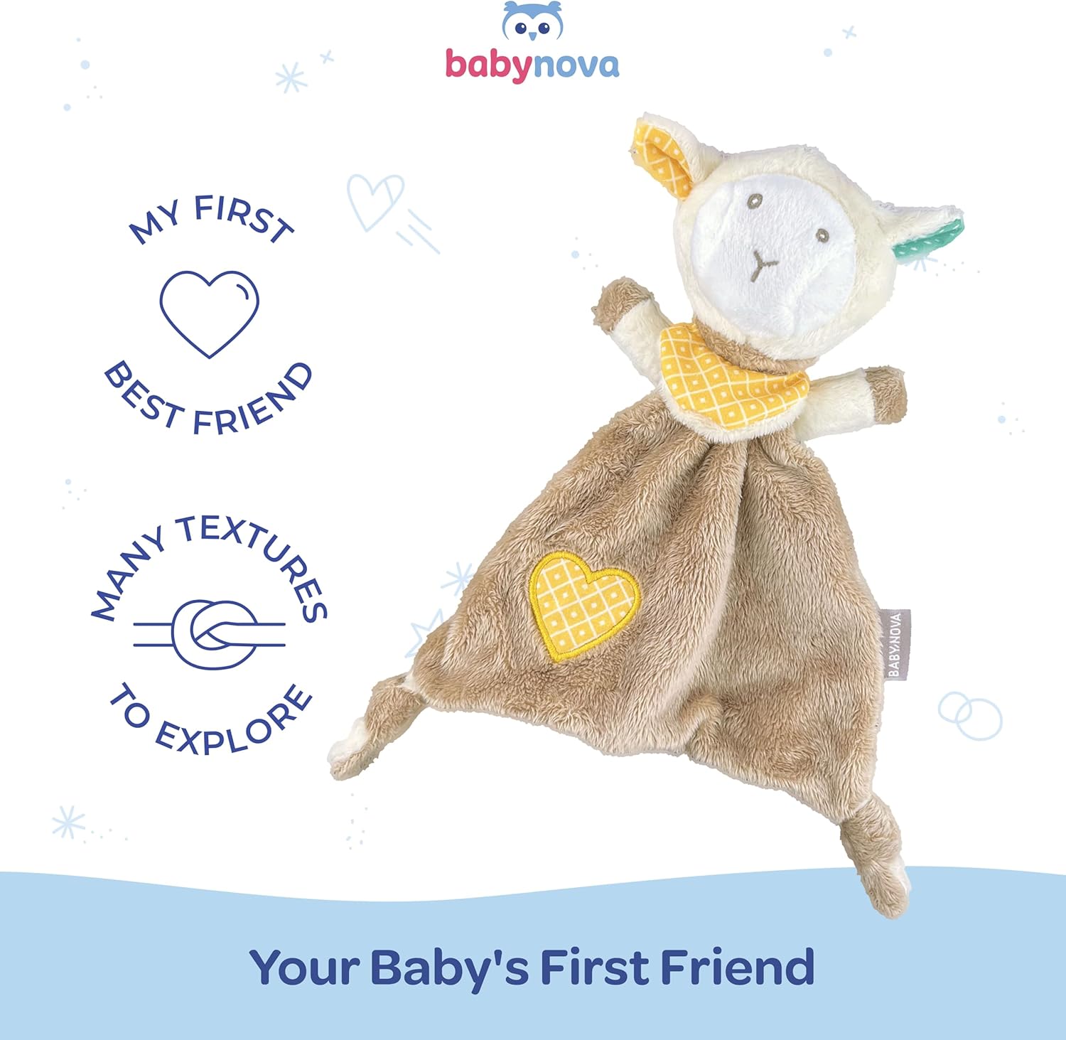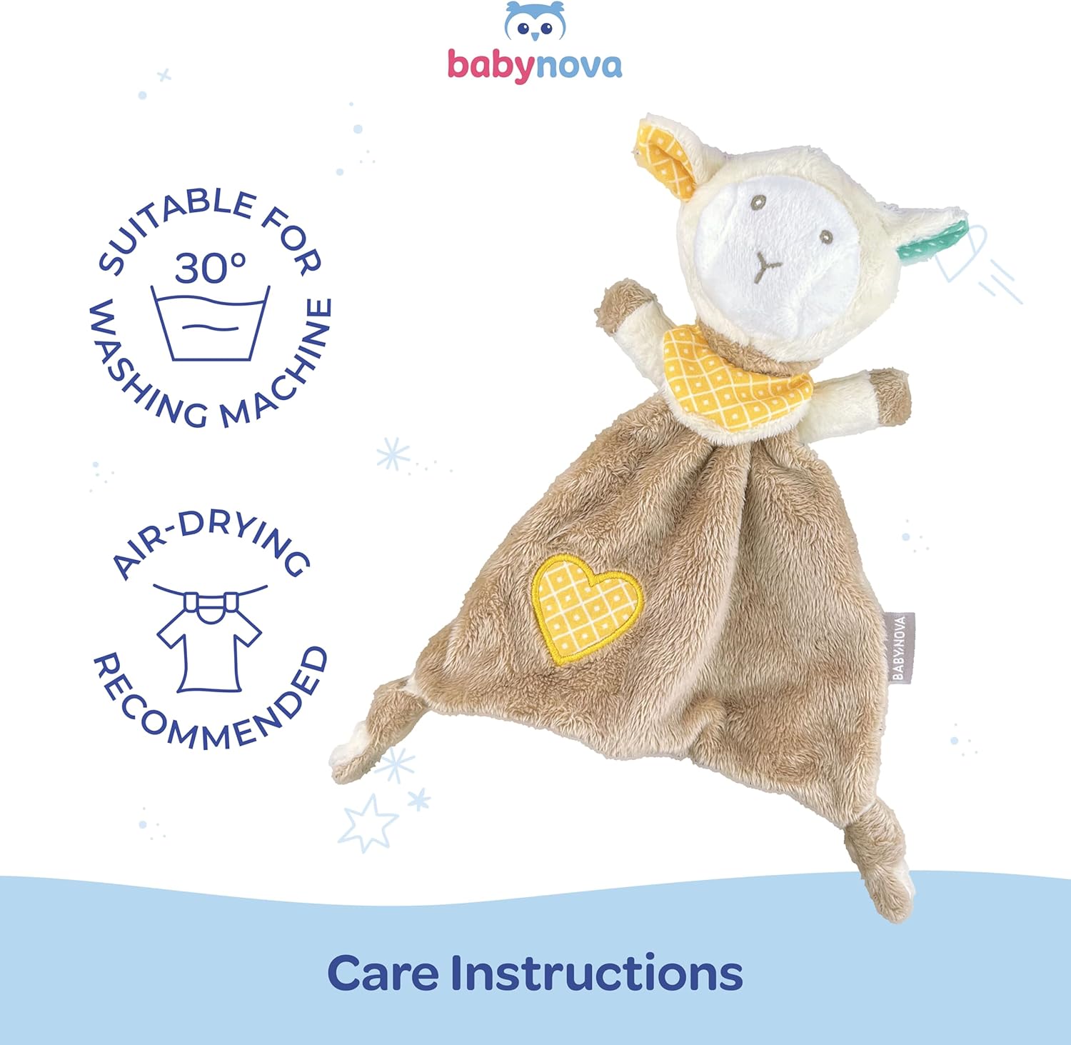 Il nostro panno peluche neonato coccoloso di Baby-Nova è un fidato amico durante gli spostamenti e un dolce aiuto per dormire. Il materiale è particolarmente morbido e dispone di due estremità annodate per essere toccato e riconosciuto. Imparare giocando - Il panno morbido per bebè può essere afferrato in molti modi grazie a forme e superfici diverse e favorisce i primi esercizi di contatto e di presa. Cerchi un regalo per la nascita di un bambino? Il morbido panno per coccole di Baby-Nova è il primo giocattolo perfetto per le prime scoperte dei bimbi. Istruzioni per la pulizia - Il panno è realizzato in morbido velour ed è lavabile a 30°C in lavatrice. Dopo il lavaggio, lasciare asciugare all'aria. Contenuto della confezione - 1x panno morbido Pecora dimensioni 24 x 21 cm. Adatto da 0 a 36 mesi. Conforme alla norma EN 71. Dalla collezione Baby Nova: morbidi panni & copertine coccolose.