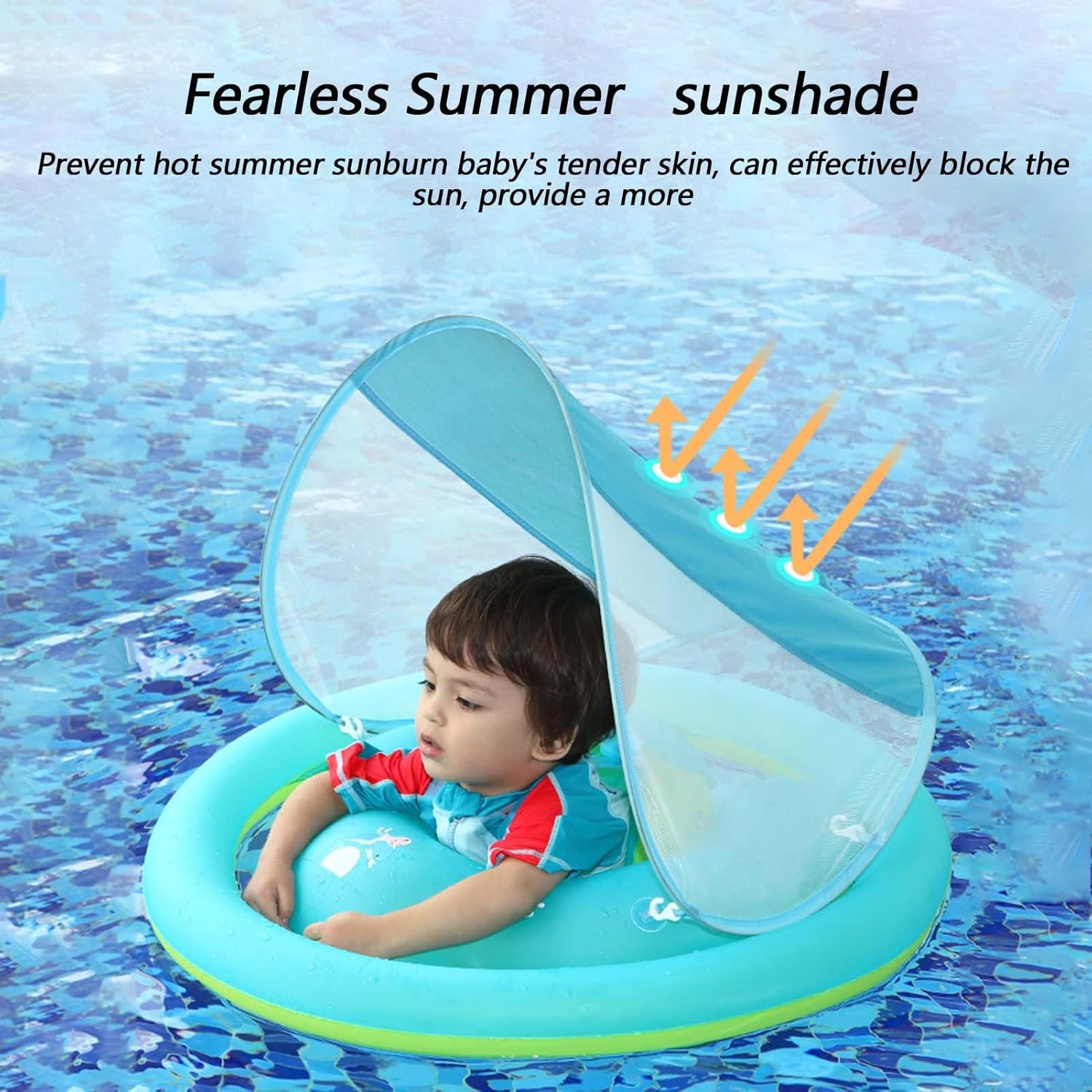 Adjustable Canopy Sun Protection: Designed with a removable sunshade canopy, this baby pool float your little from harmful UV rays while keeping them cool and shaded during water play in pools or at the beach Safe and Secure Seating: Features a built-in adjustable safety seat with leg openings and back support to keep water toys for stable while floating, giving parents peace of mind during summer adventures Inflatable and Easy to Carry: This float inflates and deflates quickly for easy packing and storage, making it a portable choice water toys for for vacation, beach outings, pool days, or even bath time fun at home Durable and Child-Friendly Design: Made from thick, PVC material with smooth edges for gentle on water toys for baby skin, ensuring long-lasting, safe use for during outdoor or indoor water play Interactive Water Toy Fun: Colorful and playful design encourages water confidence and interactive play for babies and water toys for , helping build comfort in water while having fun all summer long