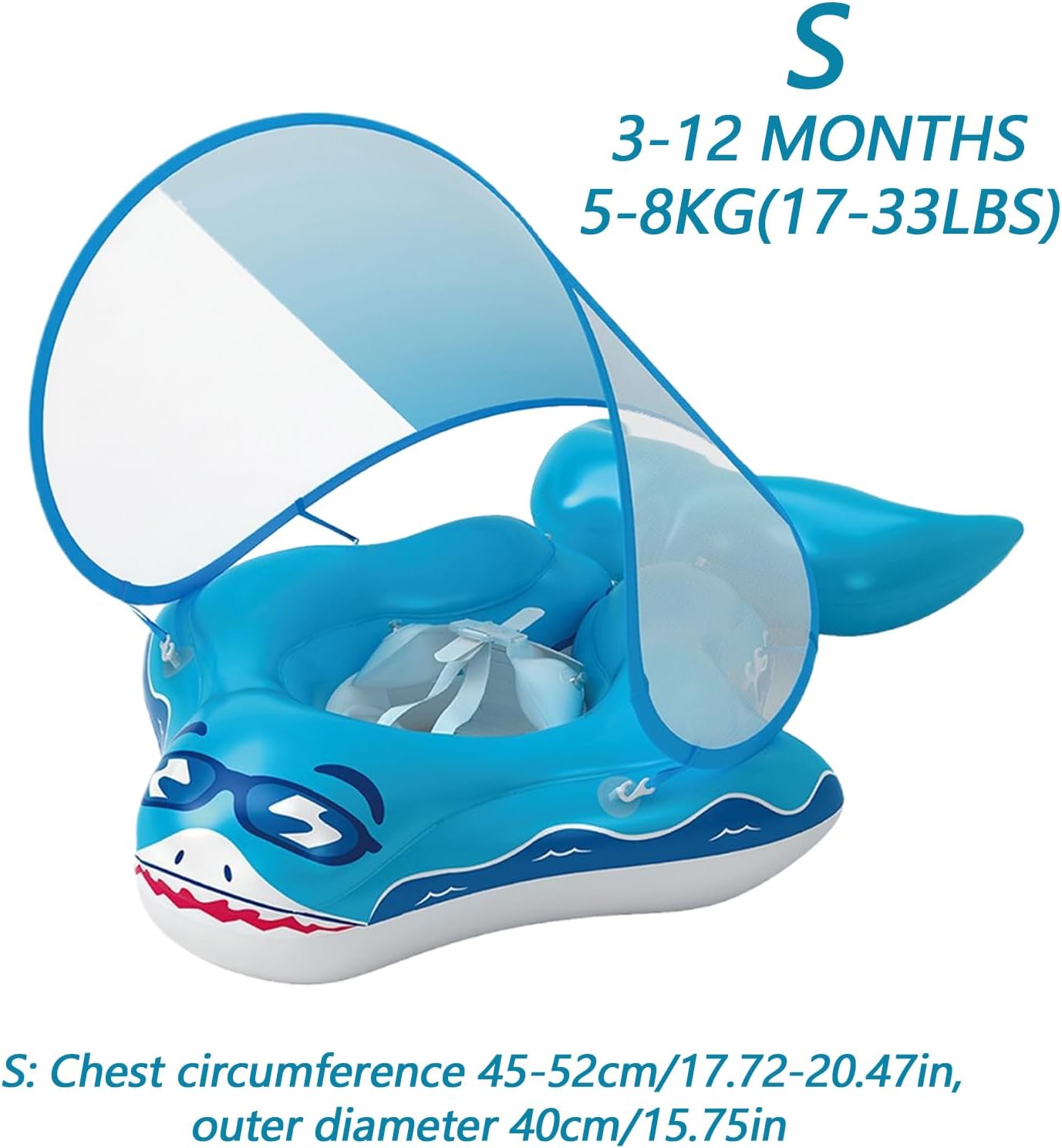 Funzione di protezione solare e portabilità: il baldacchino facile da frequentare e il tessuto pieghevole resistente ai raggi UV offrono una forte protezione contro la piscina o in piscina. Il design compatto si inserisce nel sacchetto e la rete laterale impedisce la mutilazione Sistema di galleggiamento di sicurezza: una camera d'aria di prevenzione autunnale progettata per i principianti supporta l'allevamento subacqueo. Rafforzare l'equilibrio durante il nuoto e offre una stabilità galleggiante affidabile Design galleggiante di sicurezza: protegge la colonna vertebrale con un cuscino integrato che garantisce una galleggiabilità affidabile con un supporto stabile a più punti. Le cinghie regolabili per il corpo ti aiutano a praticare una corretta postura di nuoto, mentre le ampie ali laterali offrono una maggiore sicurezza Materiale delicato sulla pelle: il galleggiante per piscina per neonati realizzato in materiale PVC spesso 0,3 mm ha una sensazione morbida, sicura per la pelle delicata. È molto resistente e garantisce un comodo utilizzo subacqueo Colori brillanti: la combinazione di colori vivaci offre un'elevata visibilità. Il design Friendly Shark decora il divertente sottomarino e favorisce la comunicazione attraverso un gioco interattivo in piscina a cui le famiglie partecipano insieme
