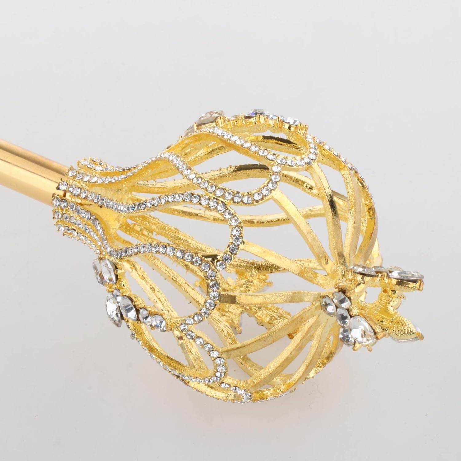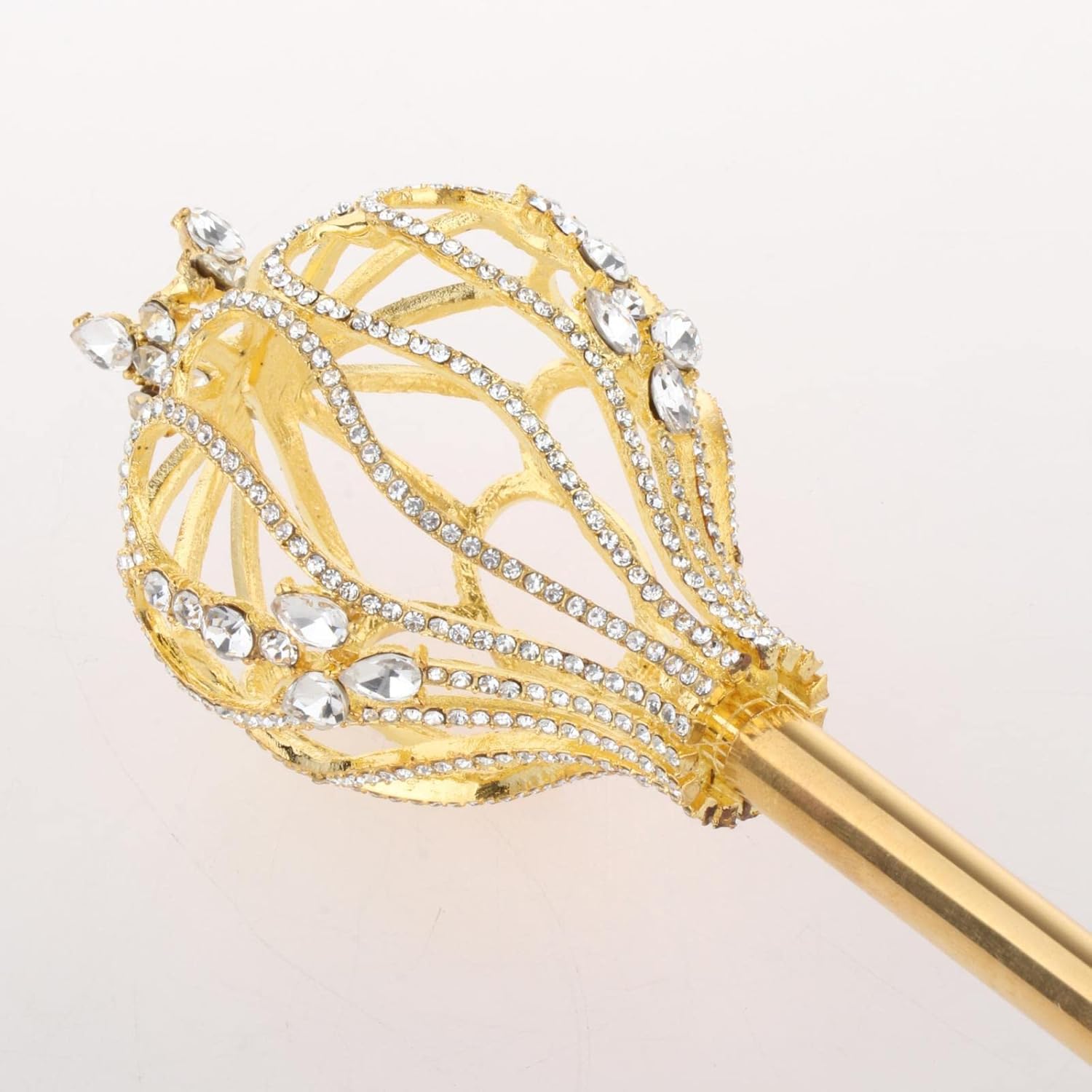 Materiale di alta qualità e lavorazione delicata. Corona strass reale scettro costume prop Perfetto per matrimoni, matrimoni, compleanni, feste per ragazze, balli in maschera, costumi da regina, re, principessa o principe, ecc. Un pezzo di scettro di lusso, completamente ricoperto di strass lucenti. Un ottimo regalo per bambini, amanti, spose o altri membri della famiglia.