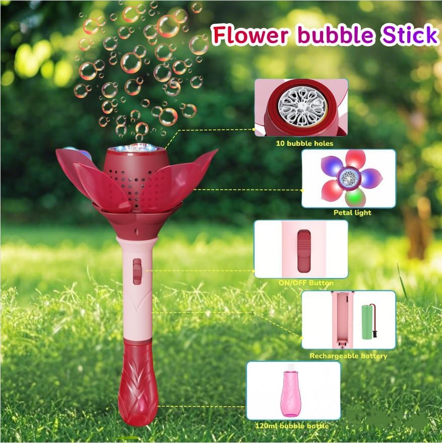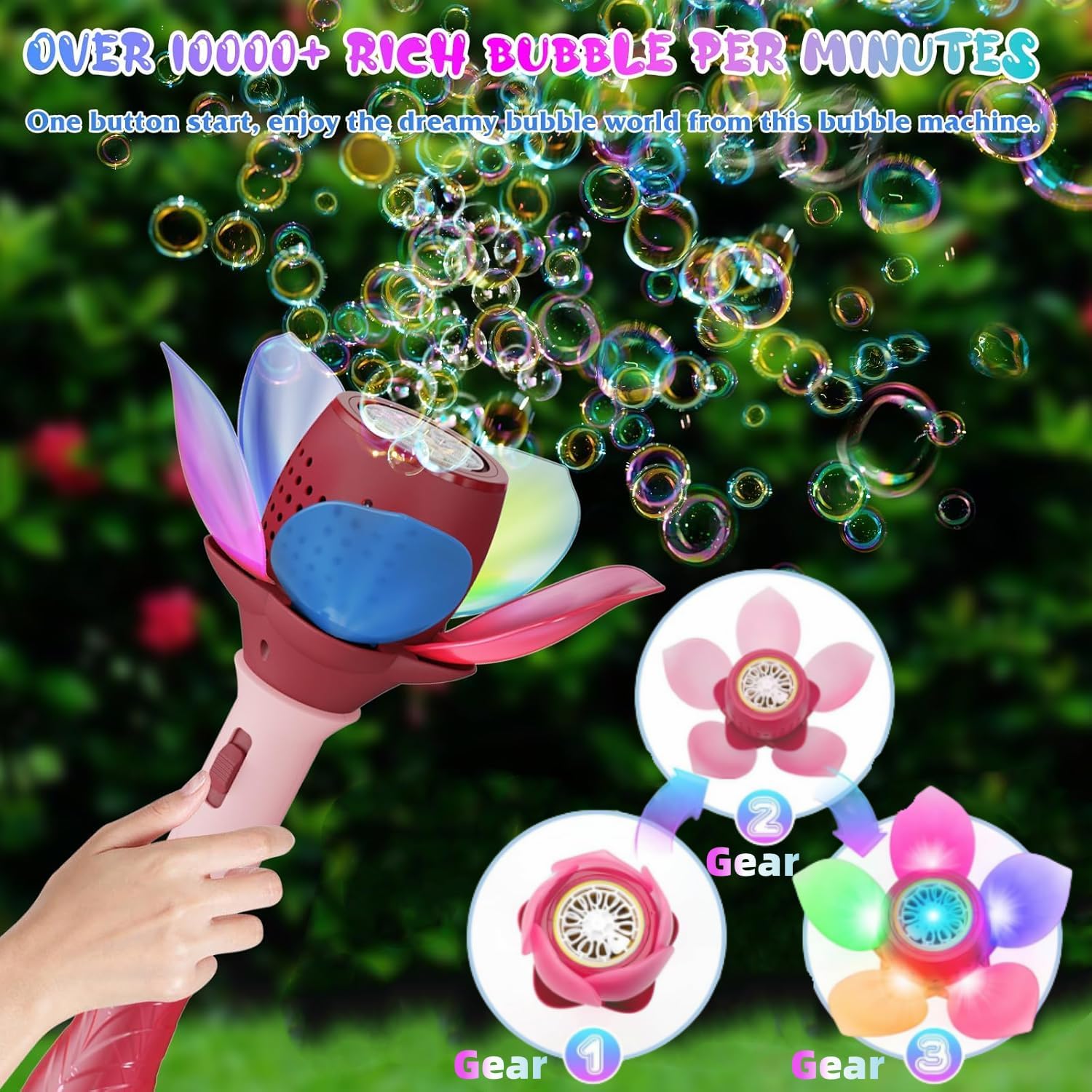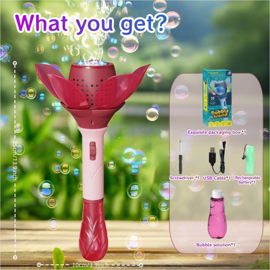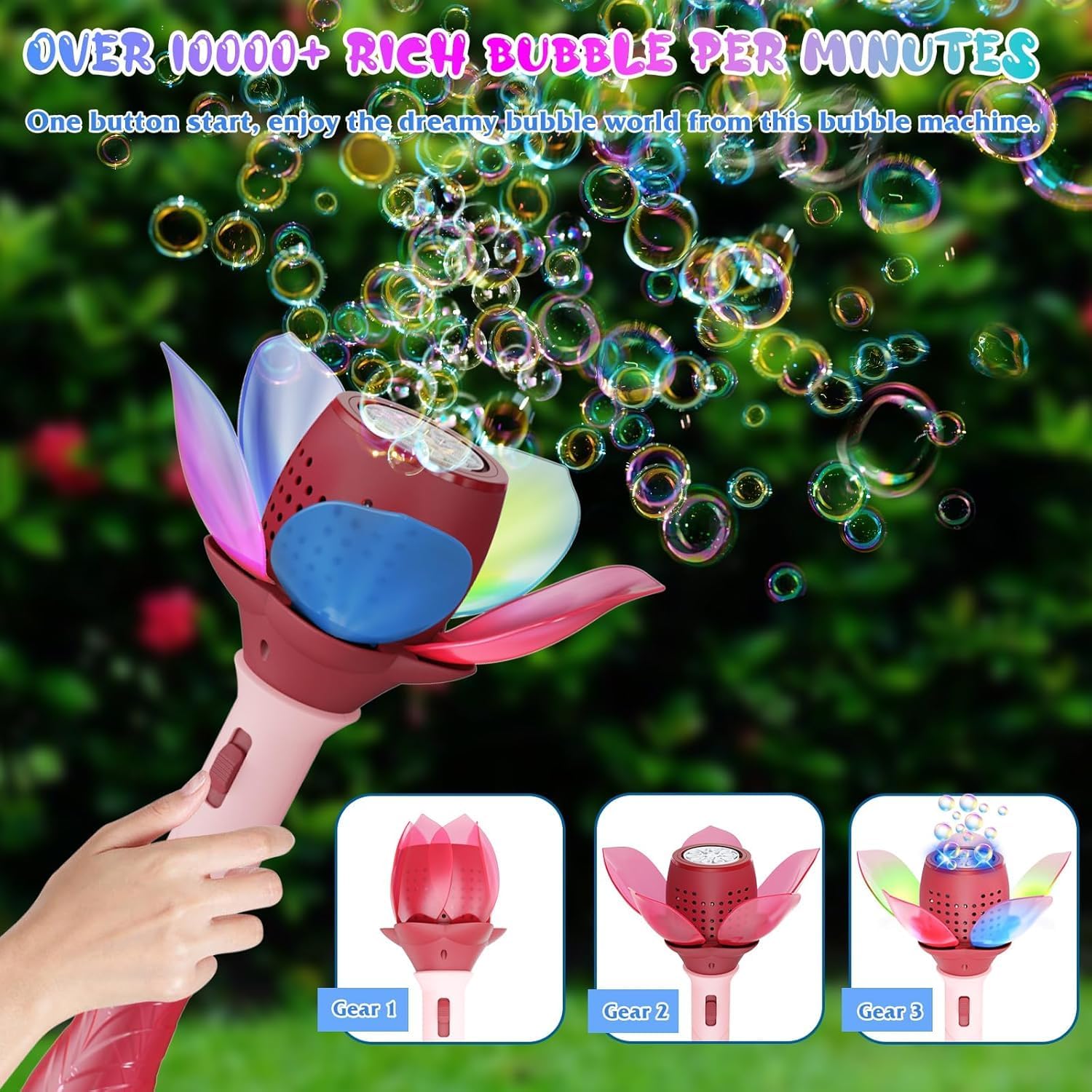 🌸 Potente macchina per bolle: la nostra bacchetta per bolle di fiori ha 10 uscite per bolle e un potente motore che consente un potente rilascio di bolle. Premendo semplicemente un pulsante è possibile generare oltre 10.000 bolle al minuto. Rispetto alla normale macchina per bolle, ha più bolle, bolle più veloci e più bolle. 🌸Bacchetta a bolle dall'aspetto floreale: i petali retrattili e in fiore consentono ai bambini di divertirsi di più. Con le innumerevoli bolle che esplodono dal nucleo del fiore, i bambini vengono immediatamente trasportati in un bizzarro mondo da favola. 🌸 Luci colorate: Le luci lampeggianti illuminano i petali colorati e le bolle da sogno, creando un'atmosfera magica anche di notte. La luce morbida e incantevole migliora l'esperienza delle bolle e porta gioia infinita ai bambini. 🌸Cofanetto regalo: la confezione include la bacchetta per bolle, la soluzione per bolle e le batterie ricaricabili, quindi è pronta per l'uso all'arrivo. Poiché non sono necessari altri accessori, è un regalo perfetto per i bambini. Nessun bambino può resistere alla gioia che le bollicine portano e che lo fanno divertire per ore all'aria aperta. 🌸 Ideale per: i bambini possono portare il giocattolo con le bolle in giardino, nel parco giochi o in qualsiasi altro ambiente. Perfetto per feste di compleanno, riunioni di vacanza, giochi in giardino/patio/spiaggia/piscina e attività in campeggio, creando un'atmosfera allegra.