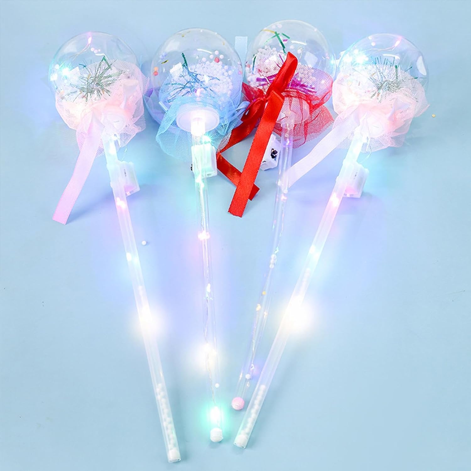 Stili diversi: i bambini possono scegliere tra molte forme in base alle loro preferenze, come ad esempio: B. Farfalle, bambole, quelle ricoperte di zucchero, cuori, stelle a cinque punte, ecc. Queste bacchette possono illuminarsi e creare un'atmosfera festosa per gli alberi di Natale. Facile da aprire: questa bacchetta magica è dotata di un pulsante che i bambini possono premere per attivare o disattivare l'effetto luce brillante e lampeggiante. È un giocattolo divertente e facile per i bambini di tutte le età. MULTIUSO: Questa bacchetta magica luminosa non è solo un giocattolo, ma può anche essere utilizzata come oggetto decorativo per festival, feste, spettacoli e altre occasioni. Dispone di diverse modalità di illuminazione in modo che i bambini possano mostrare la loro personalità e creatività in diversi ambienti. Liscia e innocua: questa bacchetta magica luminosa ha una superficie morbida e liscia, sicura e inodore. È realizzato con materiali non irritanti che non graffiano né danneggiano la pelle. Puoi divertirti con la fata in modo gentile e confortevole. Bacchetta luminosa luminosa: questa bacchetta magica luminosa rende il tempo di gioco del tuo bambino più piacevole e attraente. Può emettere luce brillante al buio, creando un grande effetto. Ha luci LED colorate e luminose che lo fanno sembrare fiabesco e affascinante.