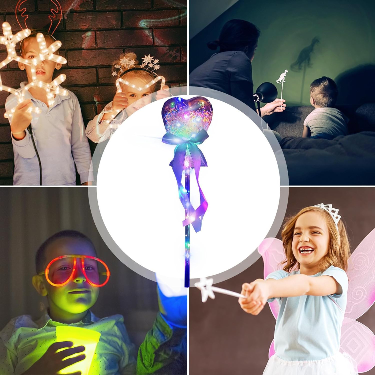 Emette luce colorata al buio: con questa bacchetta luminosa fatata, il tuo bambino può godersi uno spettacolare spettacolo di luci al buio. La bacchetta ha luci LED colorate che lampeggiano e brillano, dando alla bacchetta un aspetto fatato e affascinante. Vari stili: i bambini possono scegliere in base alle loro preferenze tra molte forme tra cui scegliere, come farfalle, bambole, falchi ricoperti di zucchero, cuori, stelle a cinque punte, ecc. Queste bacchette possono illuminare e creare un'atmosfera festosa per gli alberi di Natale. Comodo da usare: con una rapida pressione del pulsante su questa bacchetta da fata, i bambini possono attivare o disattivare l'effetto di luce che irradia e scintilla. È un giocattolo semplice e divertente da usare per bambini di tutte le età. Multiuso: non solo un giocattolo, questa bacchetta luminosa può essere utilizzata anche come accessorio decorativo per festival, feste, spettacoli e altre occasioni. Ha diverse modalità di illuminazione, consentendo ai bambini di mostrare la loro personalità e creatività in diversi ambienti. Superfici lisce e innocue: questa bacchetta luminosa è realizzata con materiali sicuri e inodore che non irritano la pelle. Puoi goderti il divertimento delle fate senza preoccuparti di graffi o allergie.
