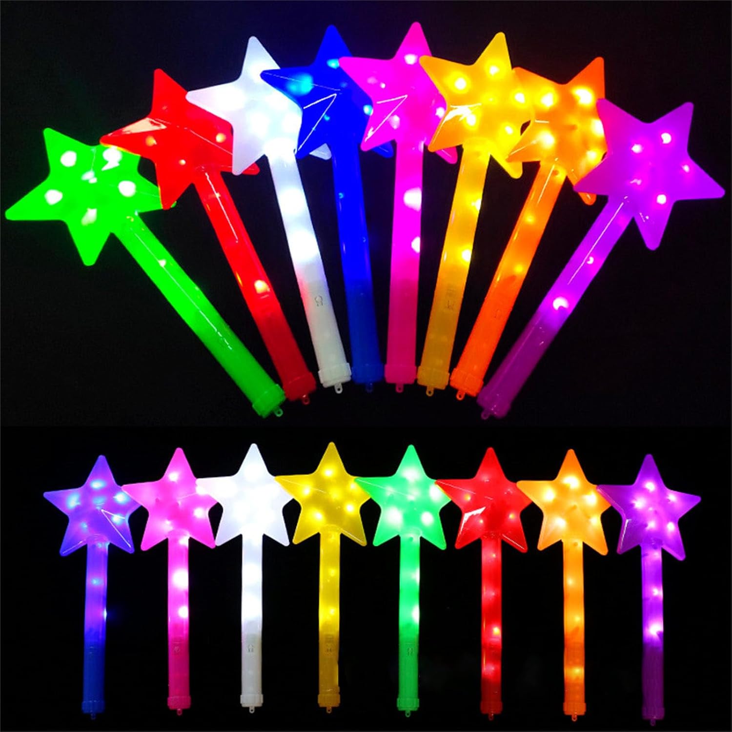 Questi bastoncini luminosi sono adatti a bambini, adolescenti e adulti e sono perfetti per feste, celebrazioni e spettacoli teatrali. Lascia risplendere la tua creatività e crea un'esperienza visiva unica. Utilizza materiale plastico di alta qualità. Portatili e facili da usare, offrono ore di divertimento luminoso continuo. Illumina la tua festa con questi affascinanti bastoncini luminosi a stella a cinque punte! Il loro effetto luminoso e vibrante attirerà sicuramente l'attenzione di tutti. Illumina la notte e lascia correre la tua immaginazione con queste incantevoli luci a stella a cinque punte. Non importa se stai organizzando un incontro a tema o vuoi semplicemente aggiungere divertimento, questi bastoncini luminosi renderanno la tua occasione indimenticabile. Porta gioia ed eccitazione a feste di compleanno, discoteche, festival musicali, Halloween, matrimoni e altro ancora. Questa bacchetta magica aggiunge un tocco festivo e crea uno spettacolo visivo affascinante
